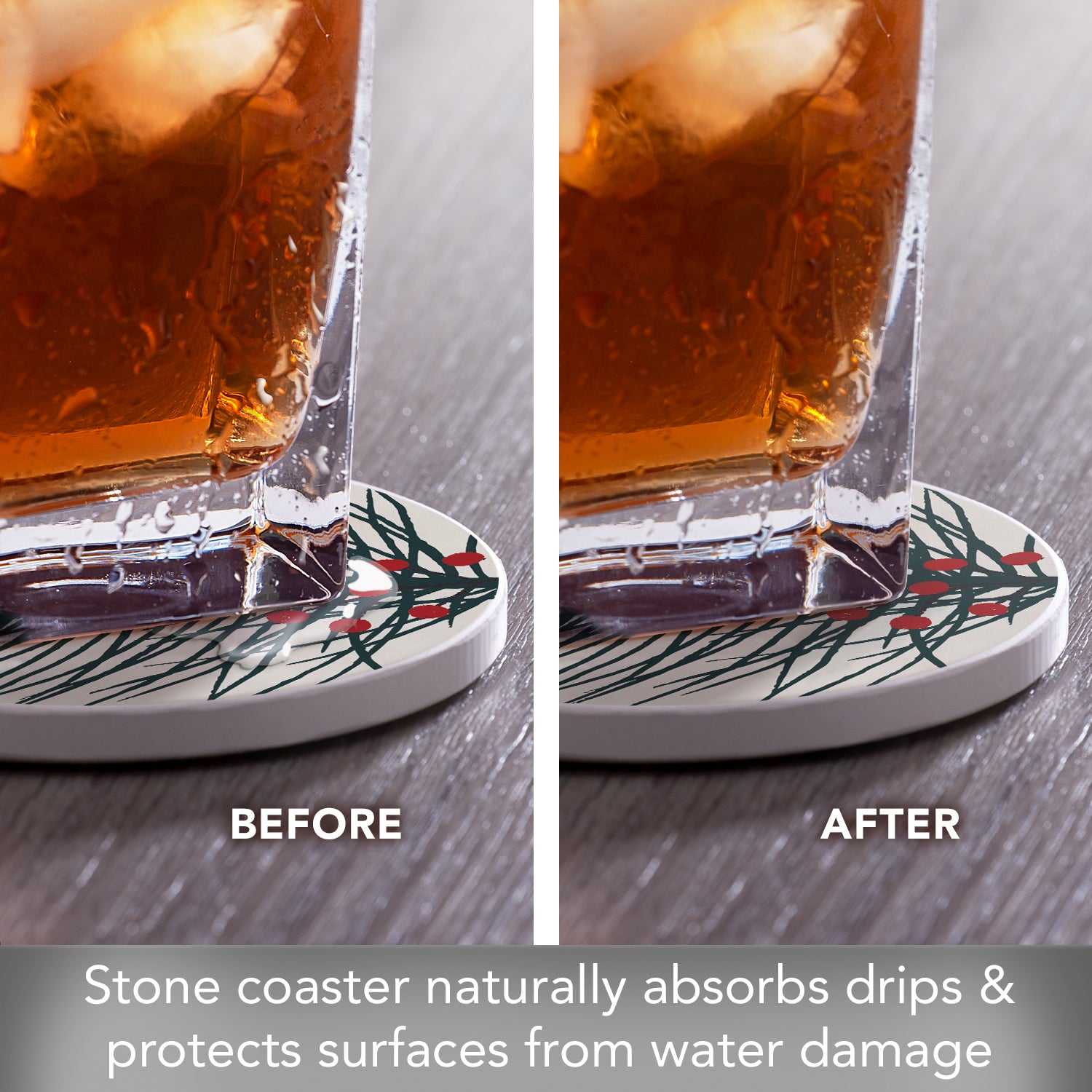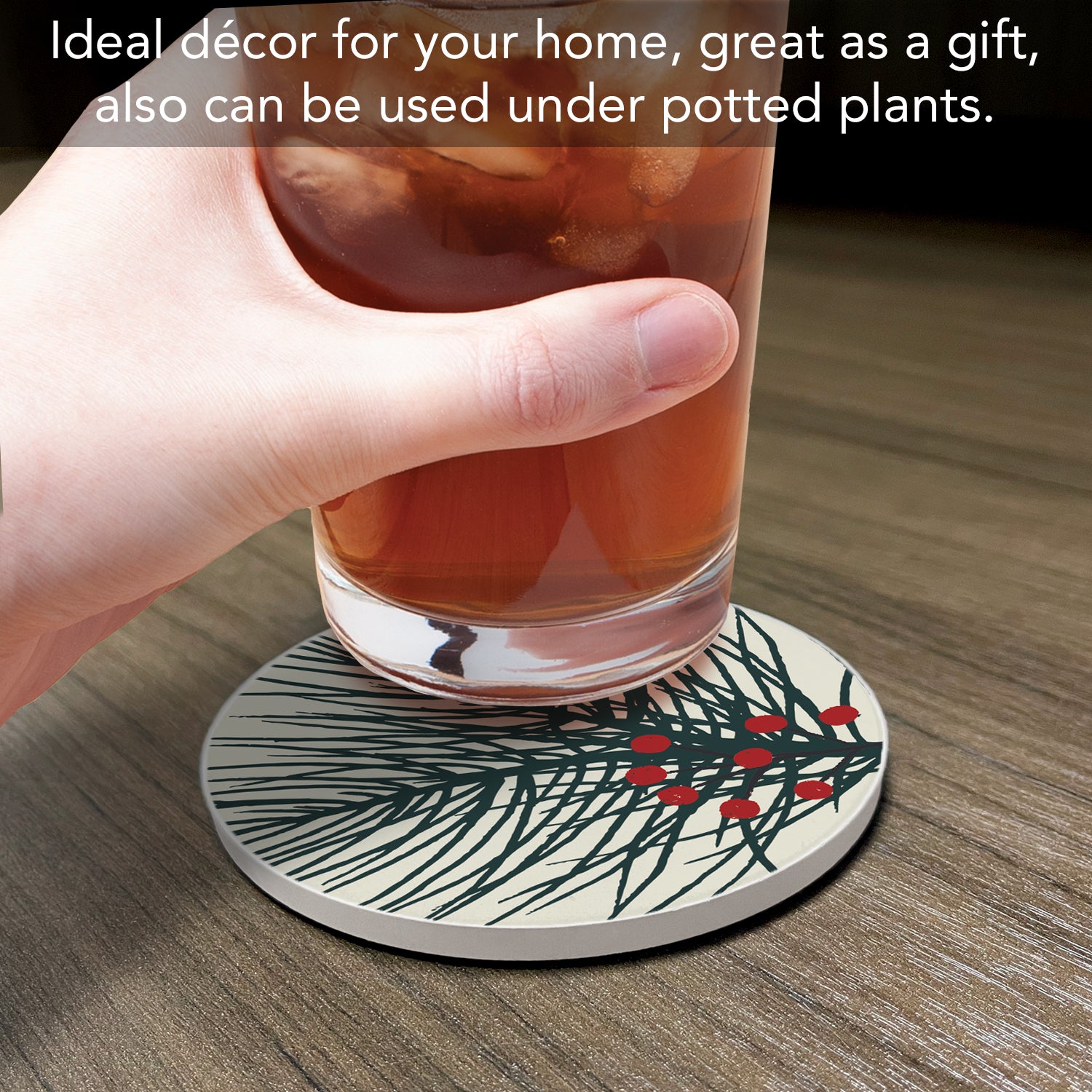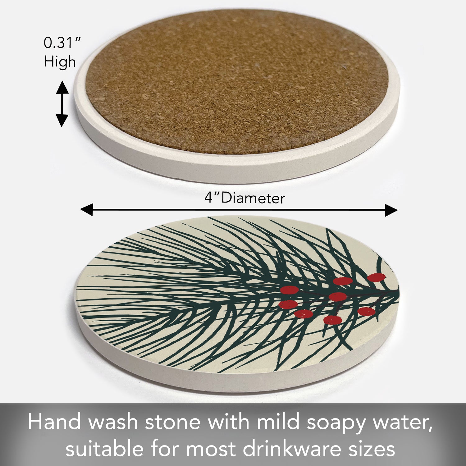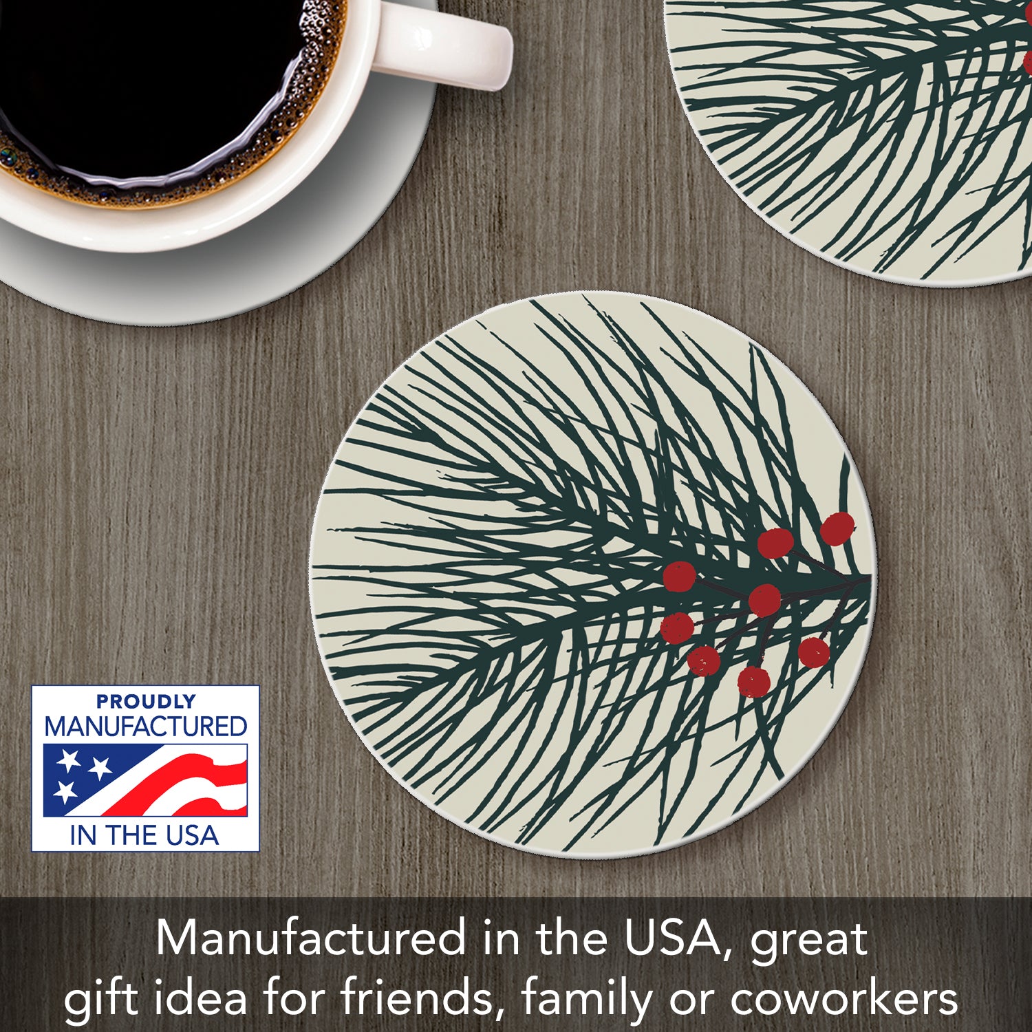 Thirstystone Christmas Pine Single Round Absorbent Stone Coaster with Protective Cork Backing Manufactured in The USA 4" Diameter