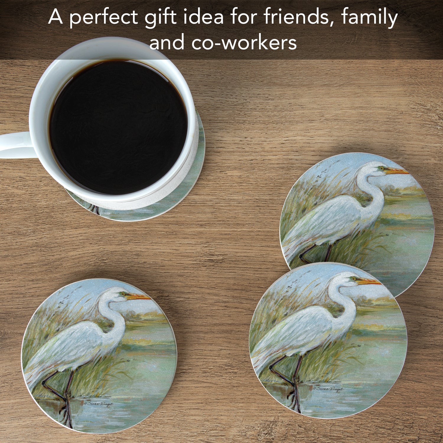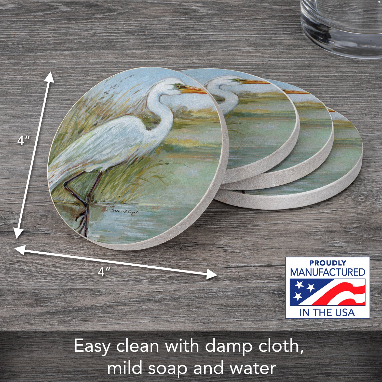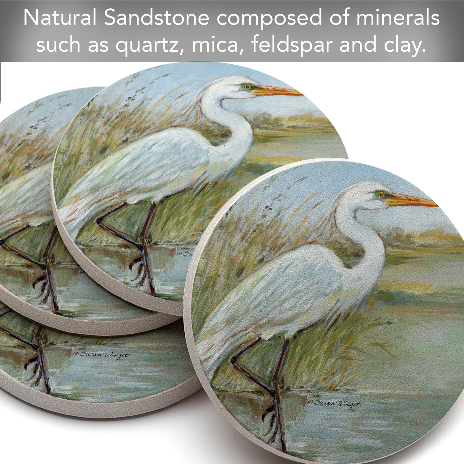 Thirstystone Coastal Egret 4 Pack Round Natural Sandstone Coasters 4" Round
