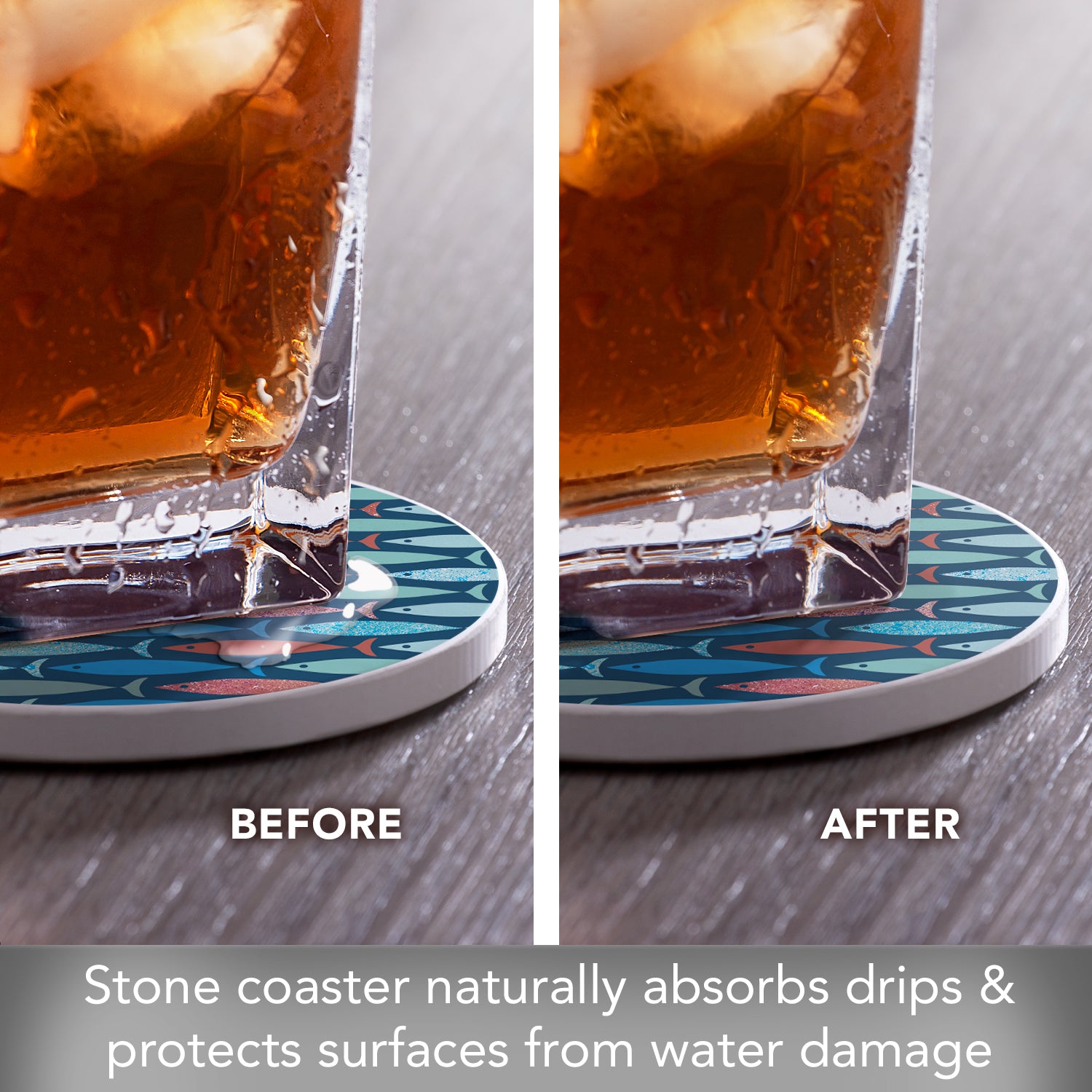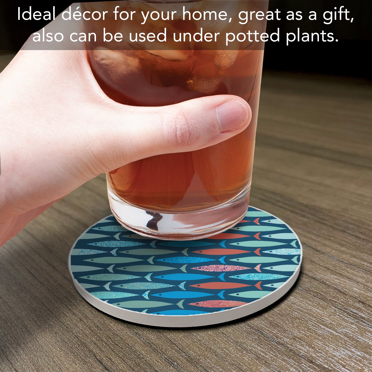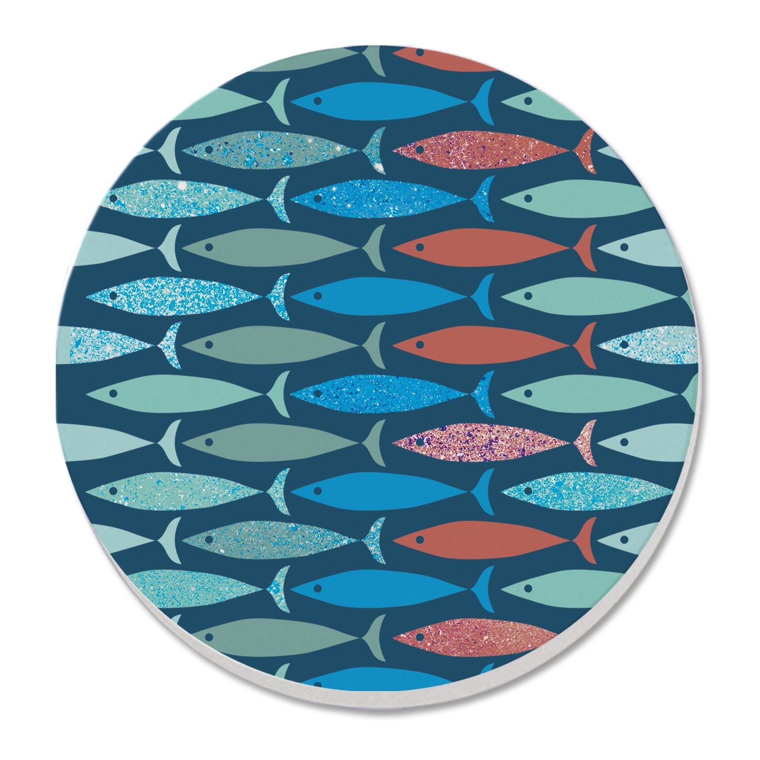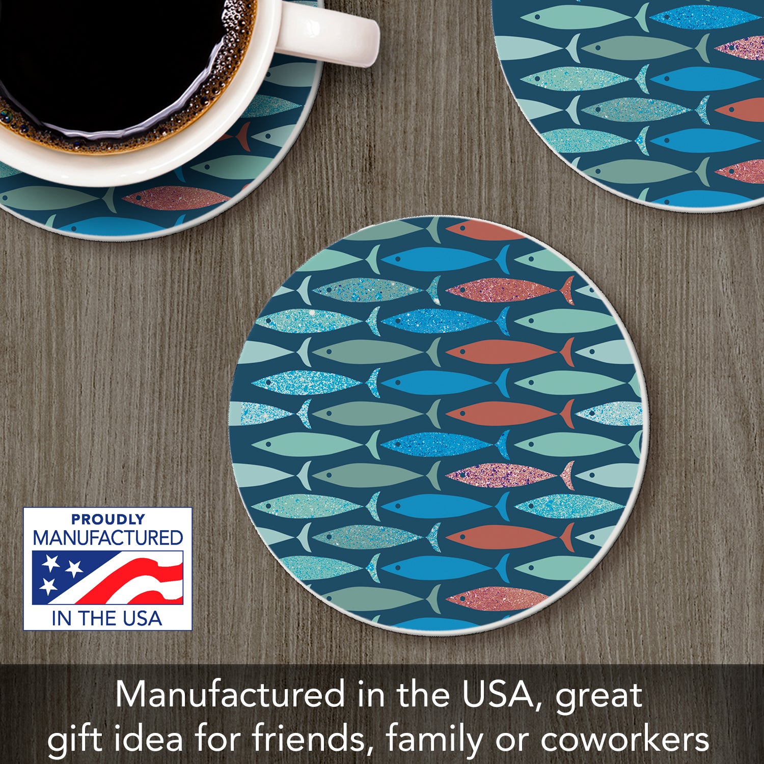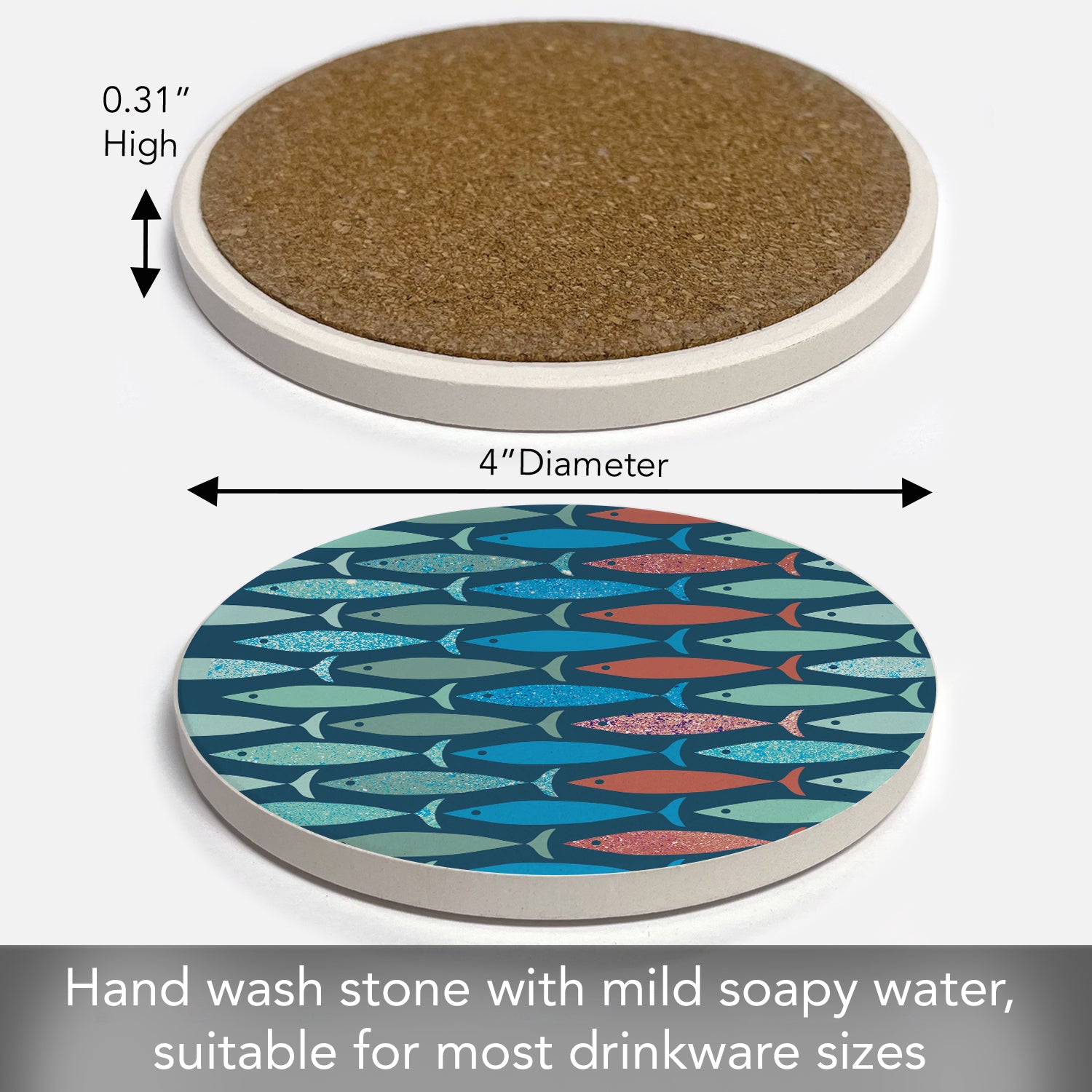 Thirstystone Coastal Fish Round Absorbent Stone Coaster with Protective Cork Backing Manufactured in The USA 4" Diameter