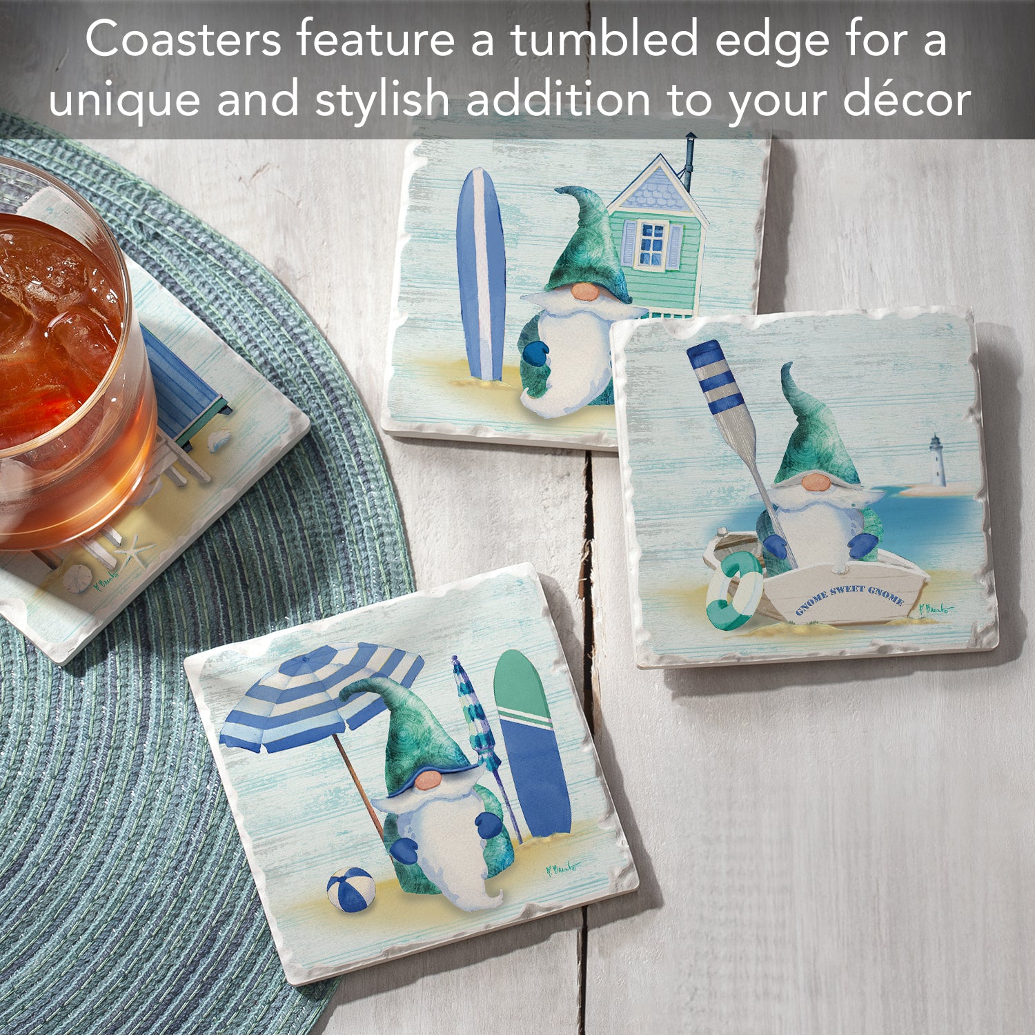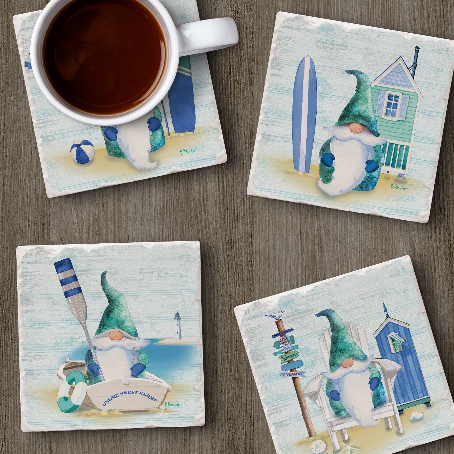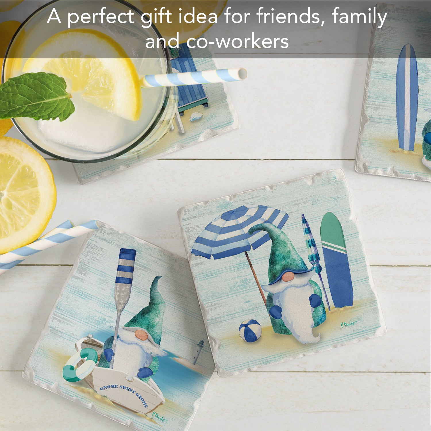 Thirstystone Coastal Gnomes 4 Pack Assorted Tumbled Tile Stone Coasters4" Square