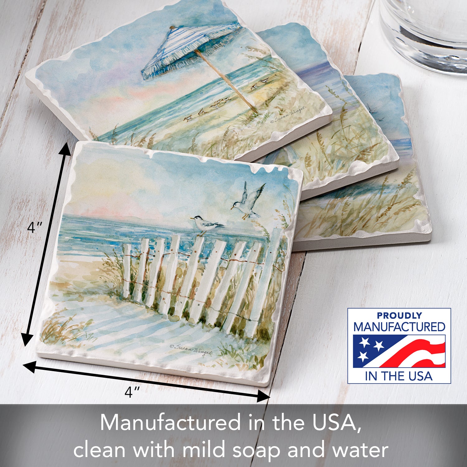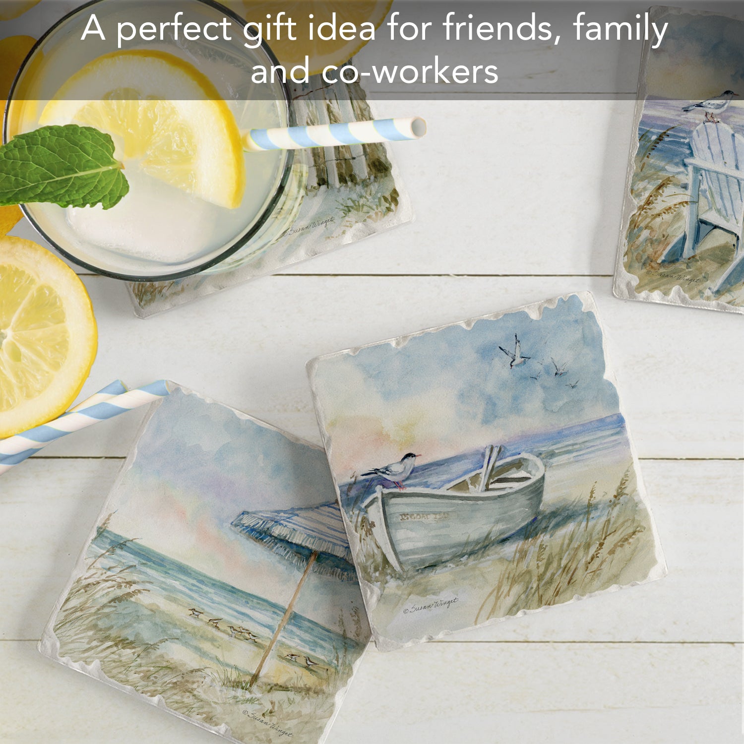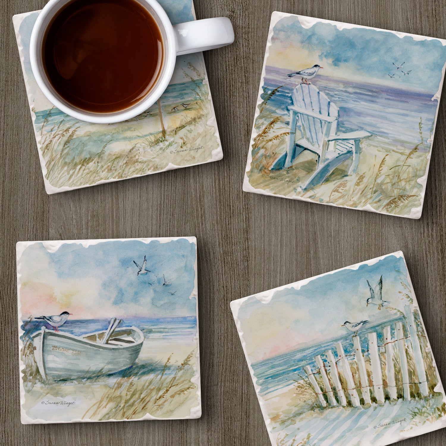 Thirstystone Coastal Sanctuary 4 Pack Assorted Tumbled Tile Stone Coasters 4" Square