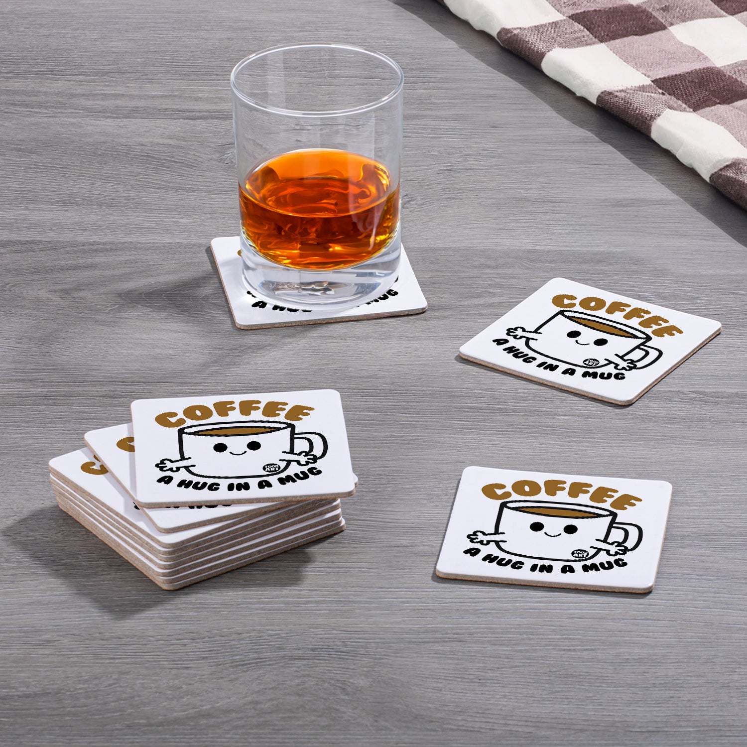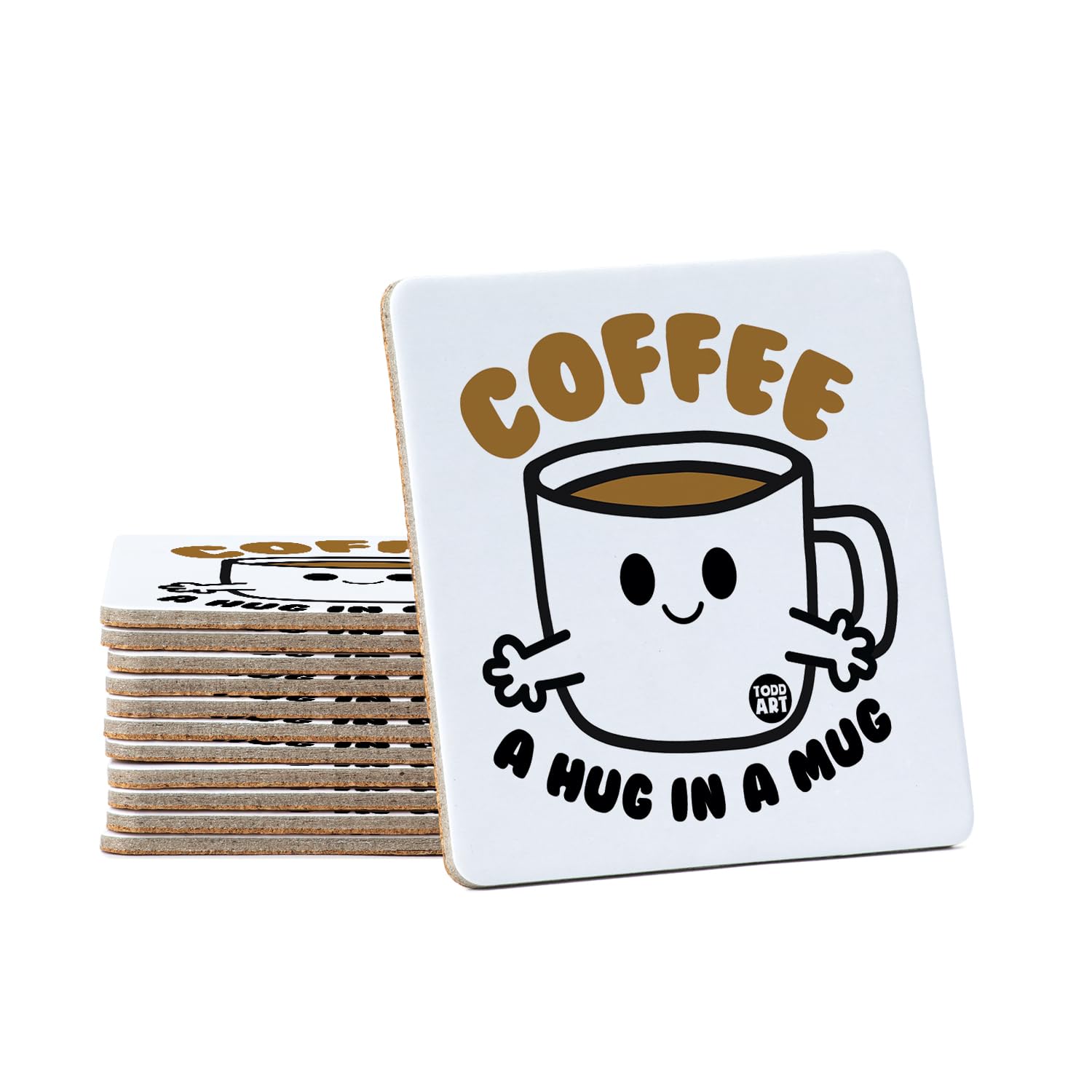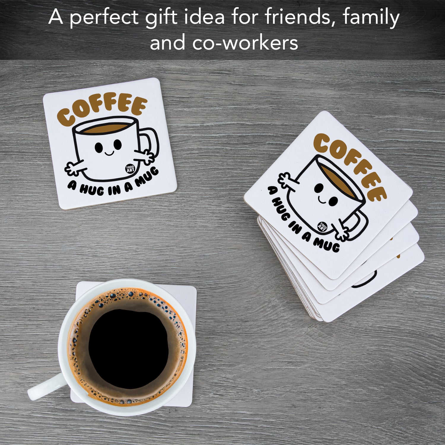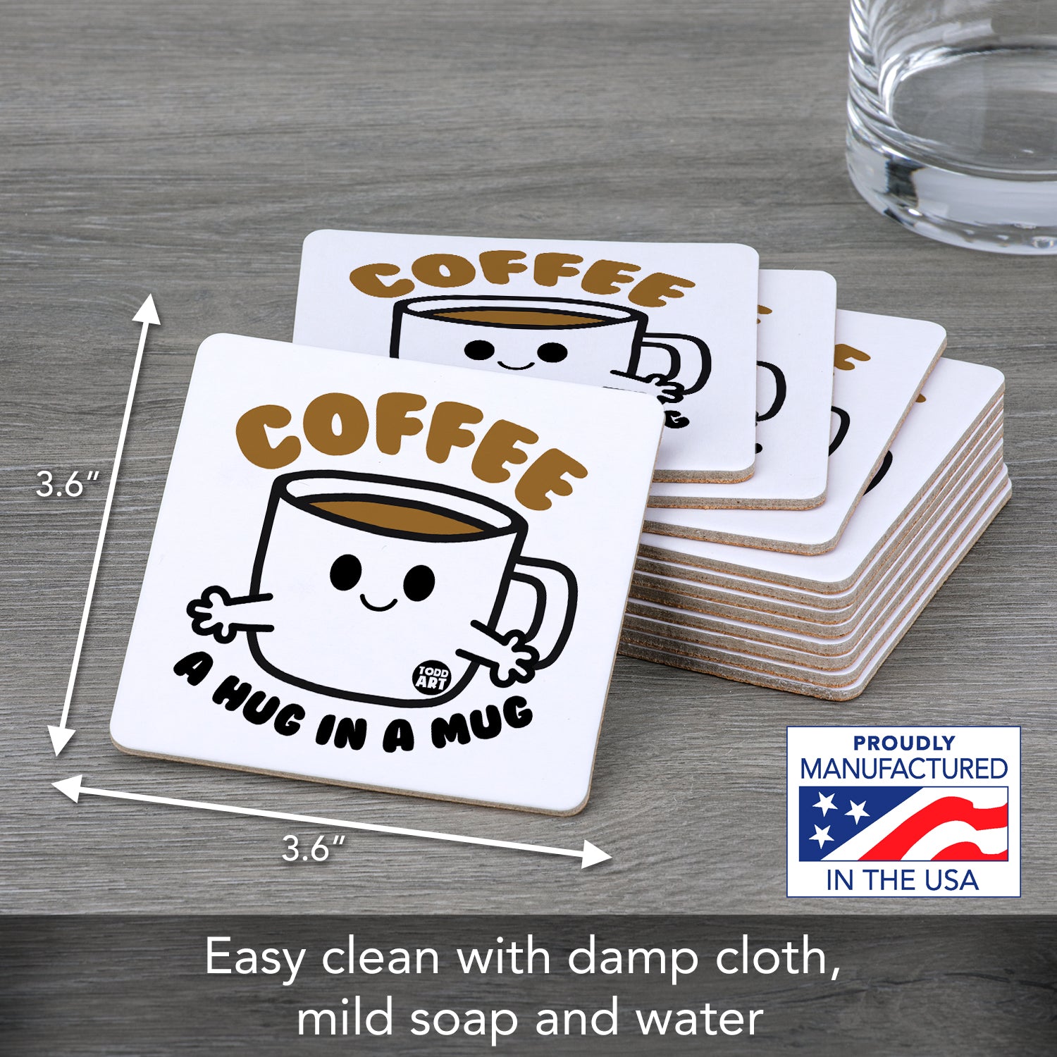 Thirstystone Coffee Hug 12-Pack Cork Back Paper Bar Coasters Made in The USA Humourous Quotes Attractive Designs