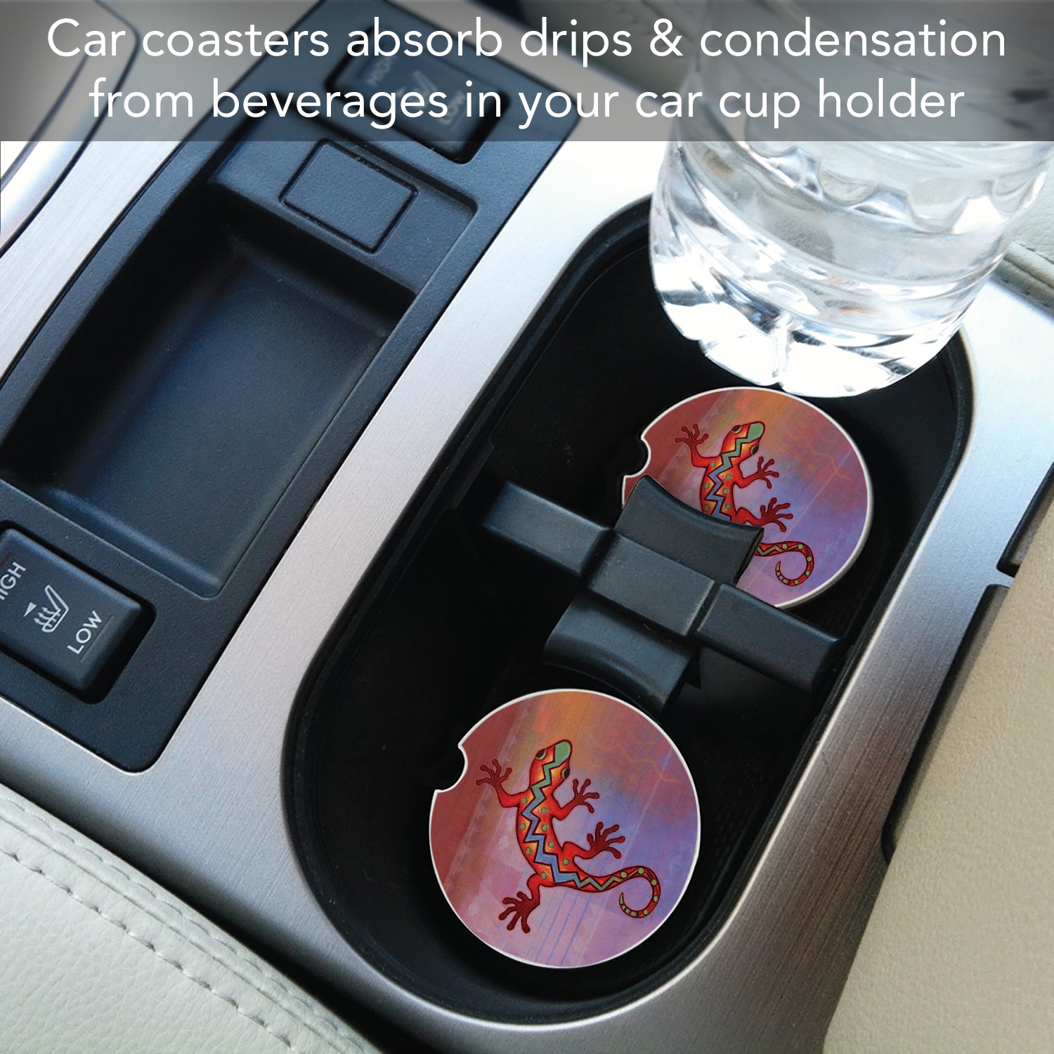 ABSORBENT STONE-Car Coaster is constructed of natural absorbent stone that absorbs drips and condensation from beverages in your vehicle’s cup holder.