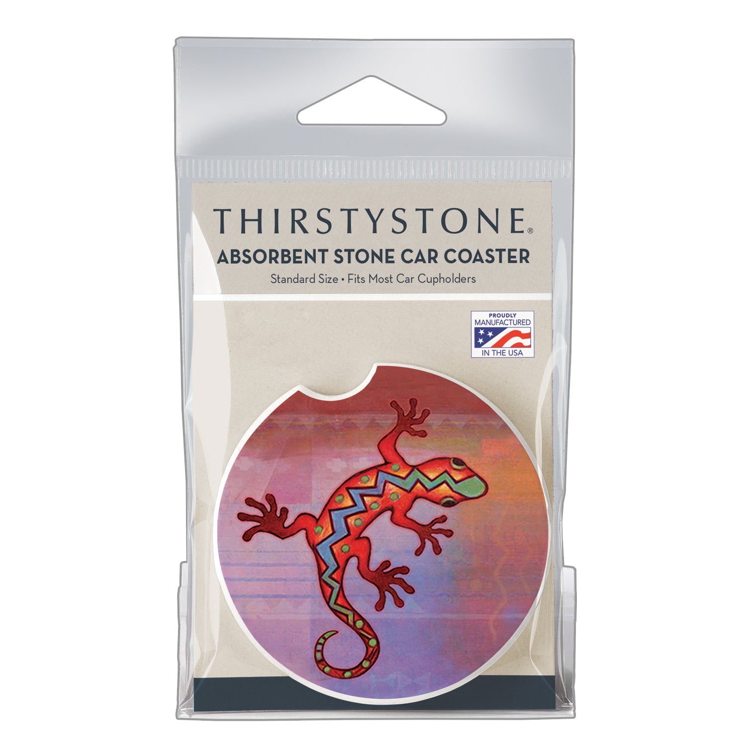 Thirstystone Colorful Gecko Single Absorbent Stone Coaster for Vehicle Cup Holder 2.6” Diameter Manufactured in The USA