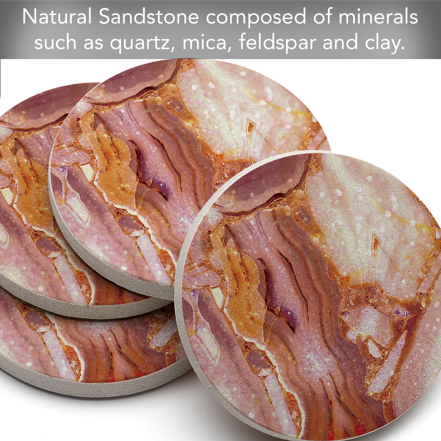 Thirstystone Coral Agate 4 Pack Natural Sandstone Coasters 4" Round