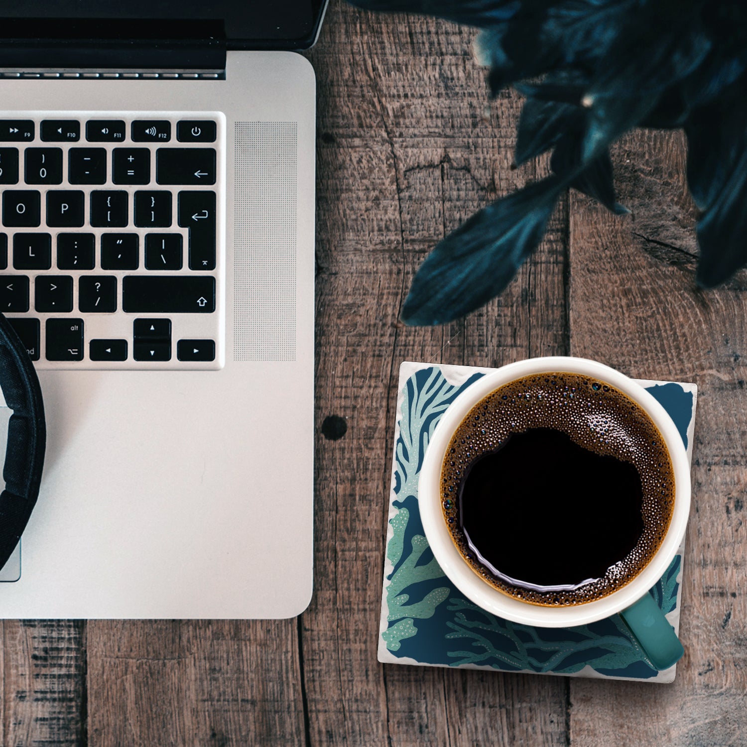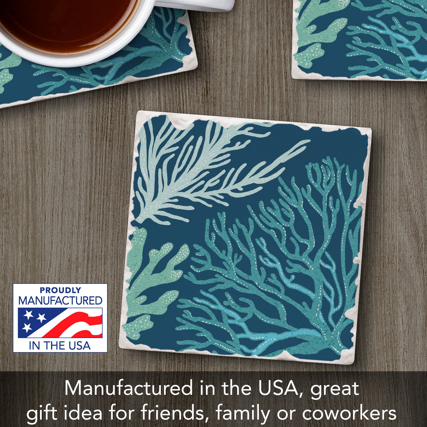 Thirstystone Coral Blues Single Tumbled Tile Stone Coaster with Protective Cork Backing Manufactured in The USA 4" Square, Artistic, Easily Wipes Clean