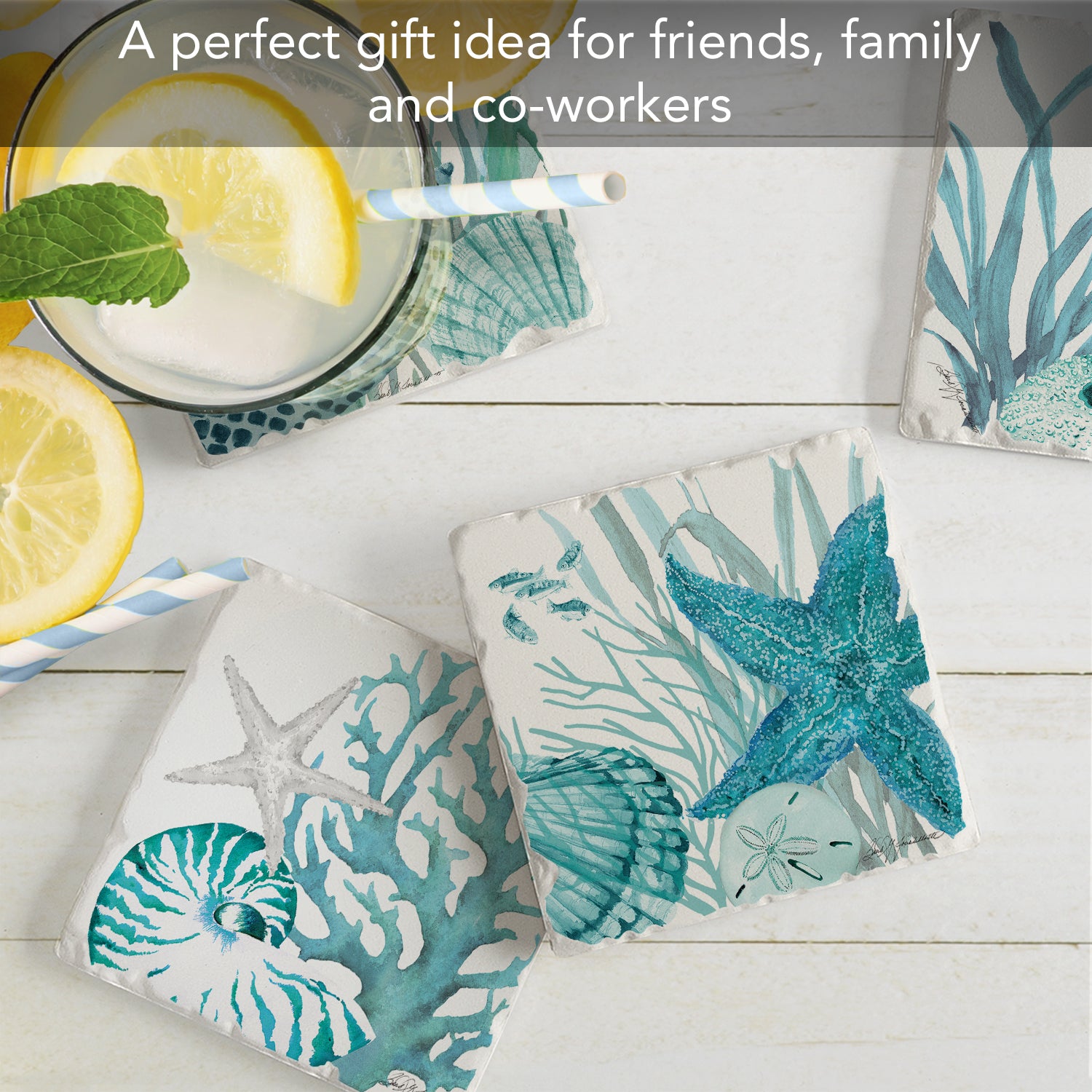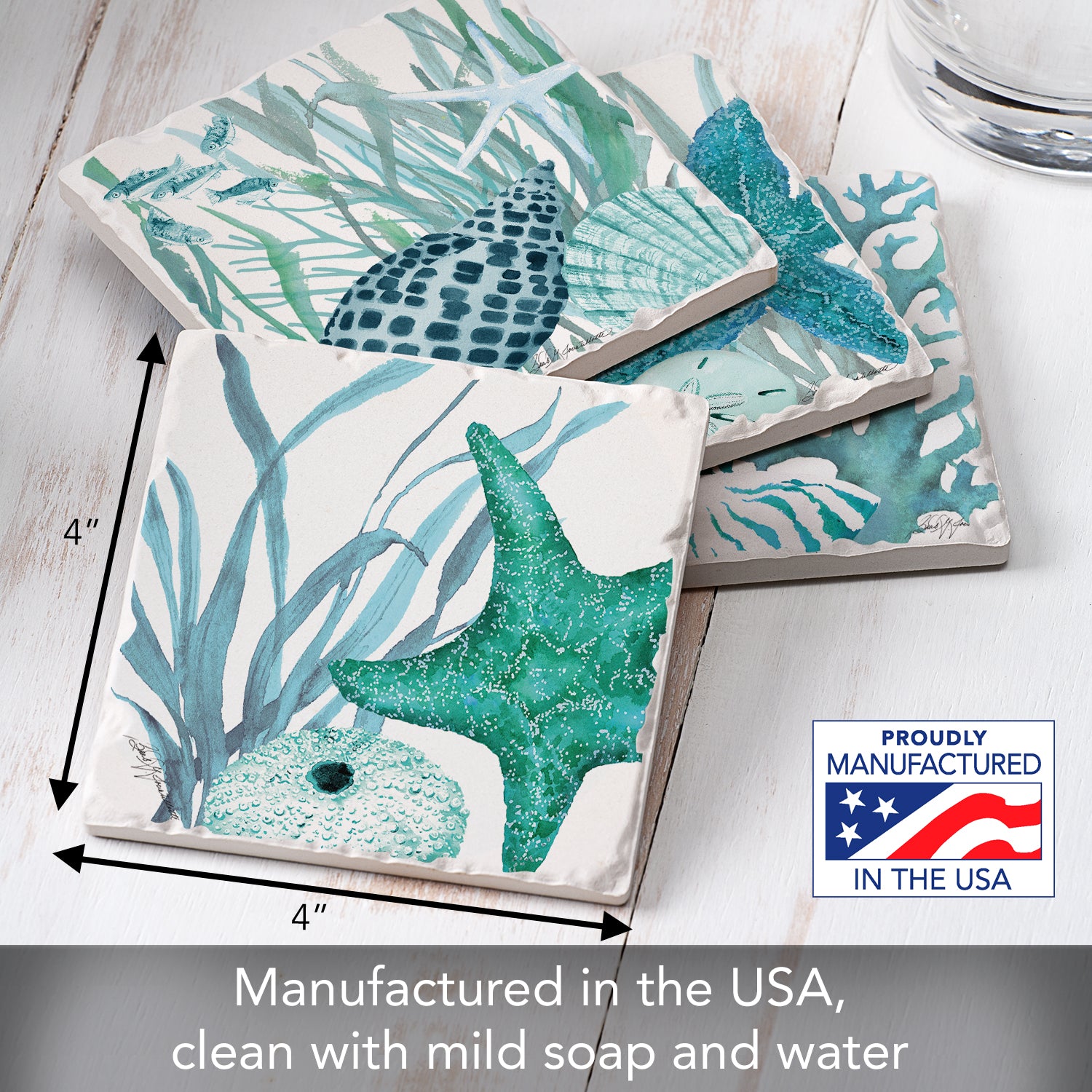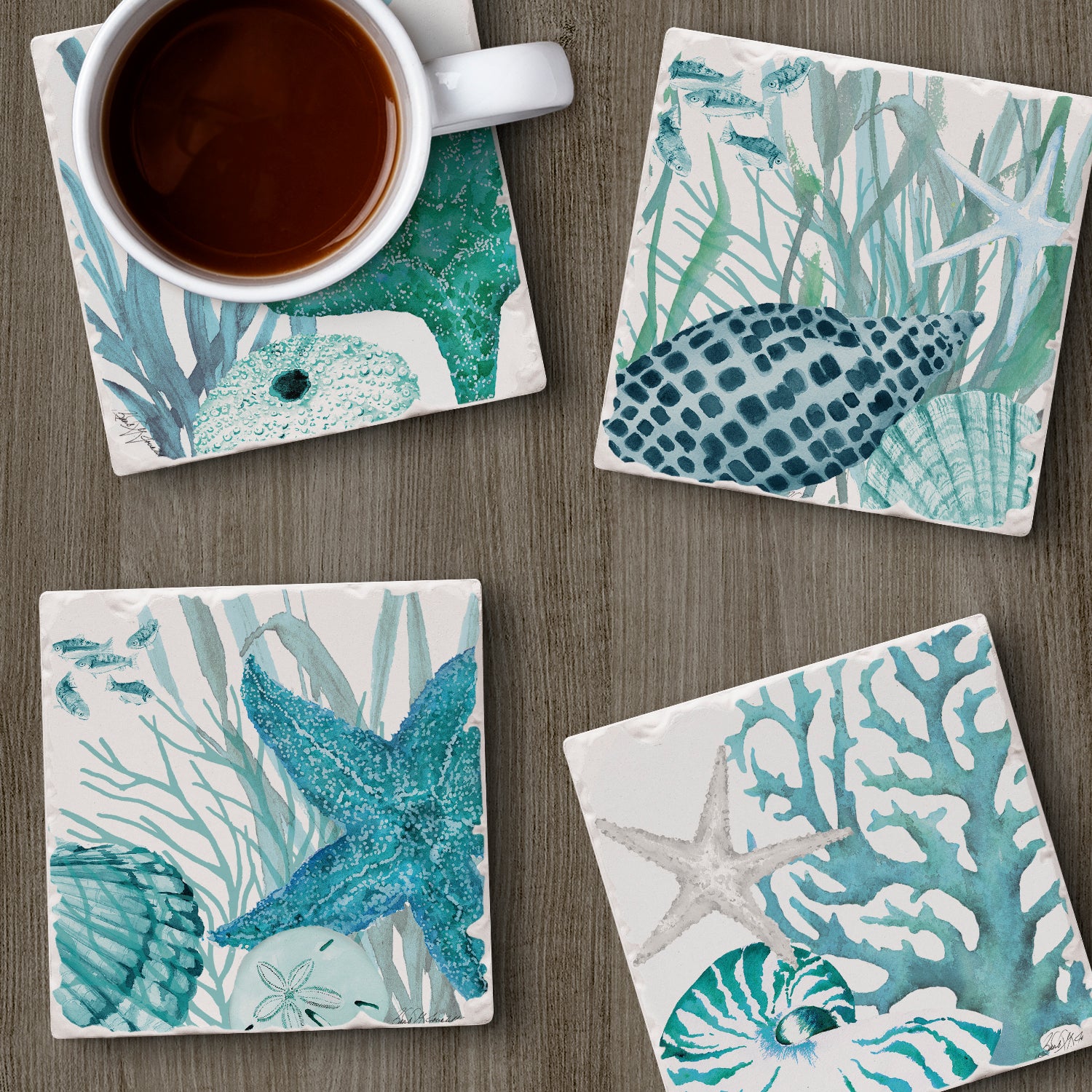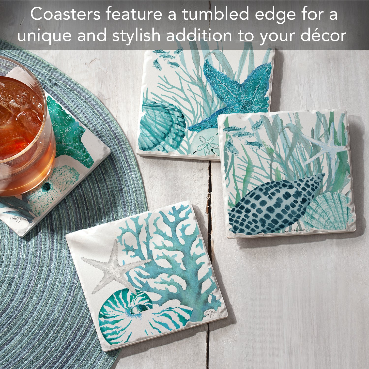 Thirstystone Coral Life 4-Pack Tumbled Tile Stone Coasters 4" Square