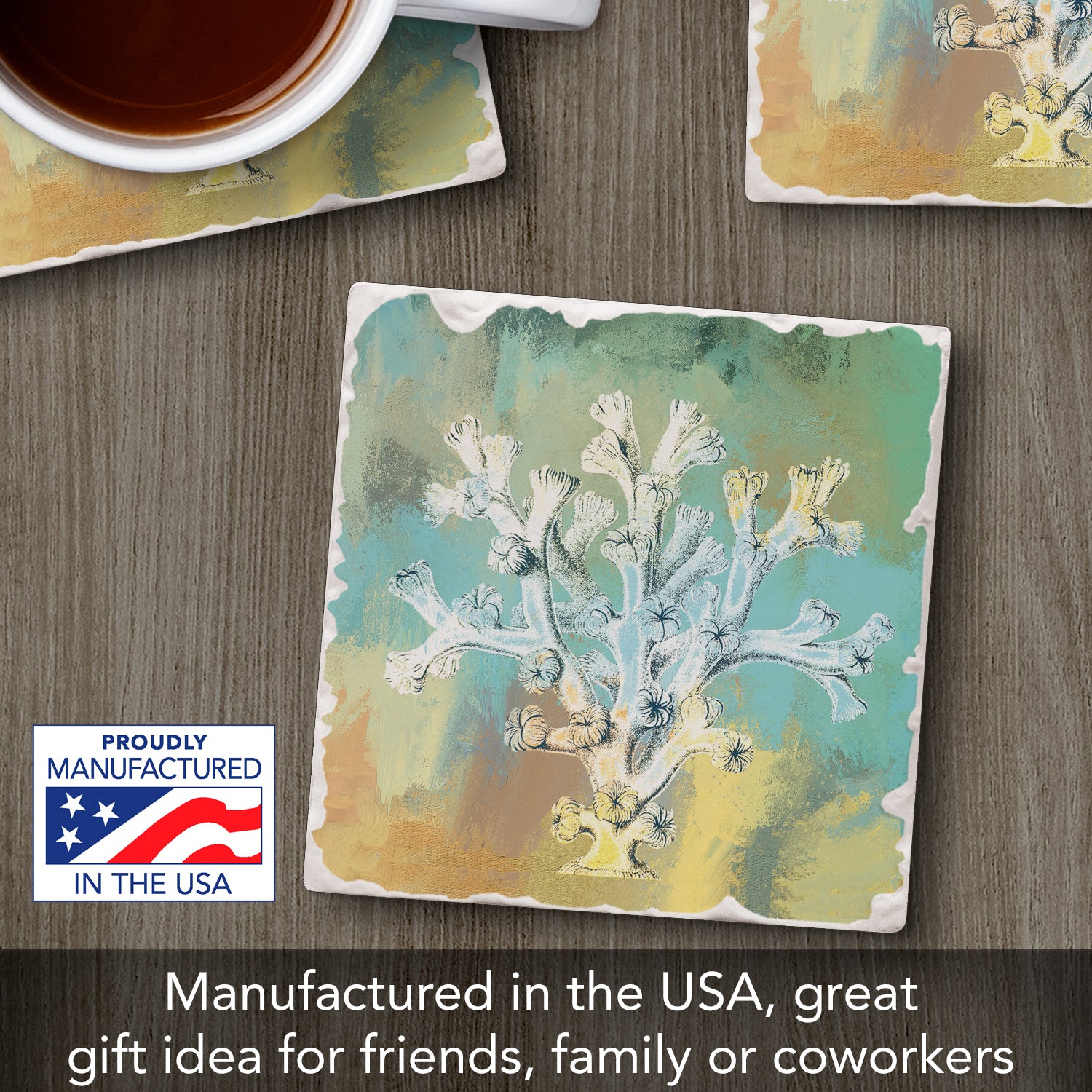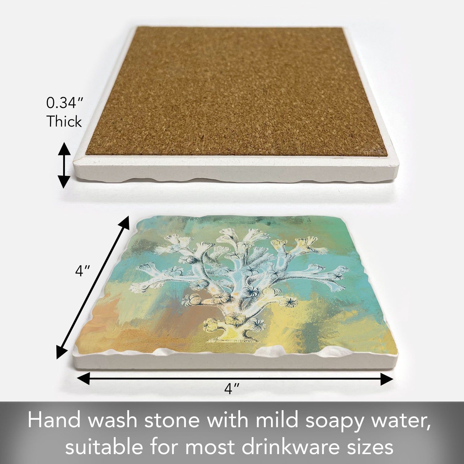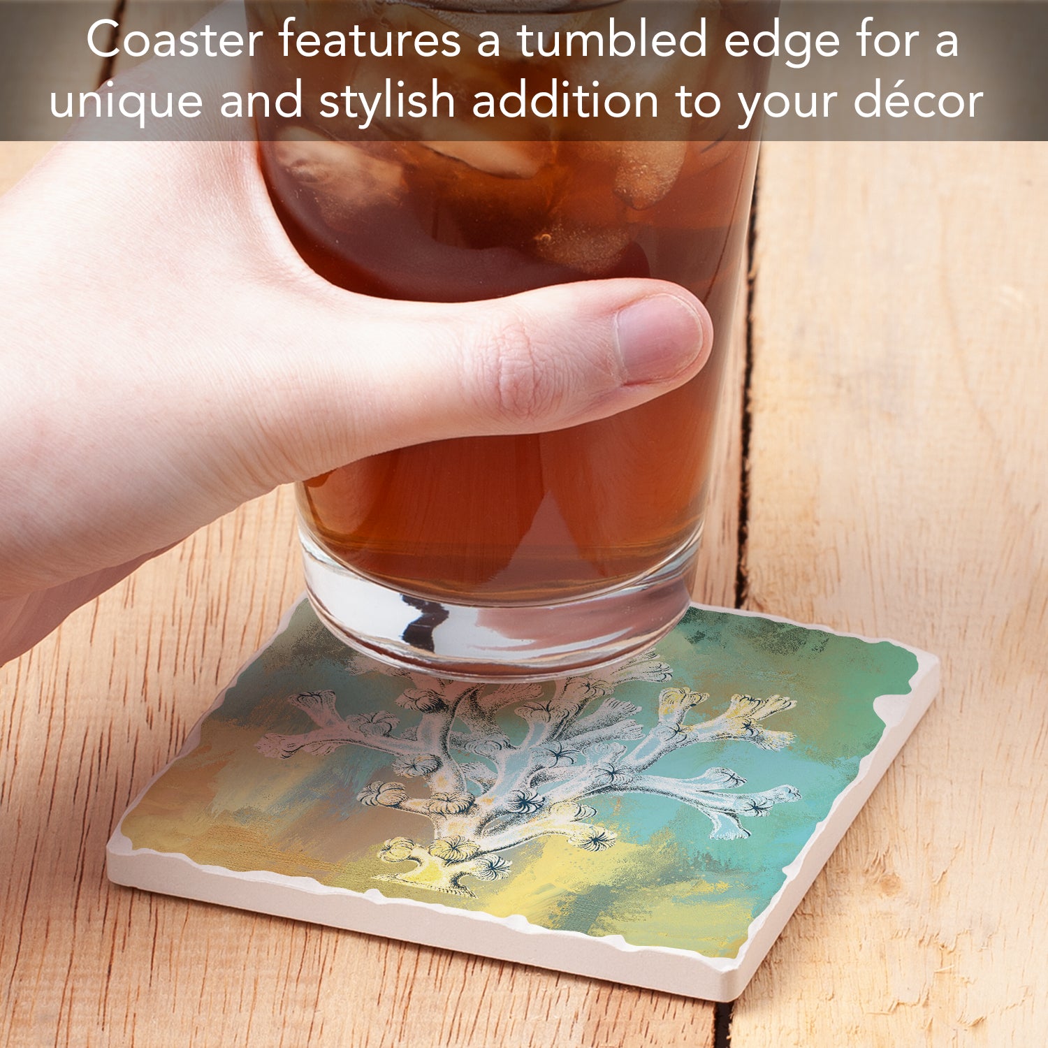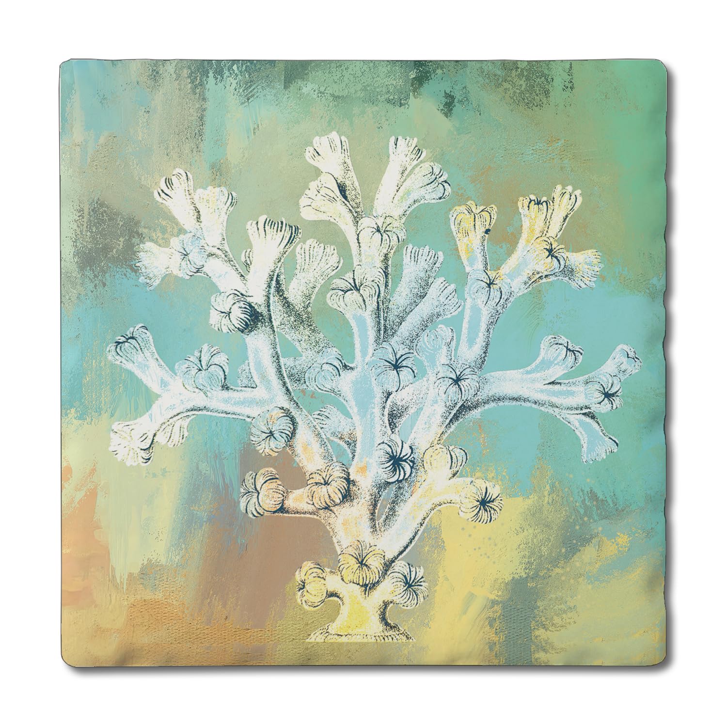 Thirstystone Coral Wash Single Tumbled Tile Stone Coaster with Protective Cork Backing Manufactured in The USA 4" Square, Artistic, Easily Wipes Clean
