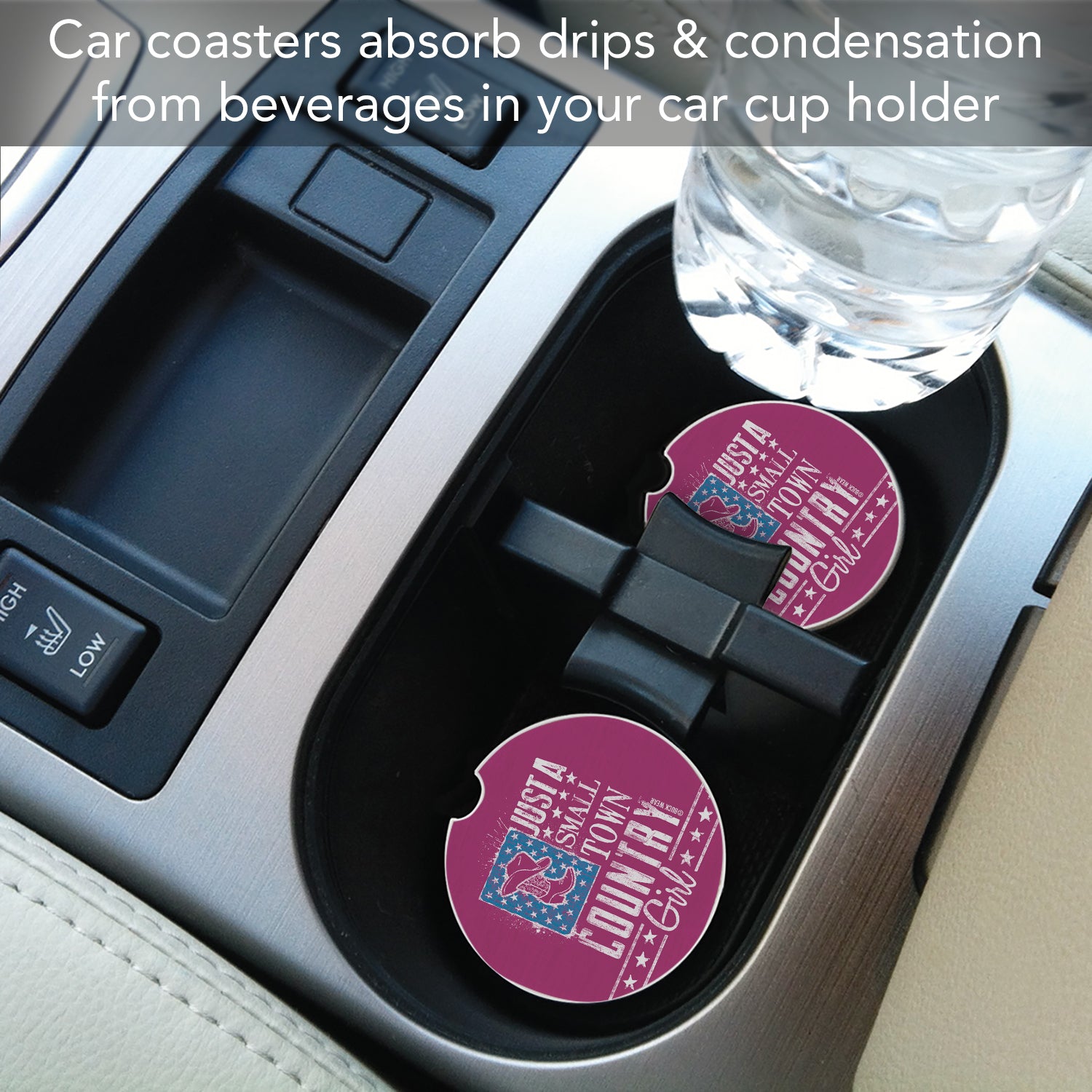 FEATURES-Car Coaster features a convenient finger slot on the edge for easy removal from cup holder. Car Coaster assists in keeping your vehicle cup holder clean and dry. Easy to remove when detailing your car. Designed to fit cup holders in most cars, trucks, or boats.