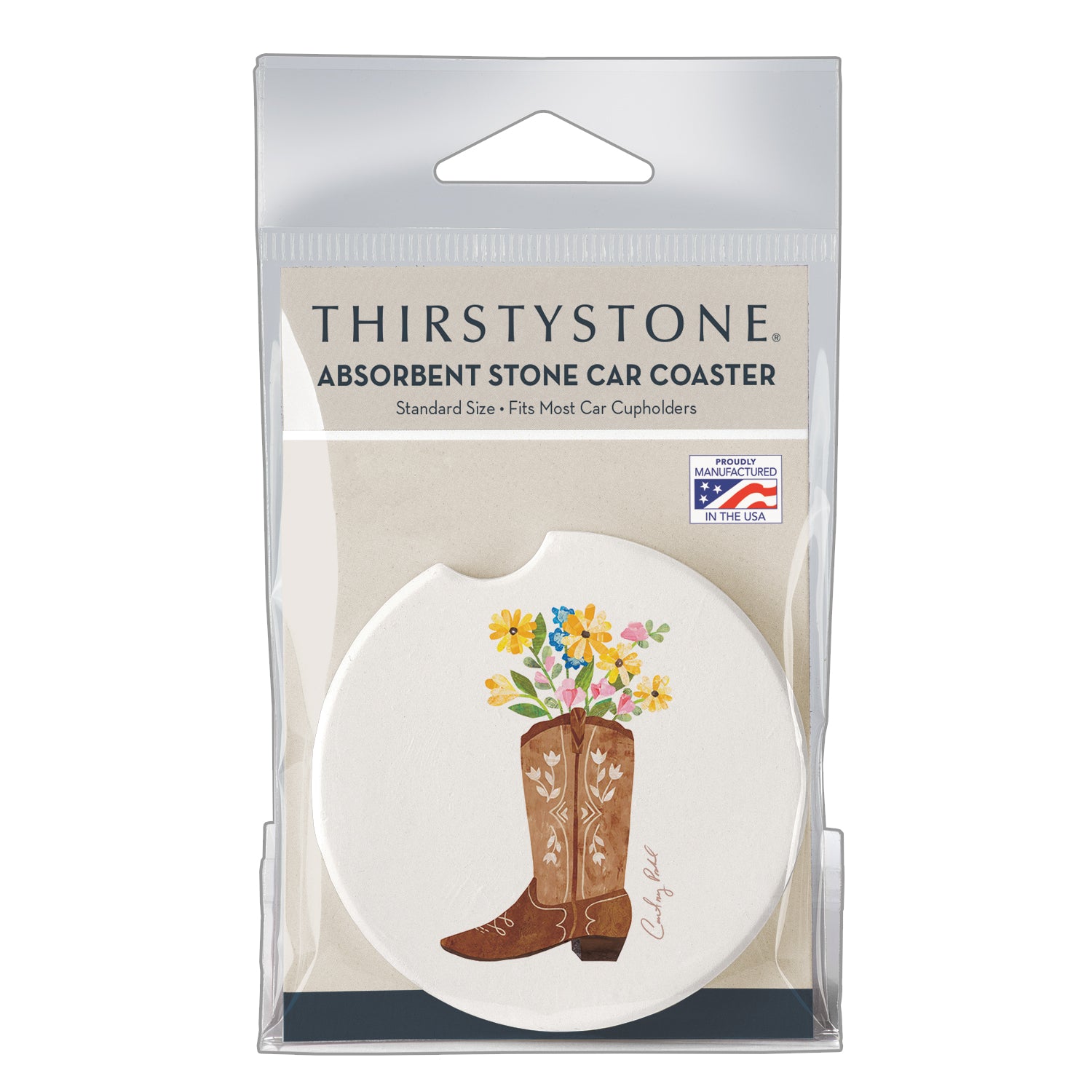 Thirstystone Cowgirl Boot Single Absorbent Stone Car Coaster 2.6” Diameter Manufactured in the USA
