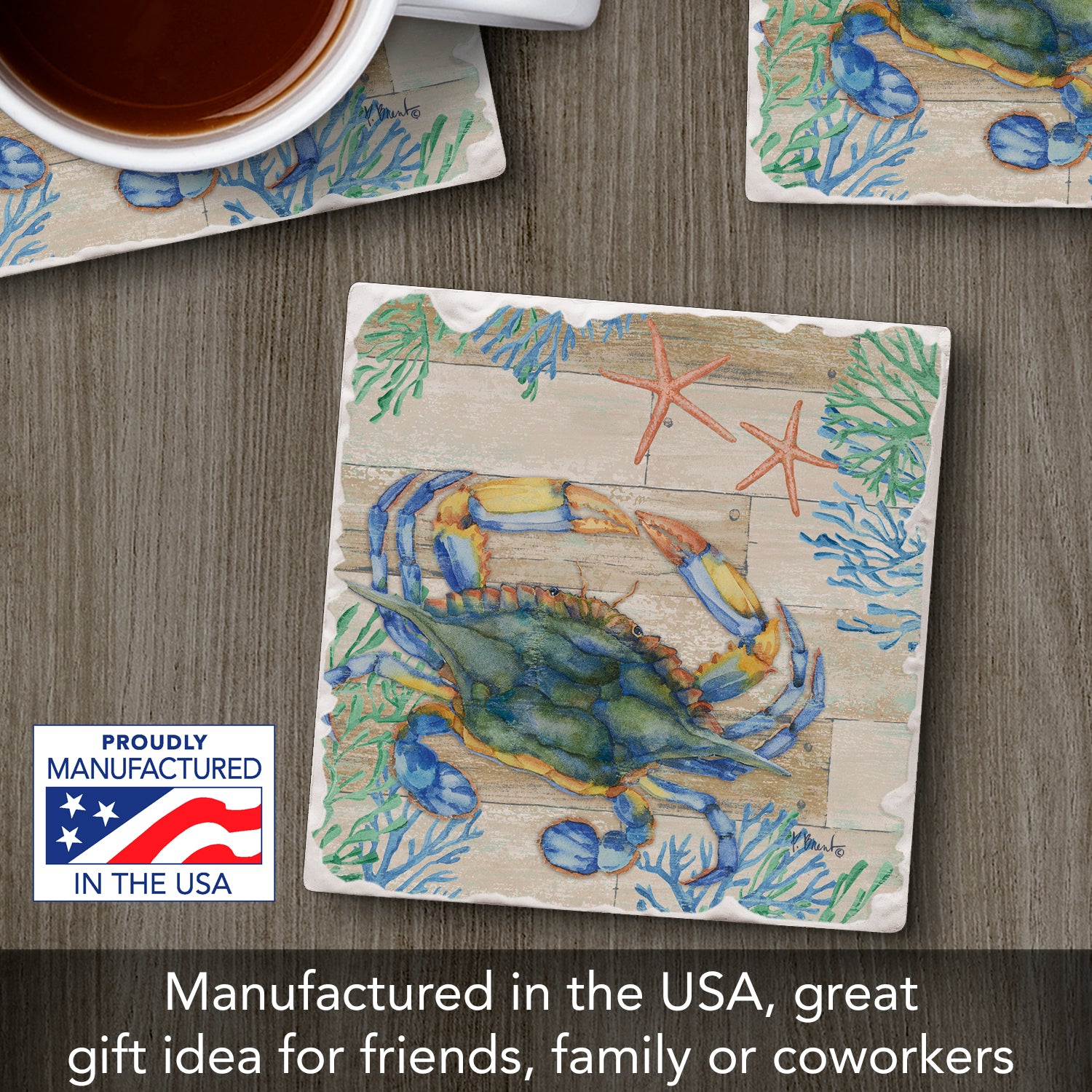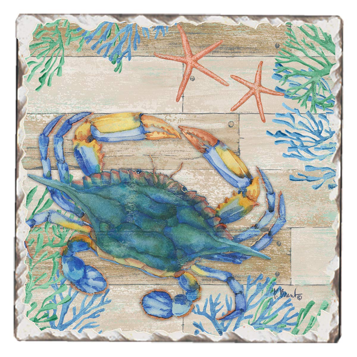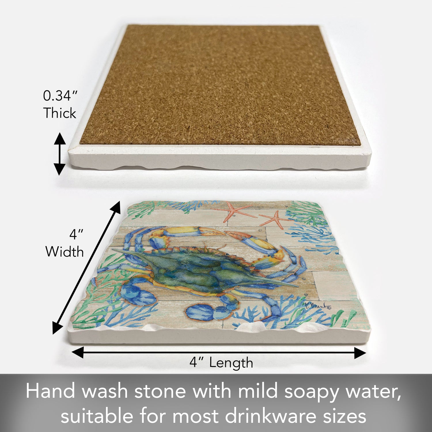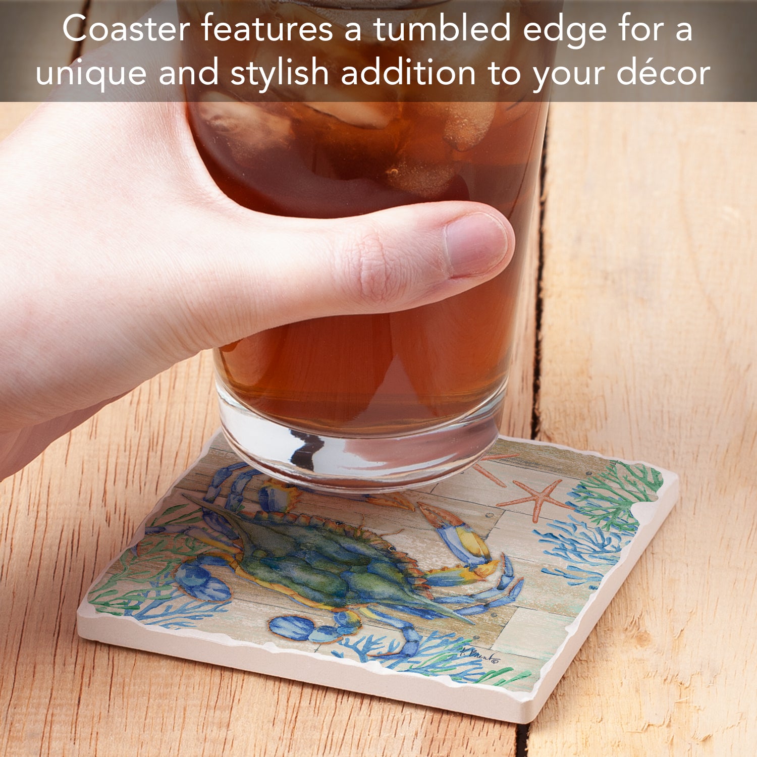 Thirstystone Crab Life Single Tumbled Tile Stone Coaster with Protective Cork Backing Manufactured in The USA 4" Square, Colorful, Artistiic, Easily Wipes Clean