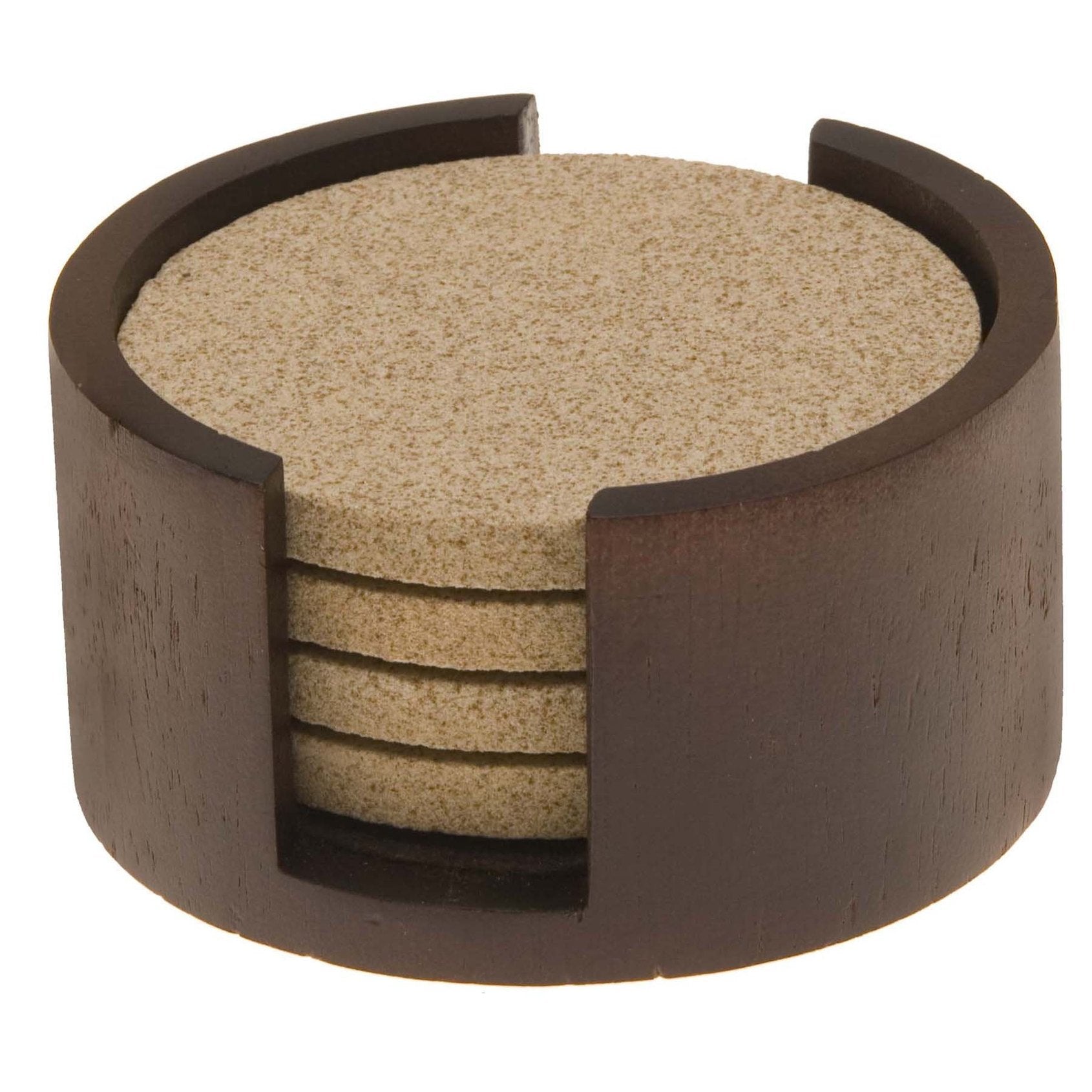 - CAPACITY: Wooden coaster holder will hold a set of 4 of 4†round coasters. Works great for Stone, Cork, Ceramic, or Sandstone Coasters.