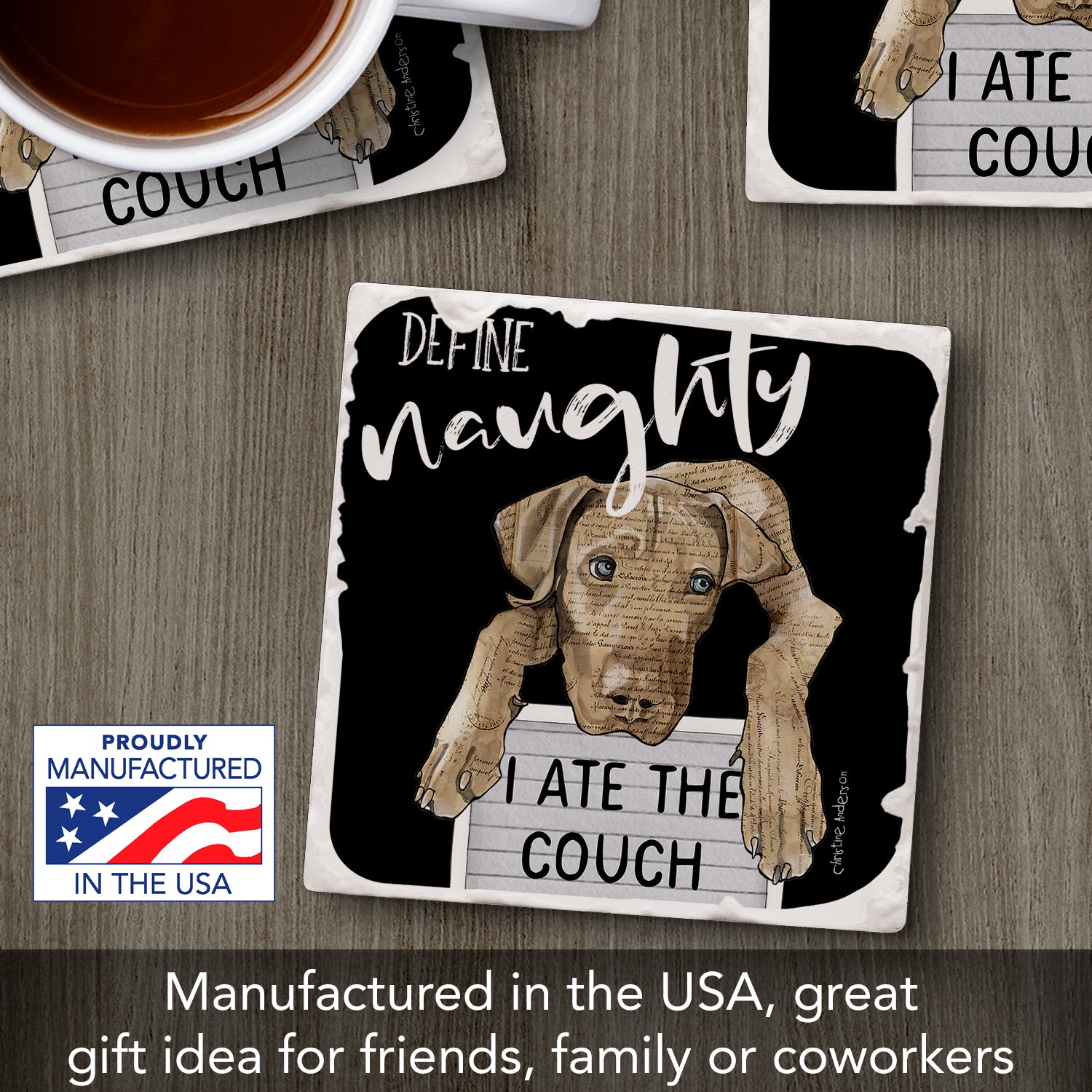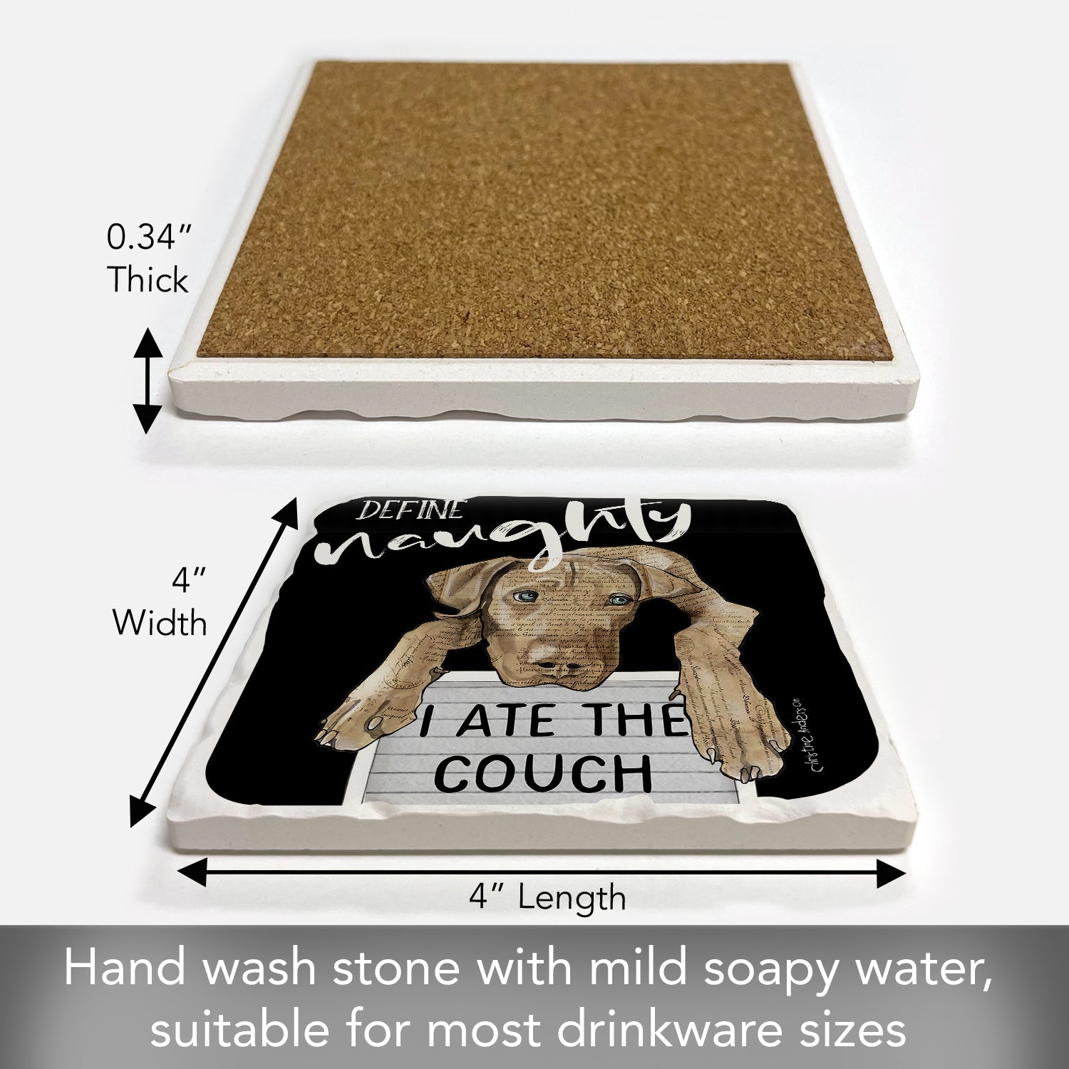Thirstystone Define Naughty Dog Single Tumbled Tile Stone Coaster with Protective Cork Backing Manufactured in The USA 4" Square, Colorful, Artistiic, Easily Wipes Clean