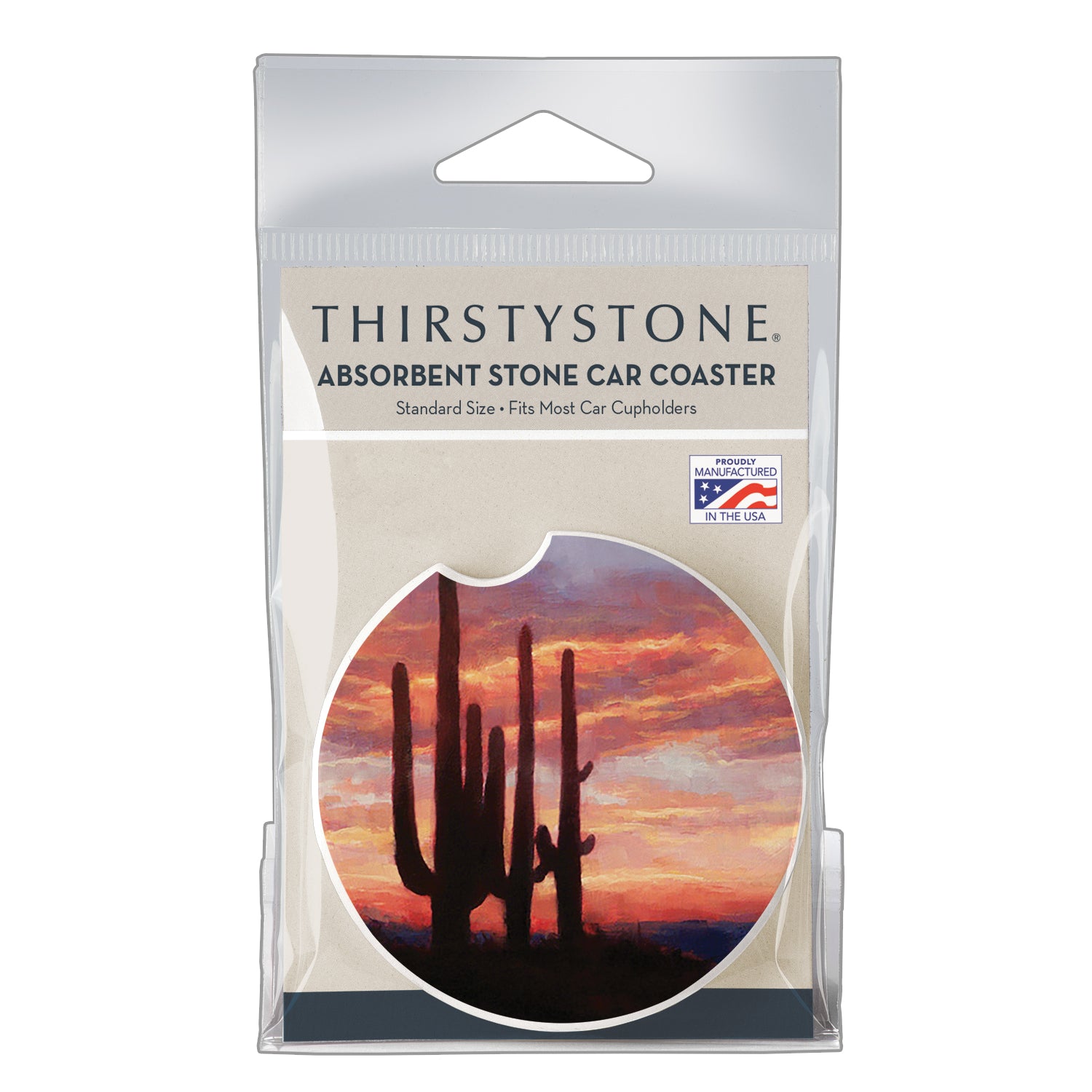 Thirstystone Desert Sunset Single Absorbent Stone Coaster for Vehicle Cup Holder 2.6” Diameter Manufactured in The USA