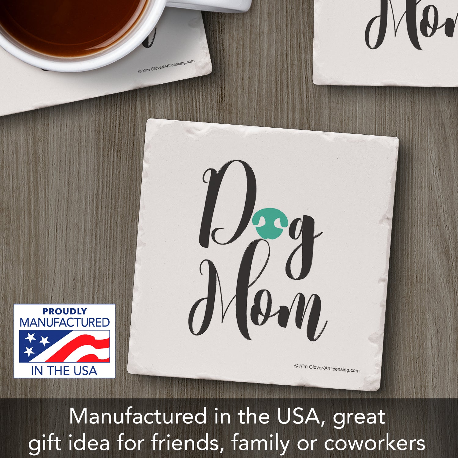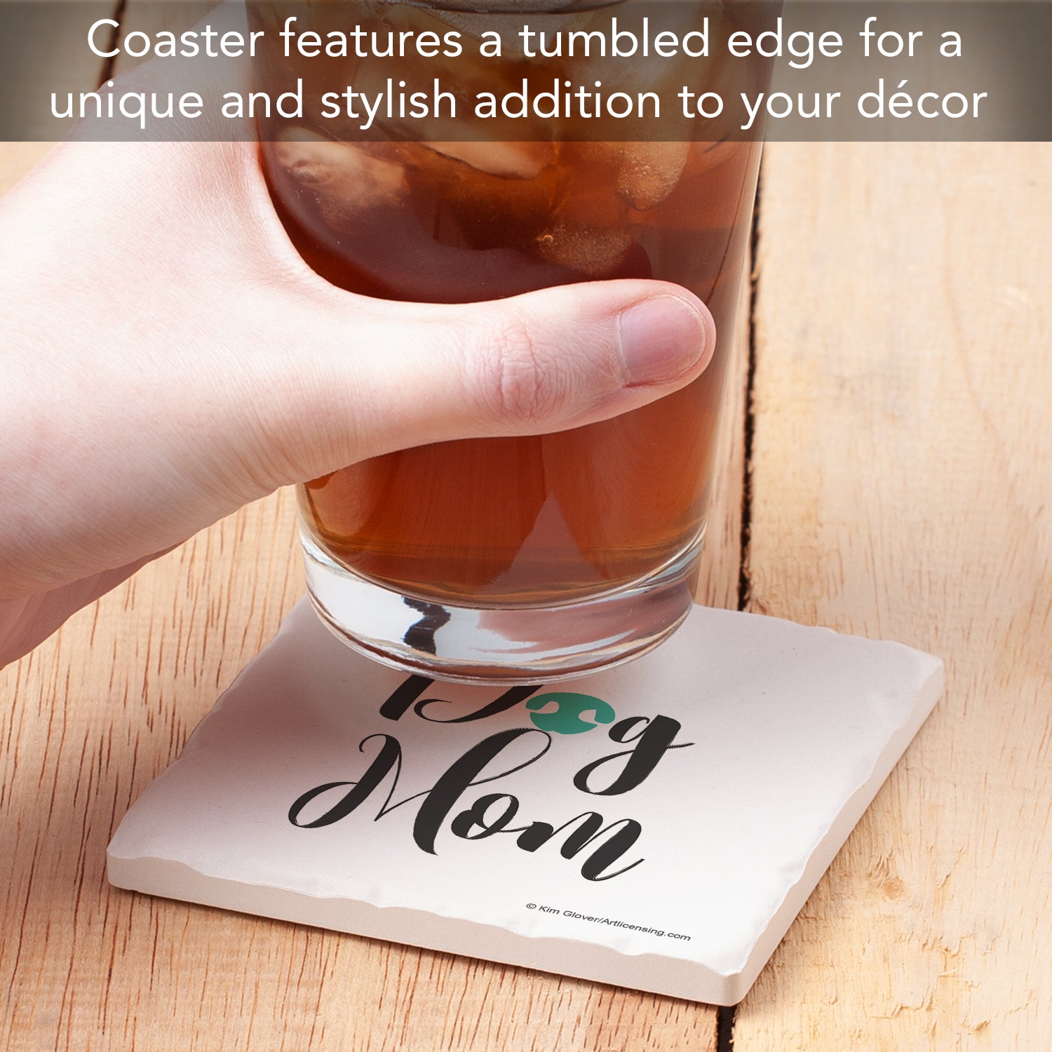 Thirstystone Dog Mom Single Tumbled Tile Stone Coaster with Protective Cork Backing Manufactured in The USA 4" Square, Artistic, Easily Wipes Clean
