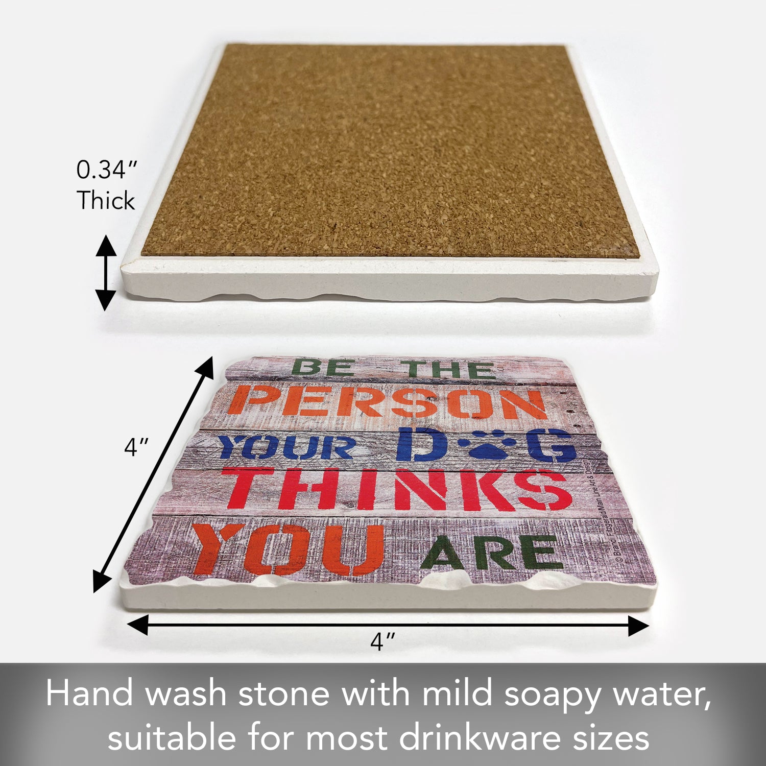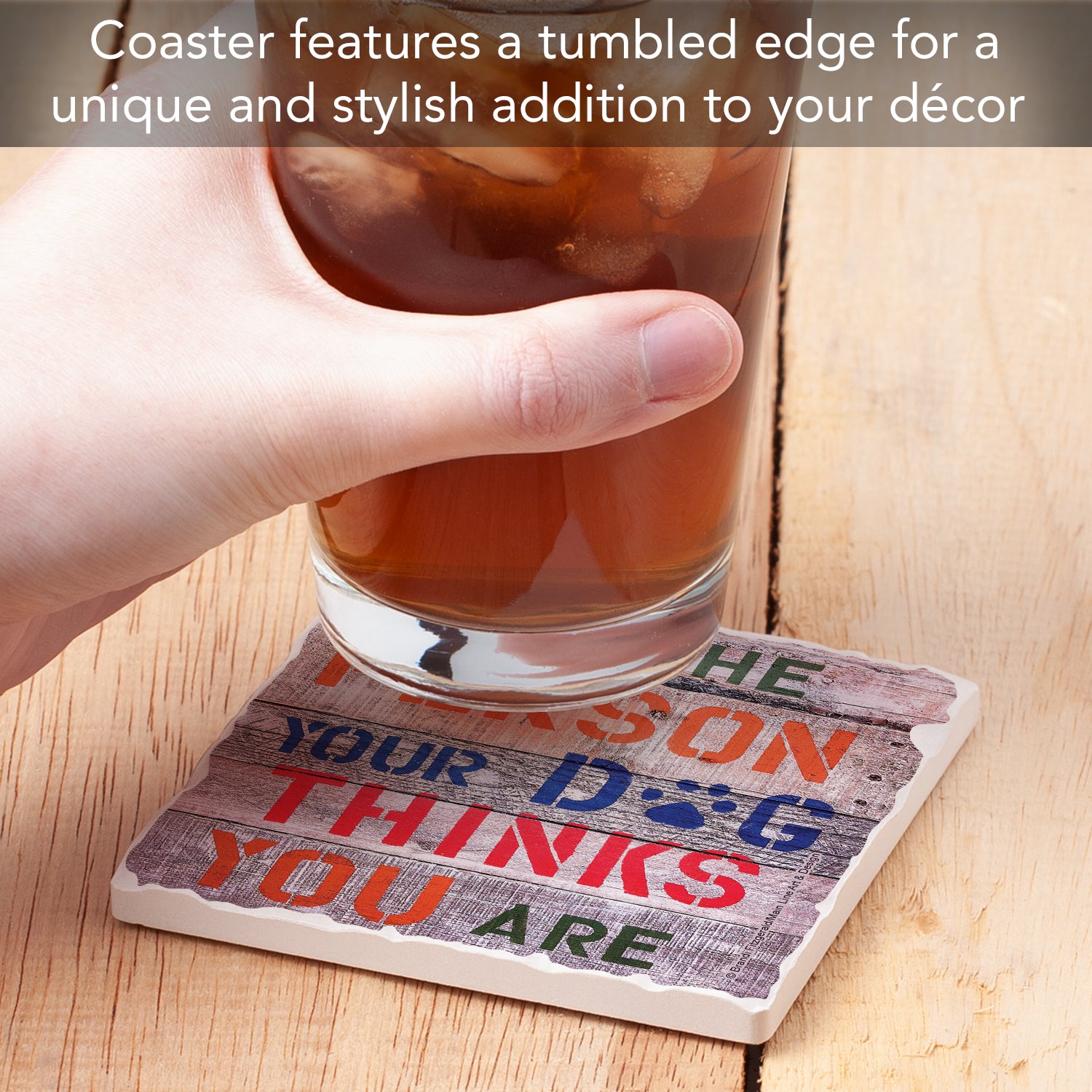 Thirstystone Dog Thinks Single Tumbled Tile Stone Coaster with Protective Cork Backing Manufactured in The USA 4" Square, Artistic, Easily Wipes Clean