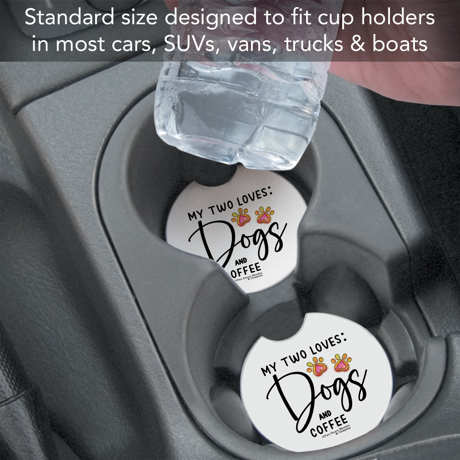 Dogs & Coffee Single Absorbent Stone Car Coaster 2.6” Diameter Manufactured in the USA