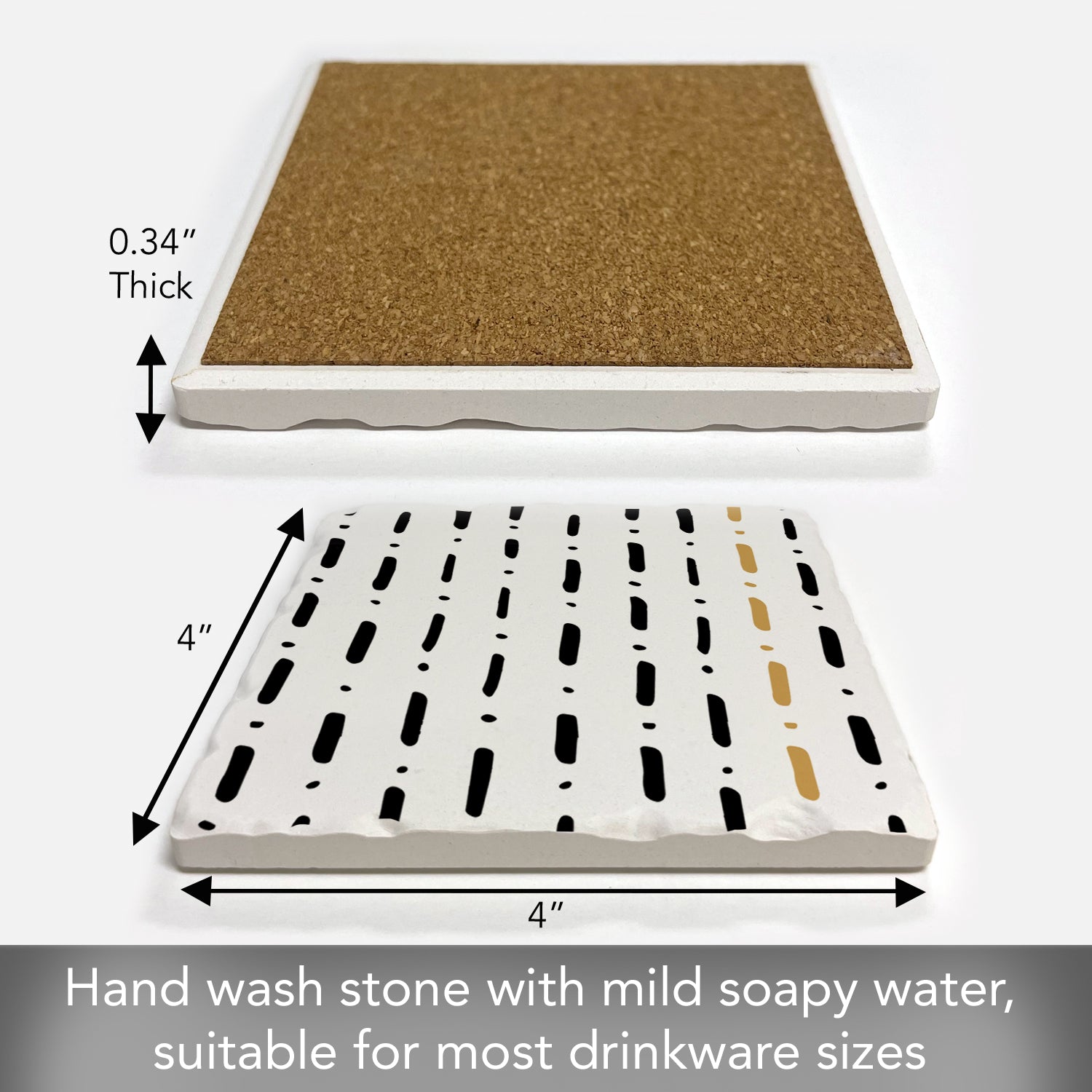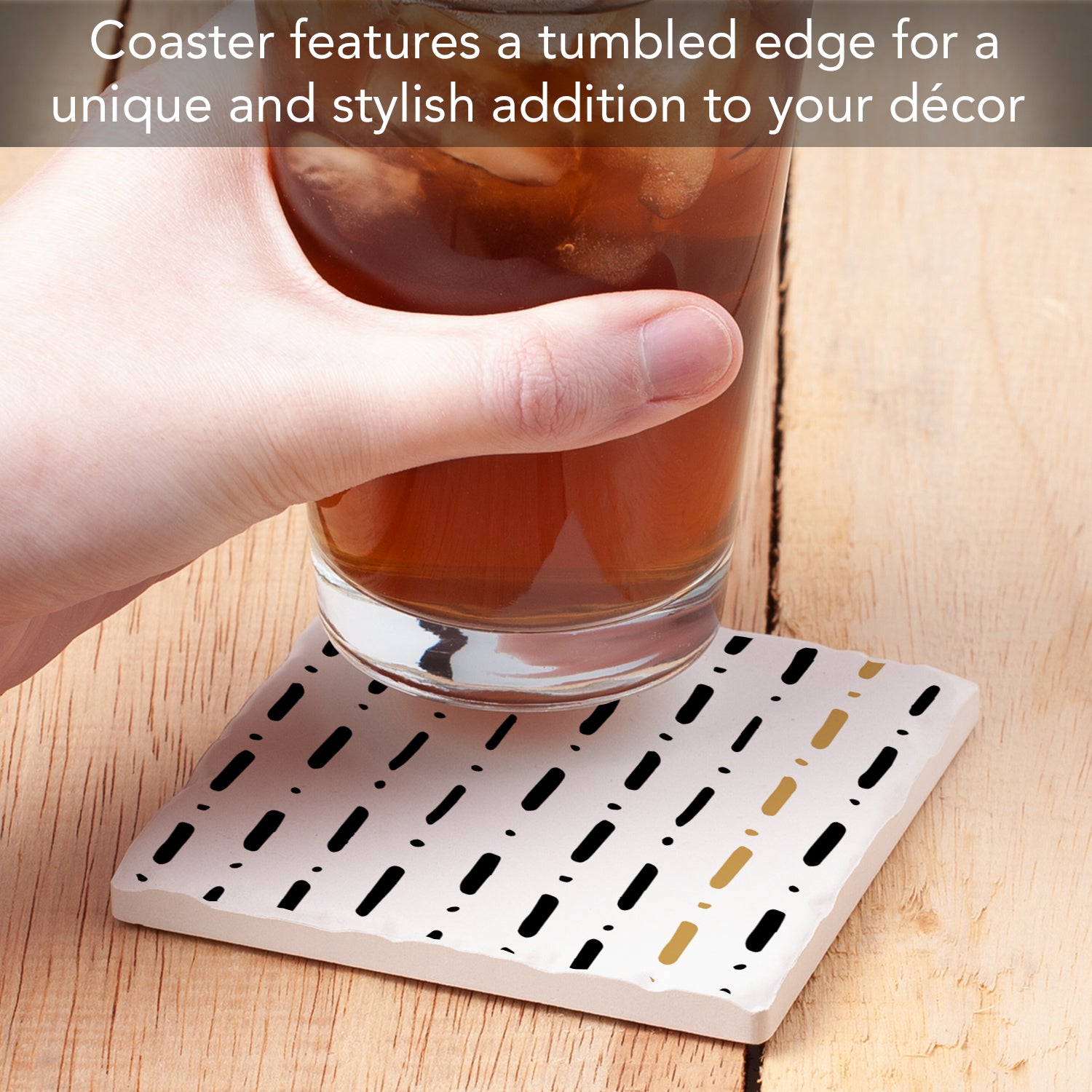 Thirstystone Dots & Lines Single Tumbled Tile Stone Coaster with Protective Cork Backing Manufactured in The USA 4" Square, Colorful, Artistic, Easily Wipes Clean