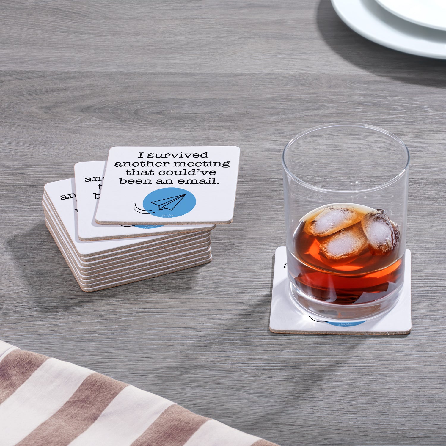 Thirstystone Email 12-Pack Cork Back Paper Bar Coasters Made in The USA Humourous Quotes Attractive Designs