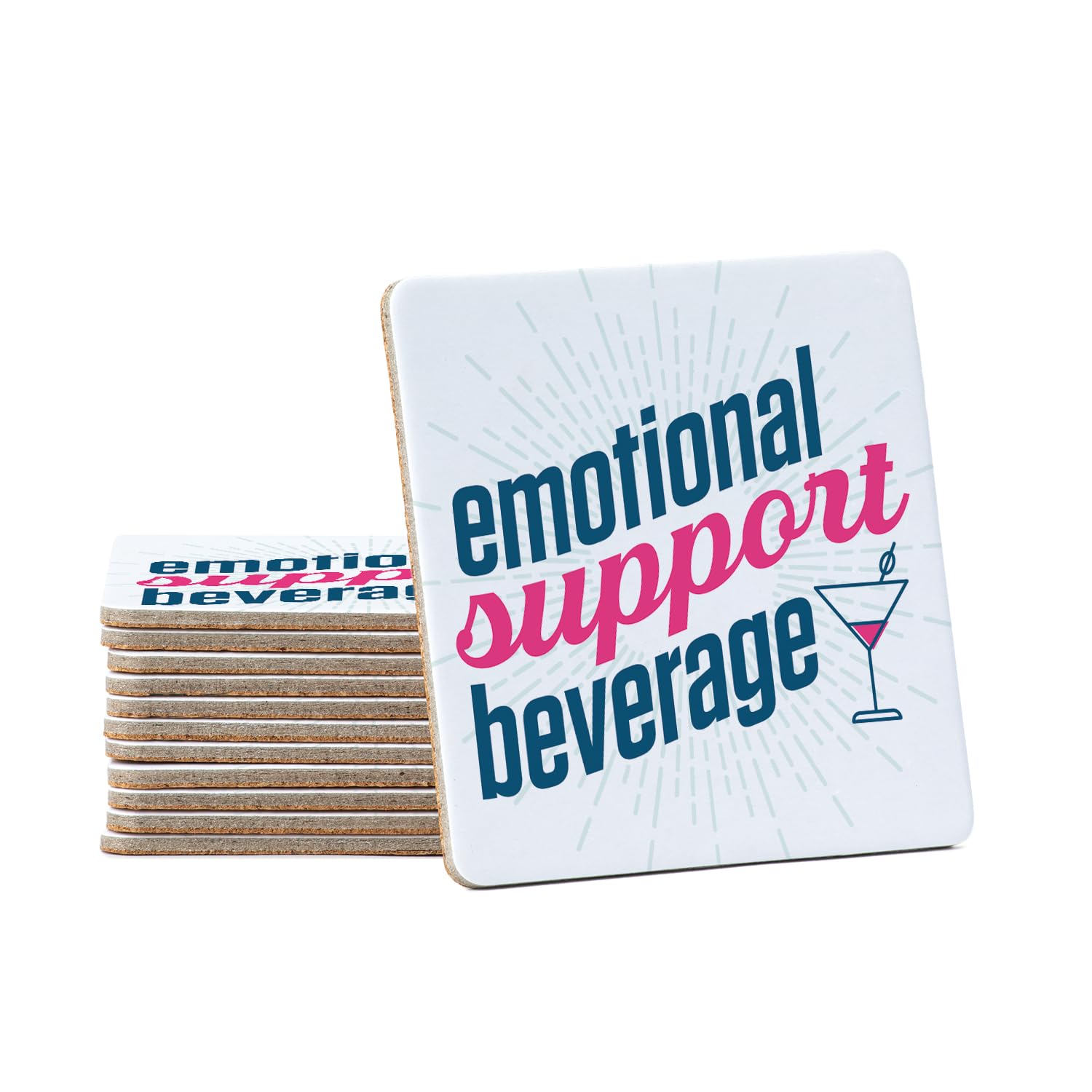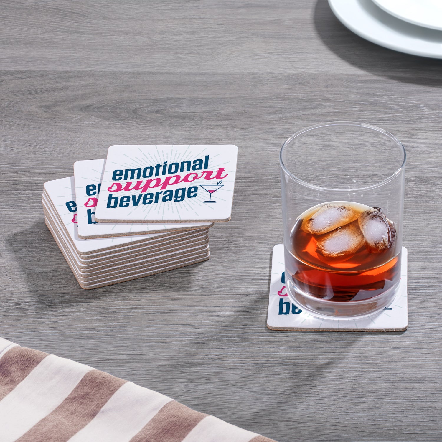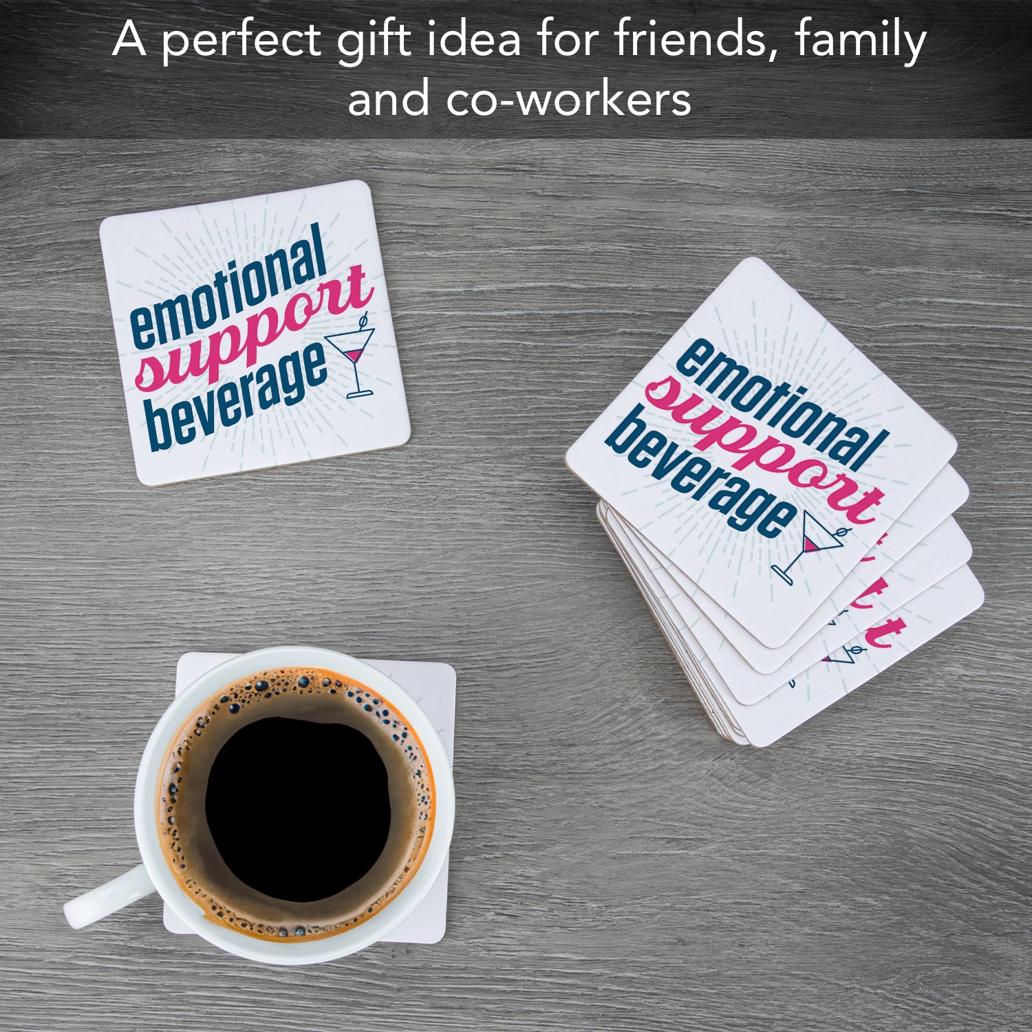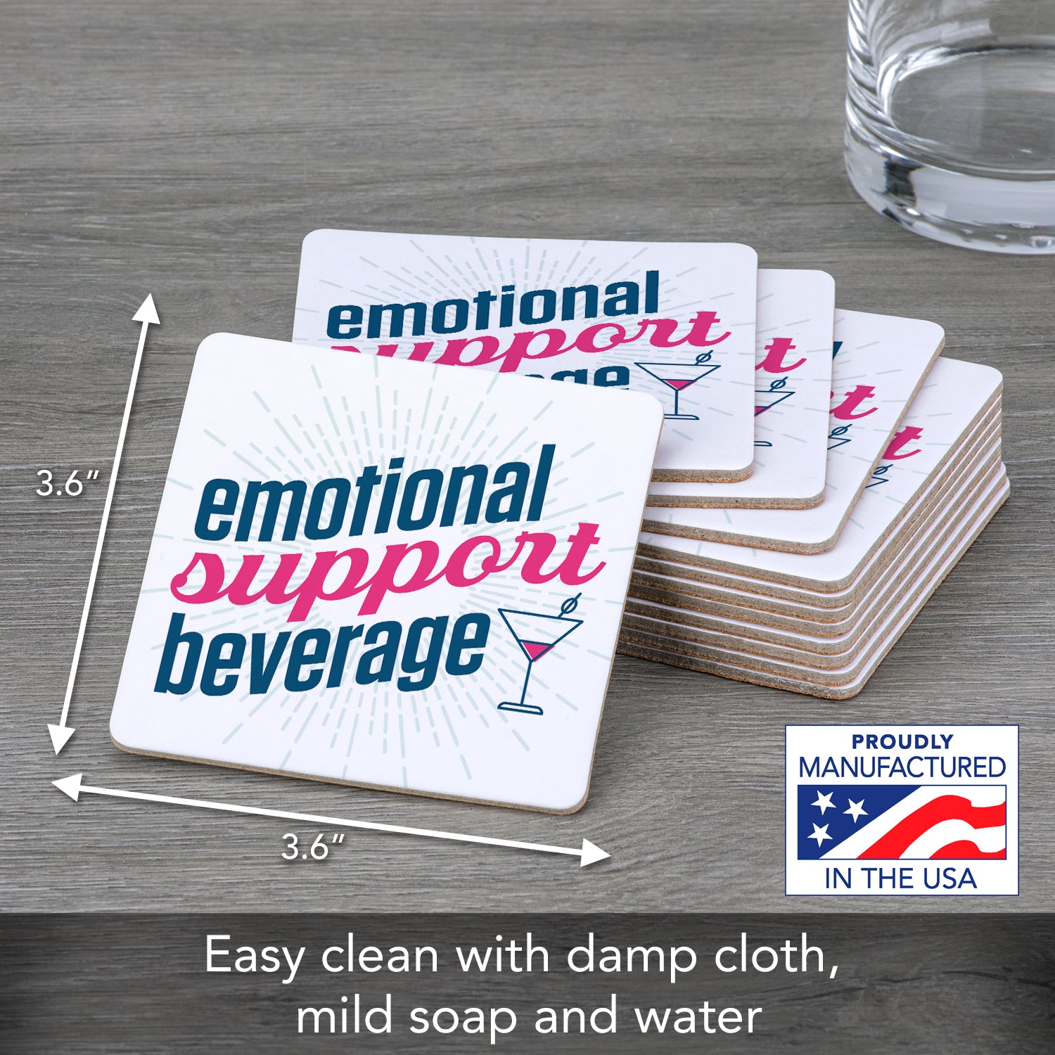 Thirstystone Emotional Support Beverage 12-Pack Cork Back Paper Bar Coasters Made in The USA Humourous Quotes Attractive Designs