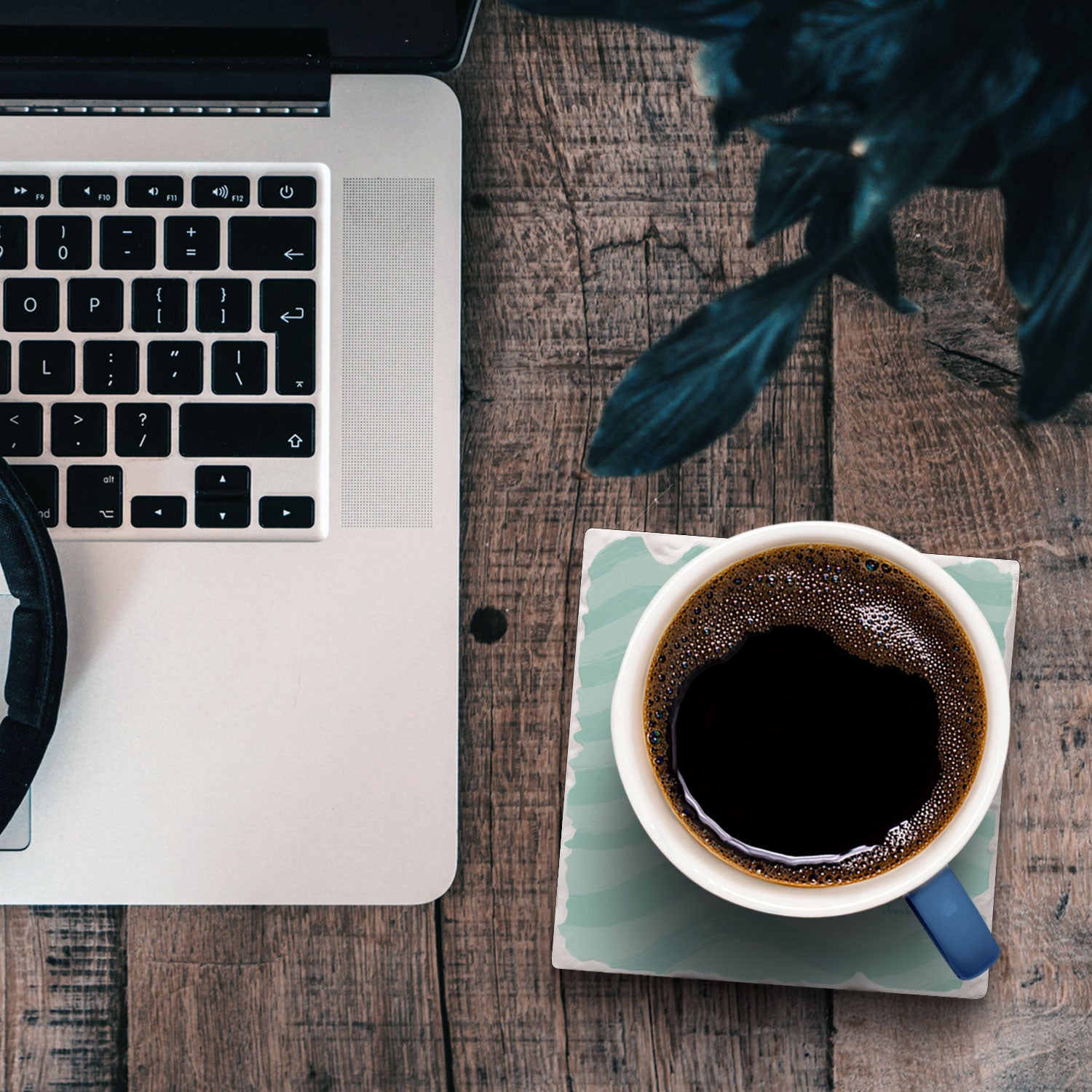 FUNCTIONAL ART-Beautiful artistic design allows the Coaster to remain displayed even when not in use. Each Coaster measures 4” x 4” x .25”. Sized to fit larger Mugs & Glasses.
