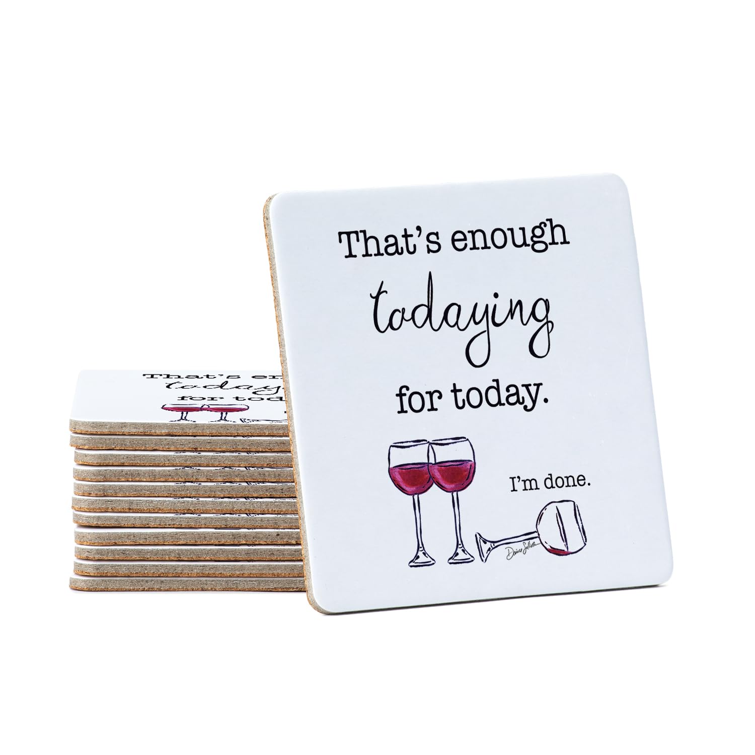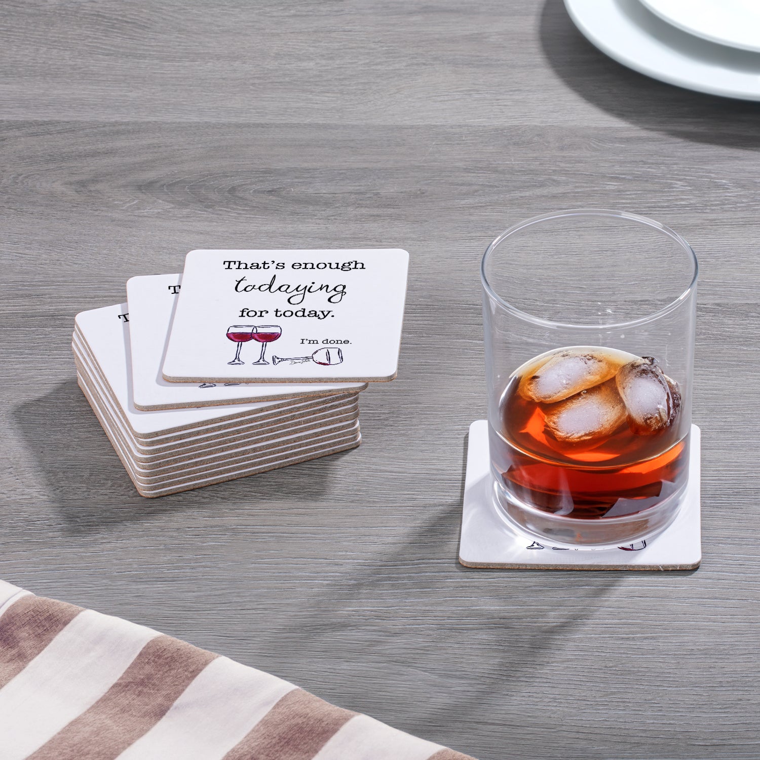 Thirstystone Enough for Today 12-Pack Cork Back Paper Bar Coasters Made in The USA Humourous Quotes Attractive Designs
