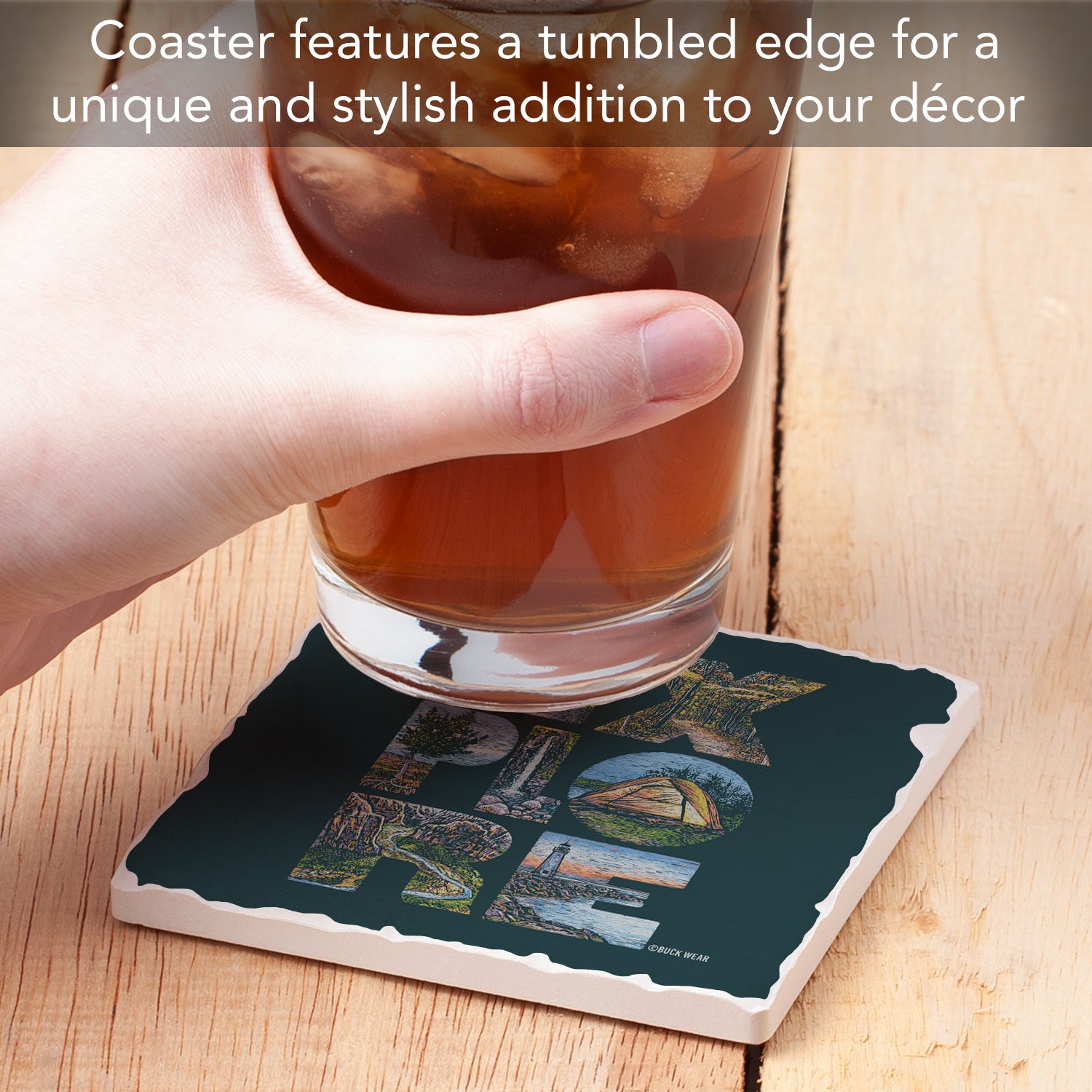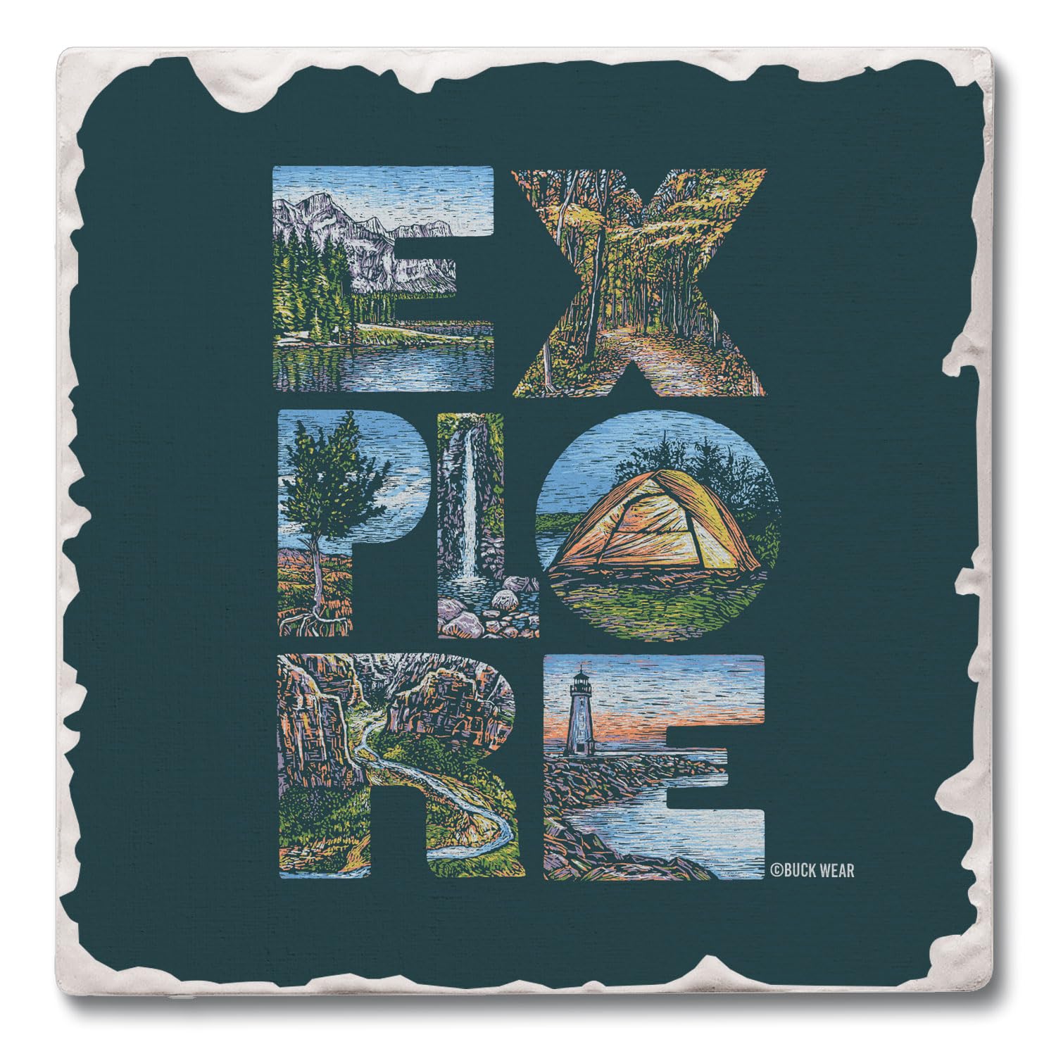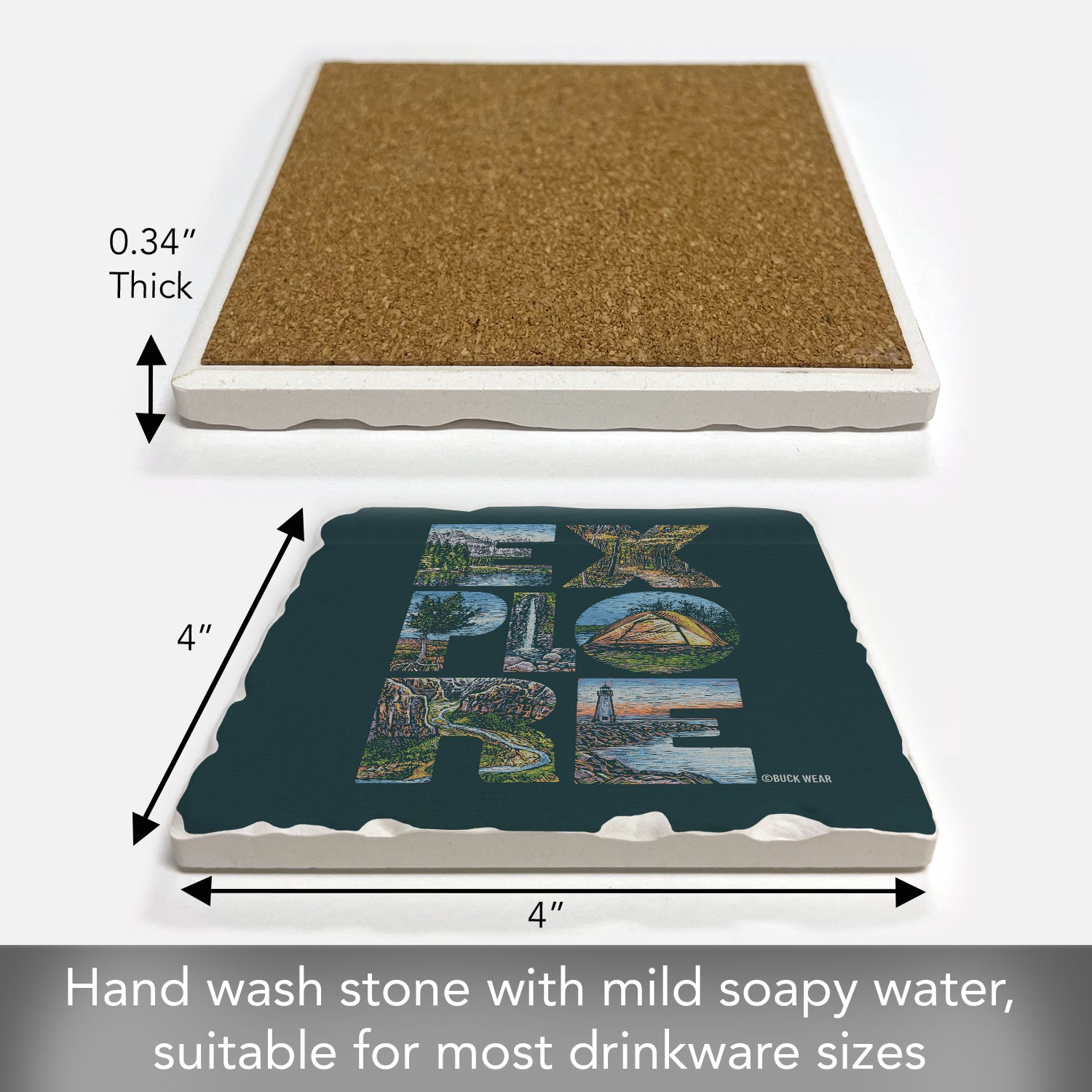 Thirstystone Explore Single Tumbled Tile Stone Coaster with Protective Cork Backing Manufactured in The USA 4" Square
