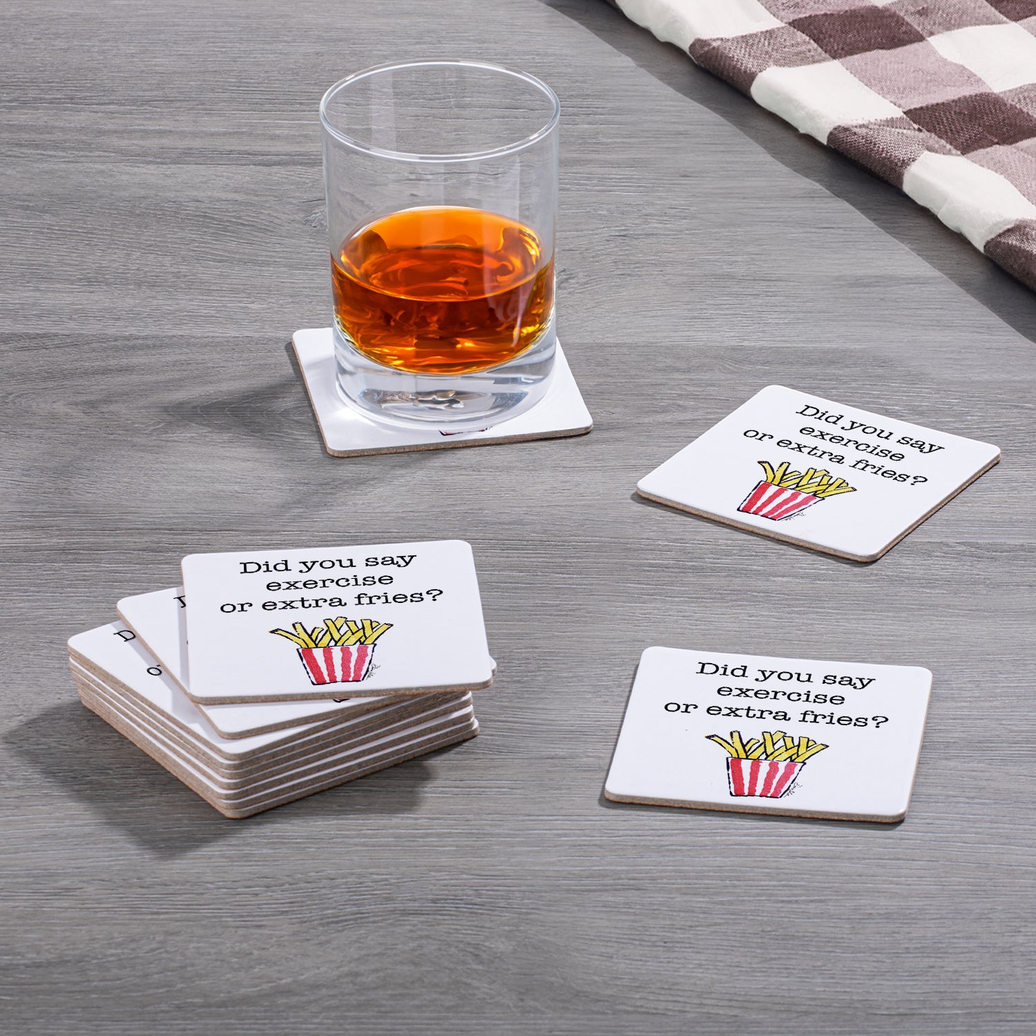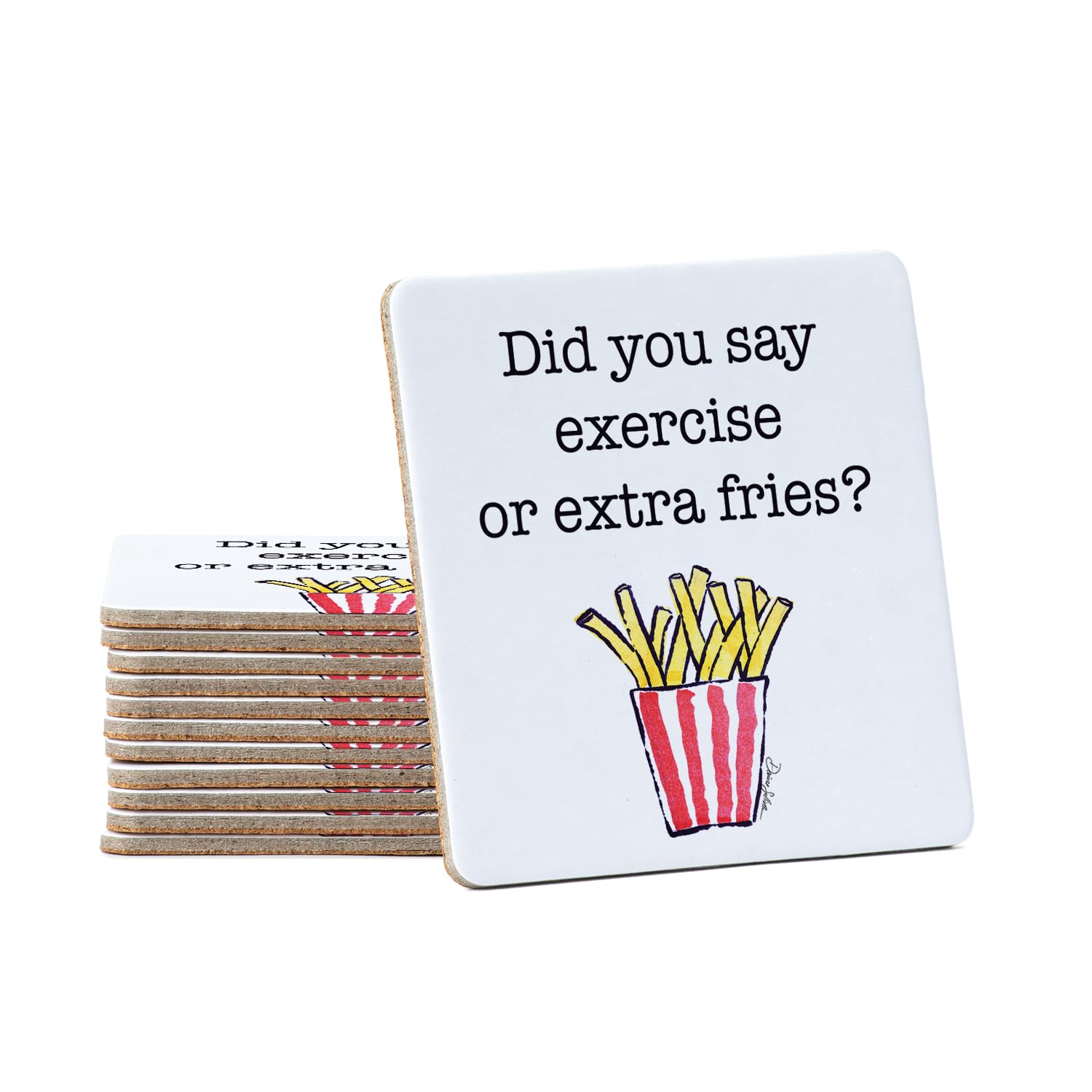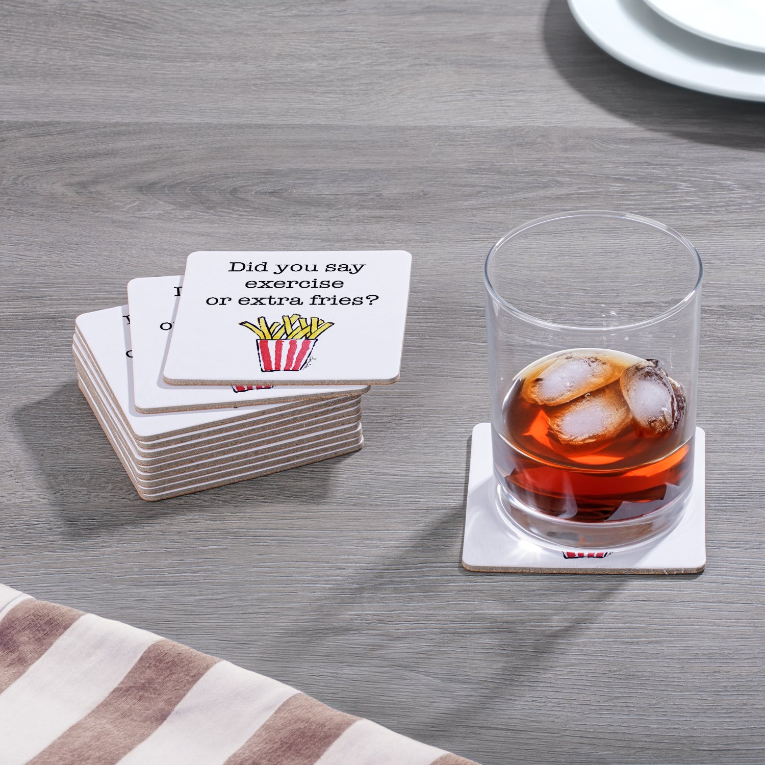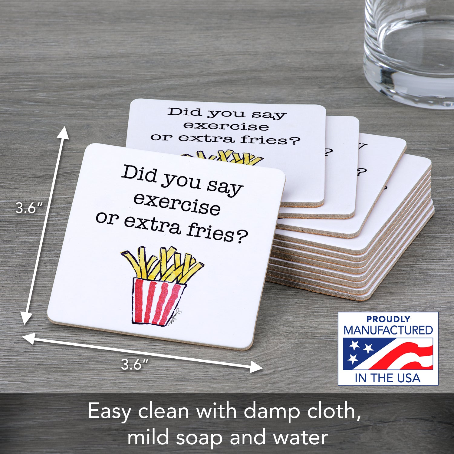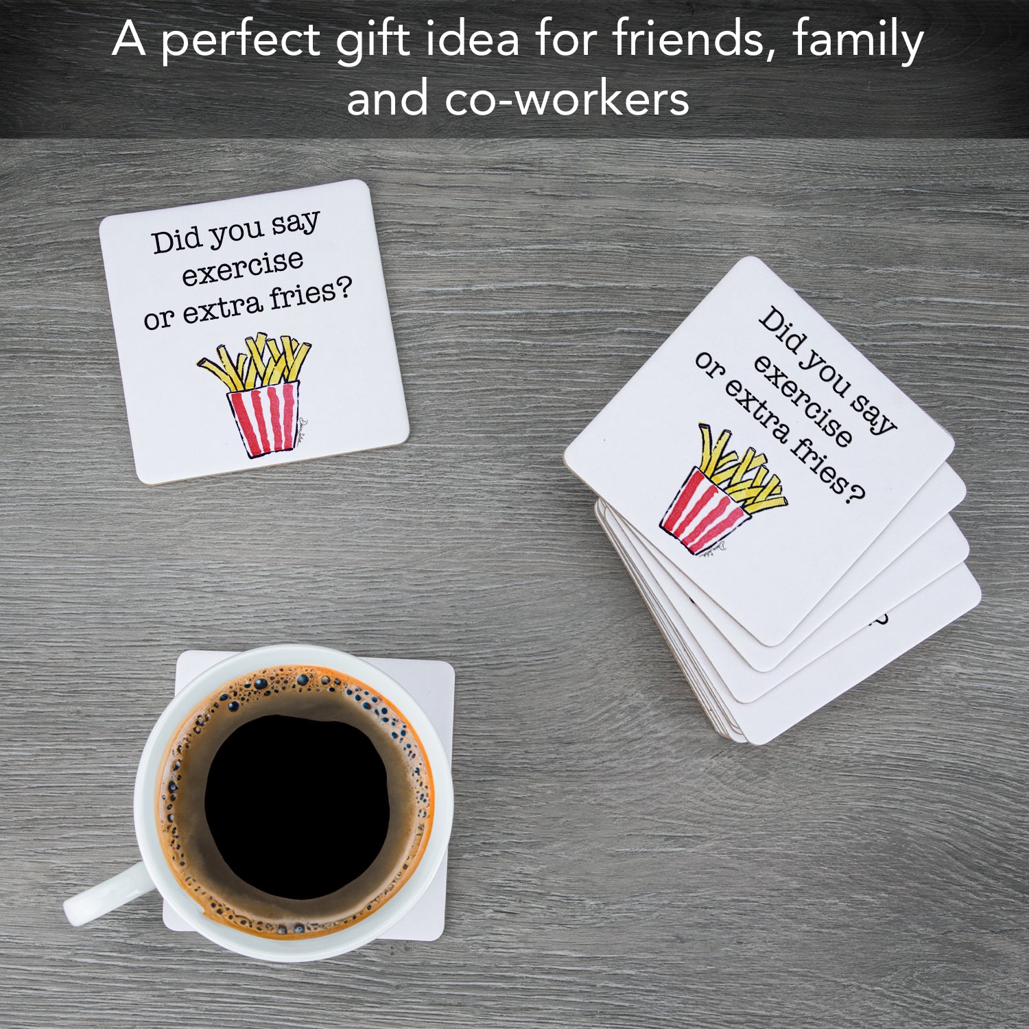 Thirstystone Extra Fries 12-Pack Cork Back Paper Bar Coasters Made in The USA Humourous Quotes Attractive Designs