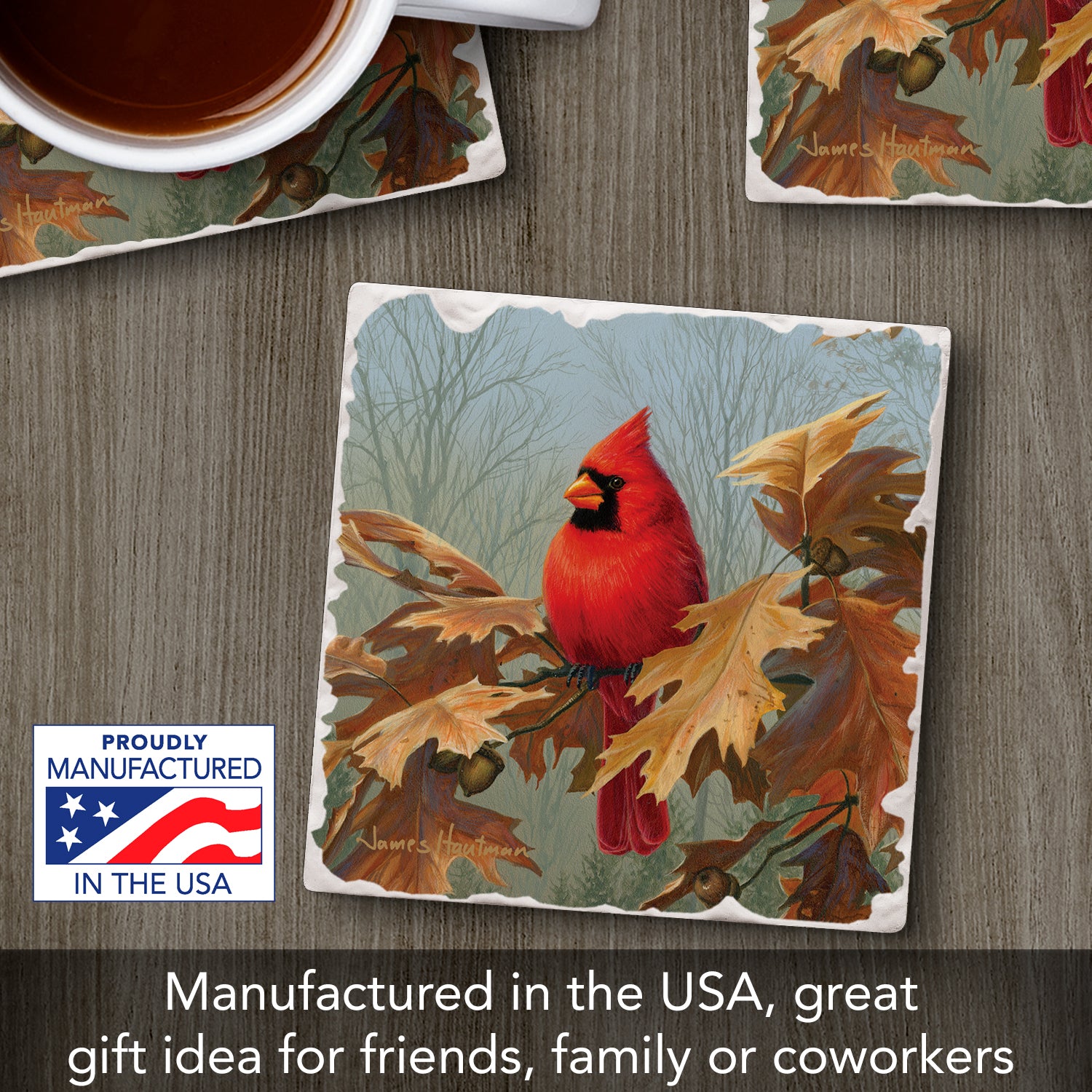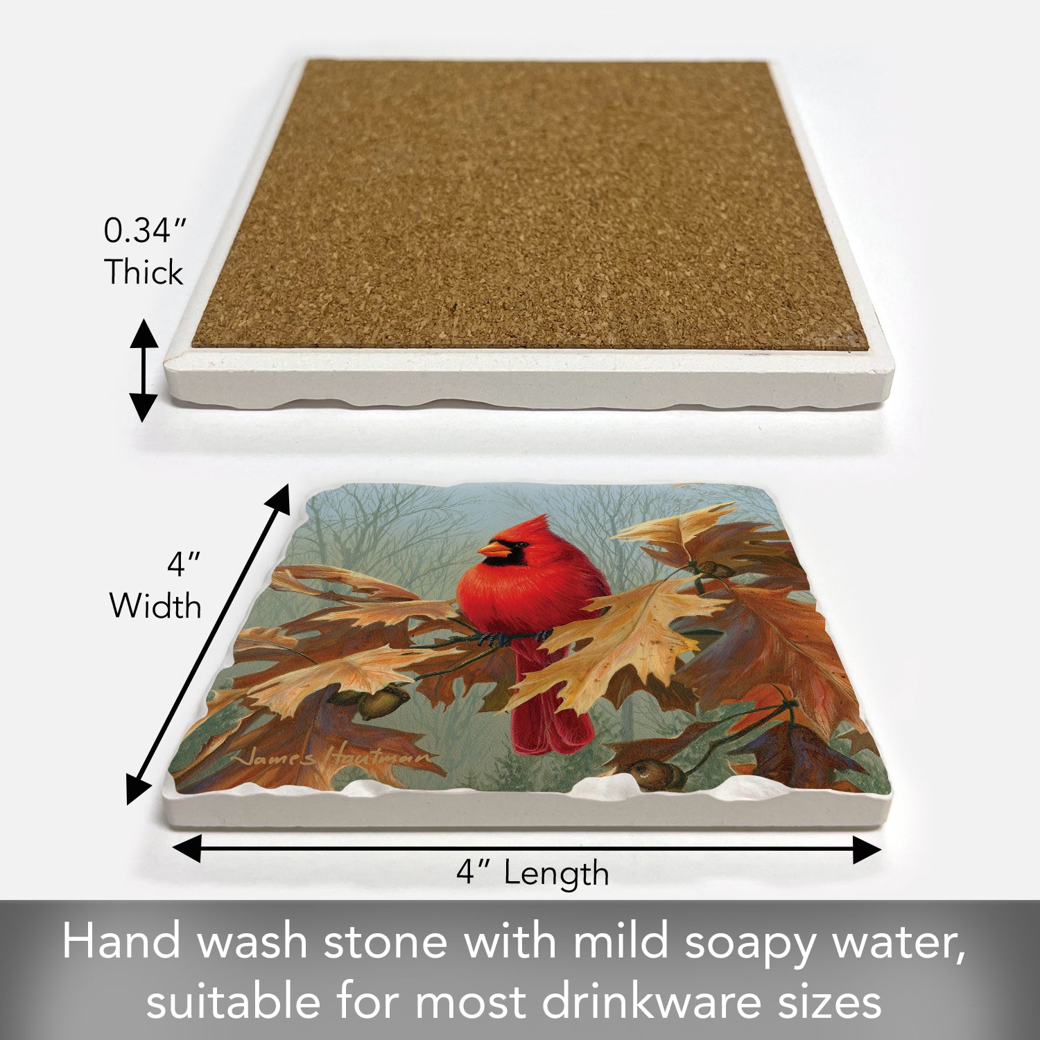 Thirstystone Fall Cardinal Single Tumbled Tile Stone Coaster with Protective Cork Backing Manufactured in The USA 4" Square, Artistic, Easily Wipes Clean