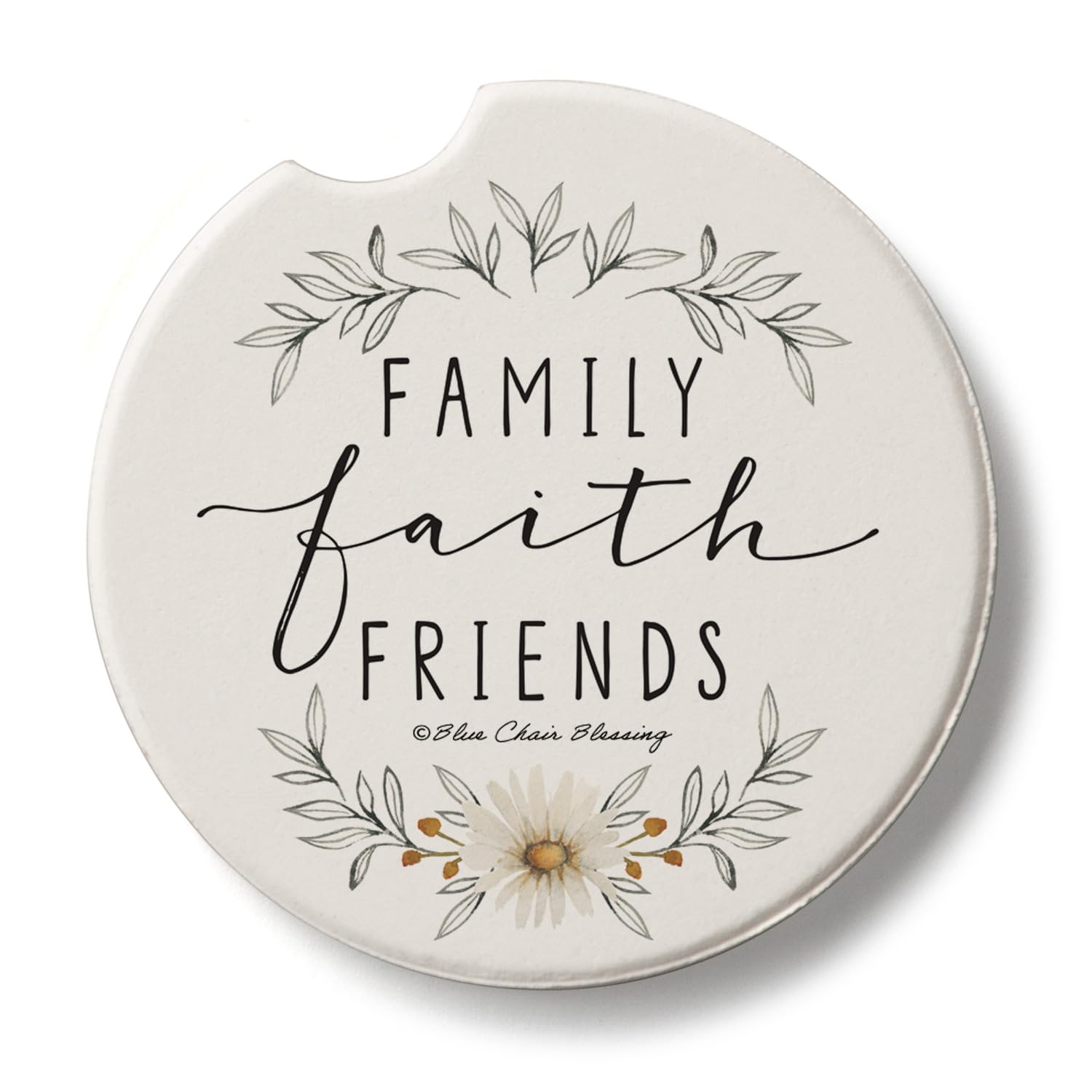 Thirstystone Family Faith Friends Single Absorbent Stone Car Coaster 2.6” Diameter Manufactured in the USA