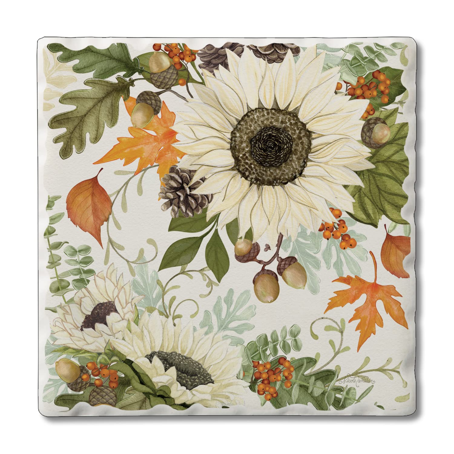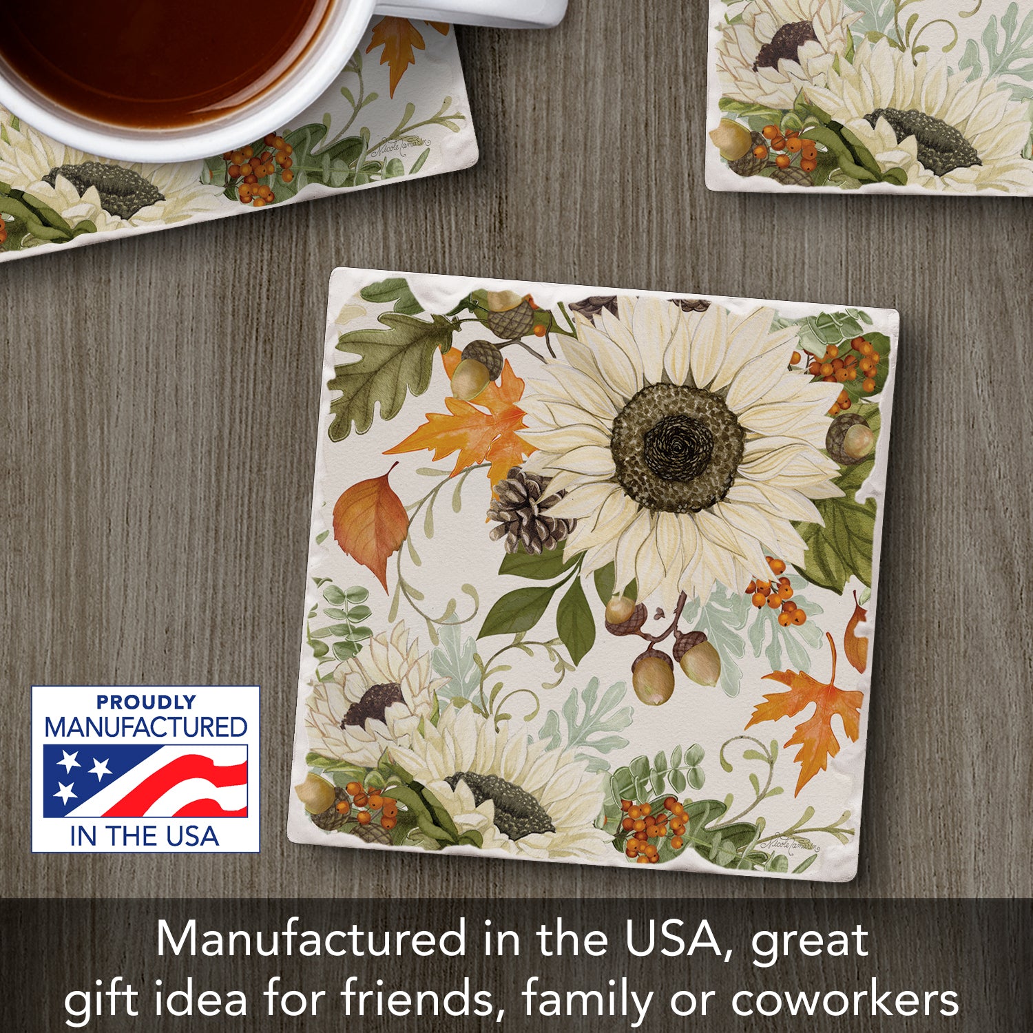 Thirstystone Farmhouse Sunflowers Single Tumbled Tile Stone Coaster with Protective Cork Backing Manufactured in The USA 4" Square, Colorful, Artistiic, Easily Wipes Clean