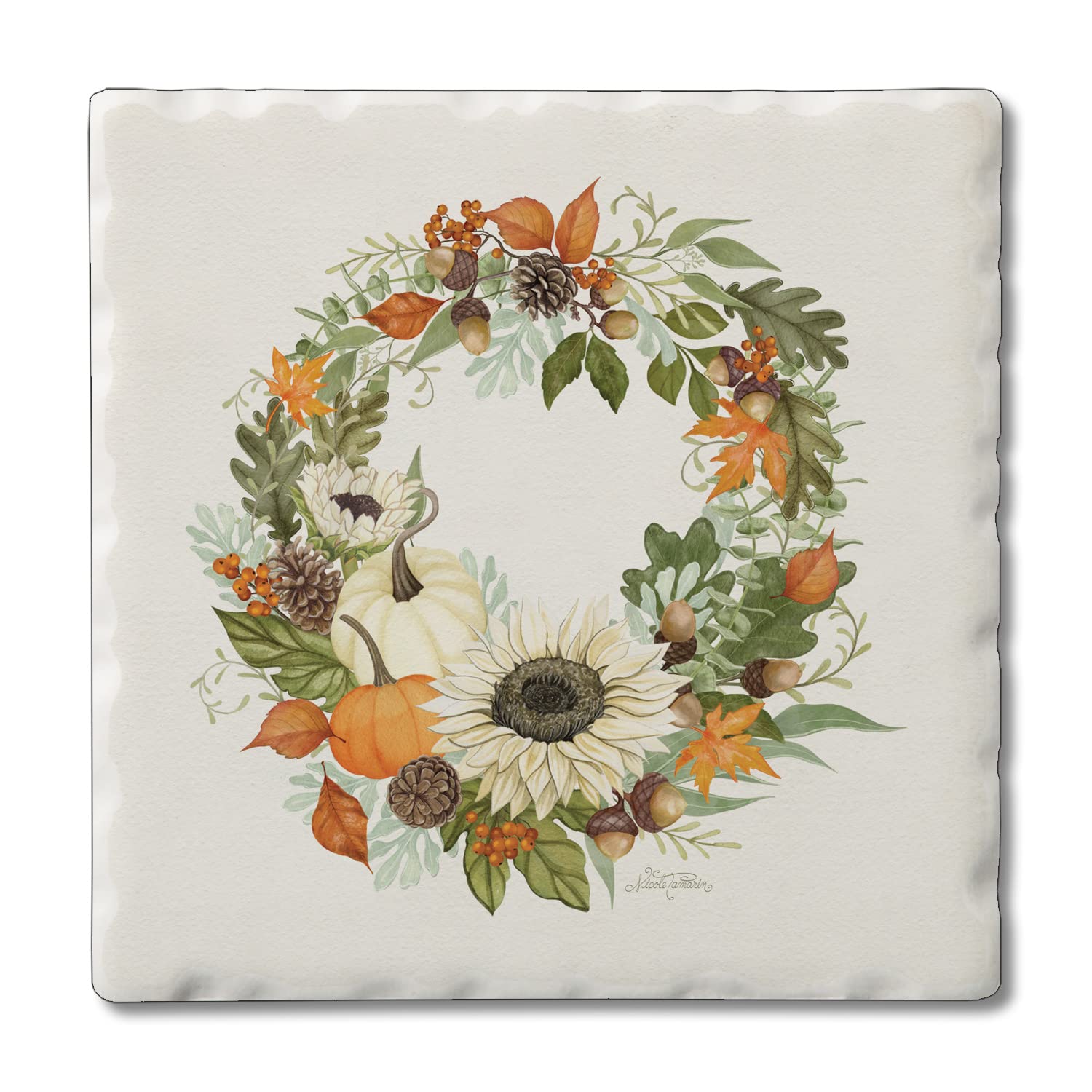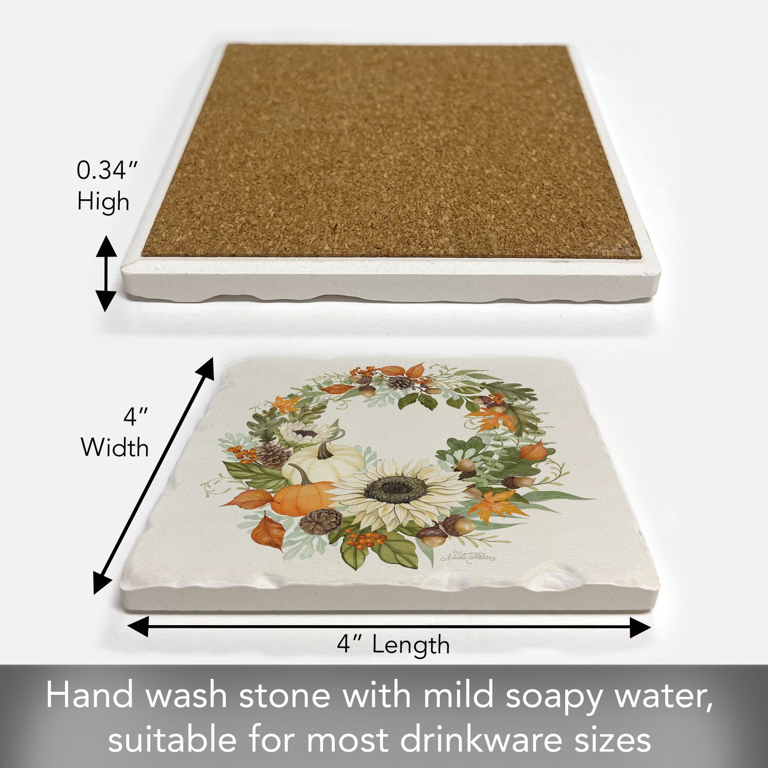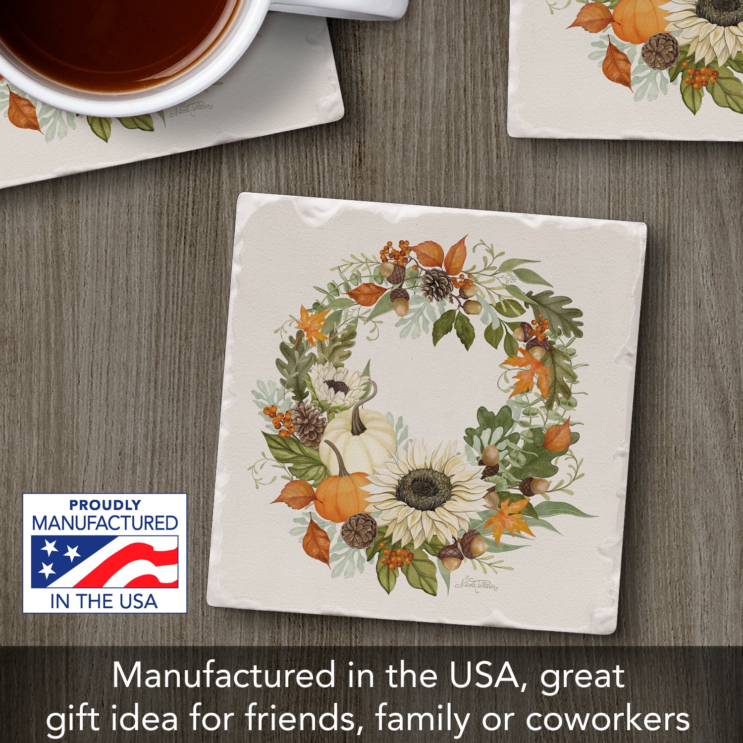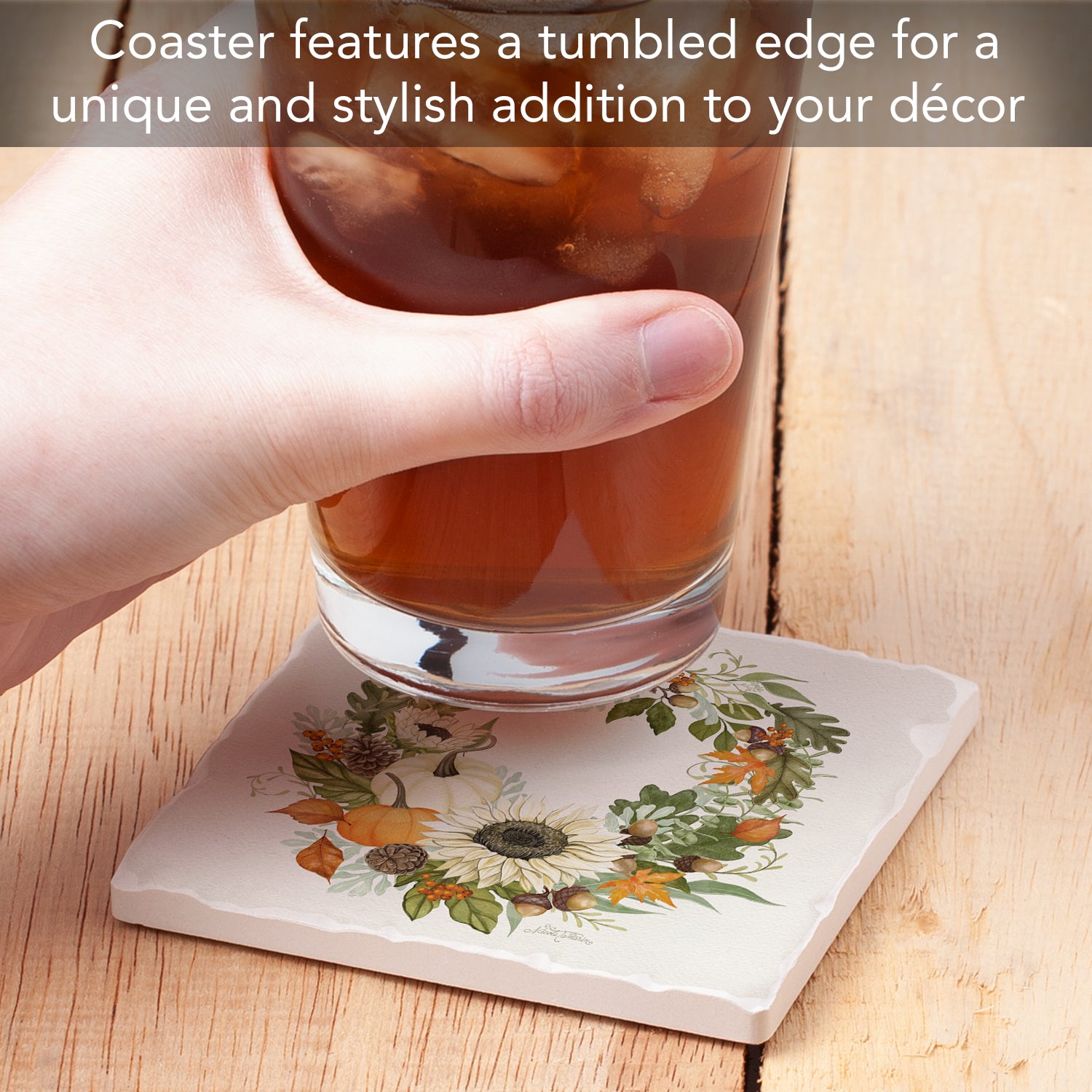 Thirstystone Farmhouse Wreath Single Tumbled Tile Stone Coaster with Protective Cork Backing Manufactured in The USA 4" Square, Colorful, Artistiic, Easily Wipes Clean