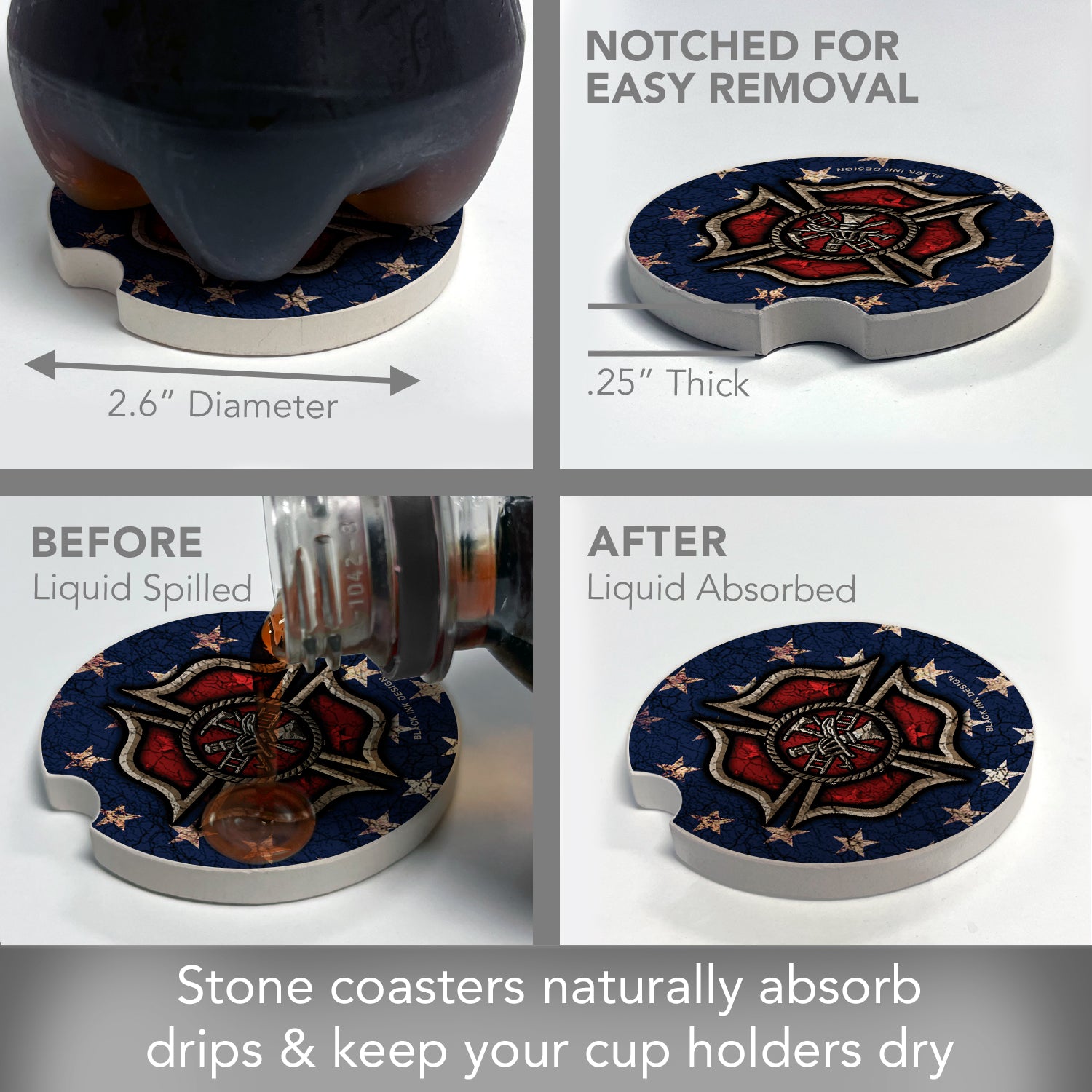 Thirstystone Firefighter Single Absorbent Stone Car Coaster 2.6” Diameter Manufactured in the USA