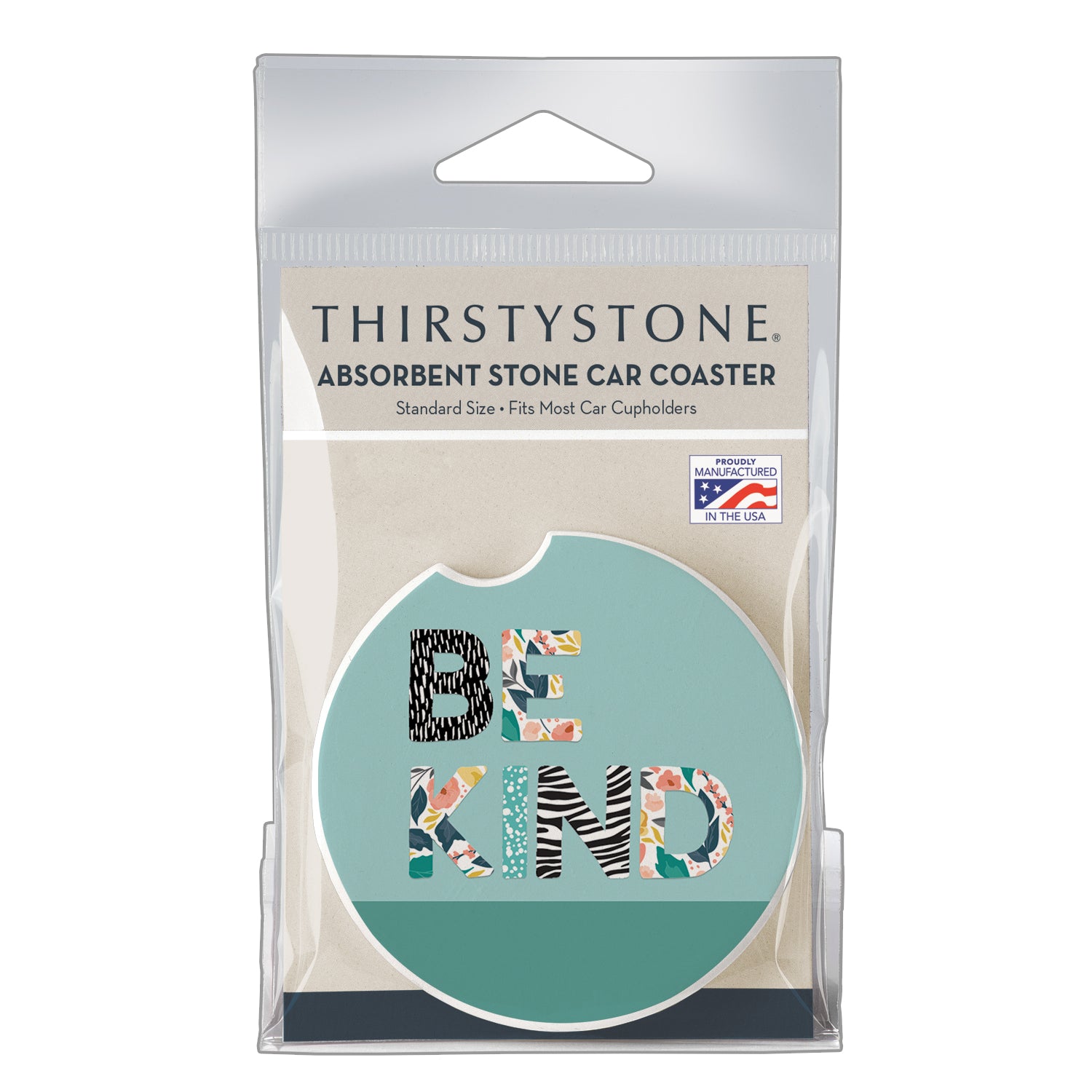 Thirstystone Floral Be Kind Single Absorbent Stone Car Coaster 2.6” Diameter Manufactured in the USA