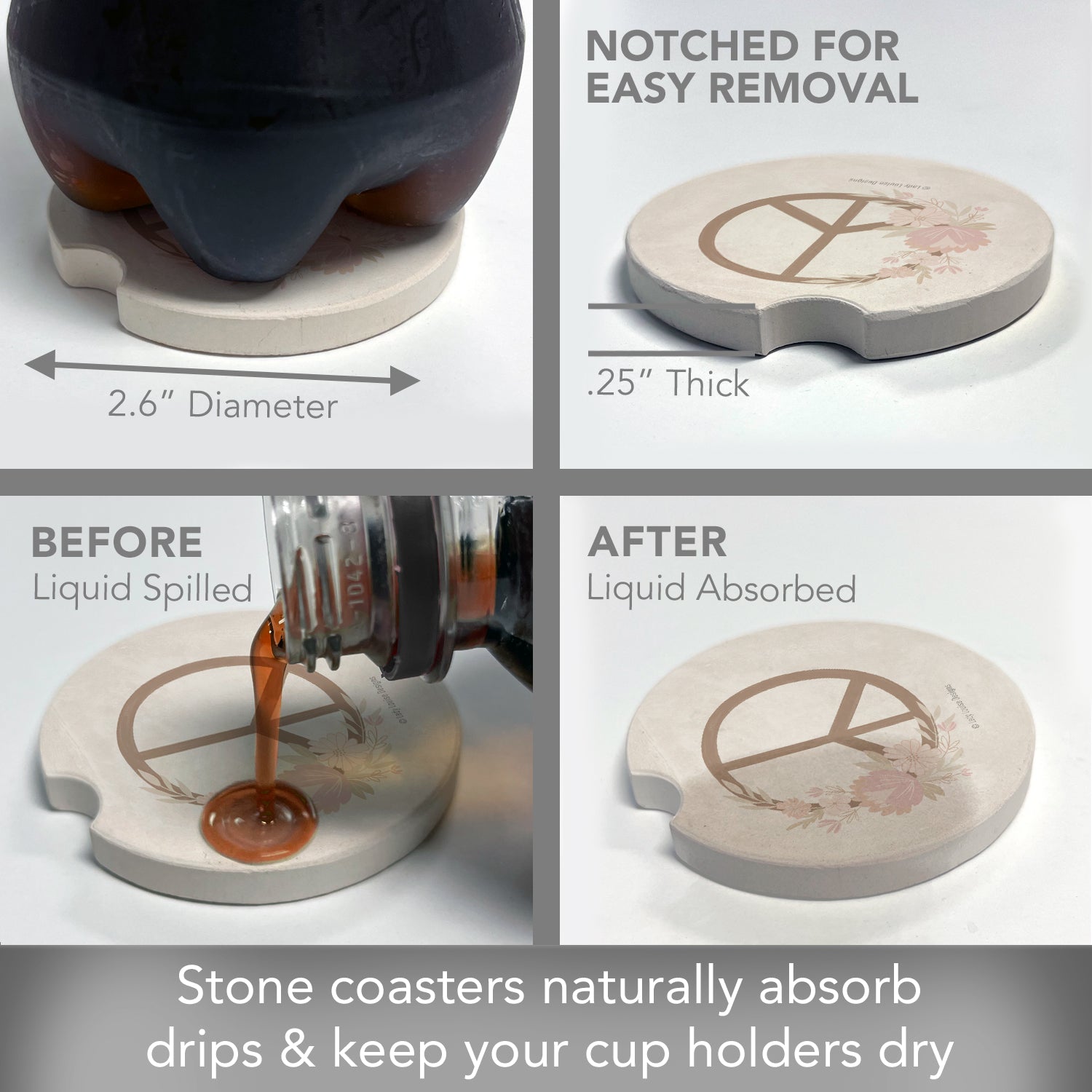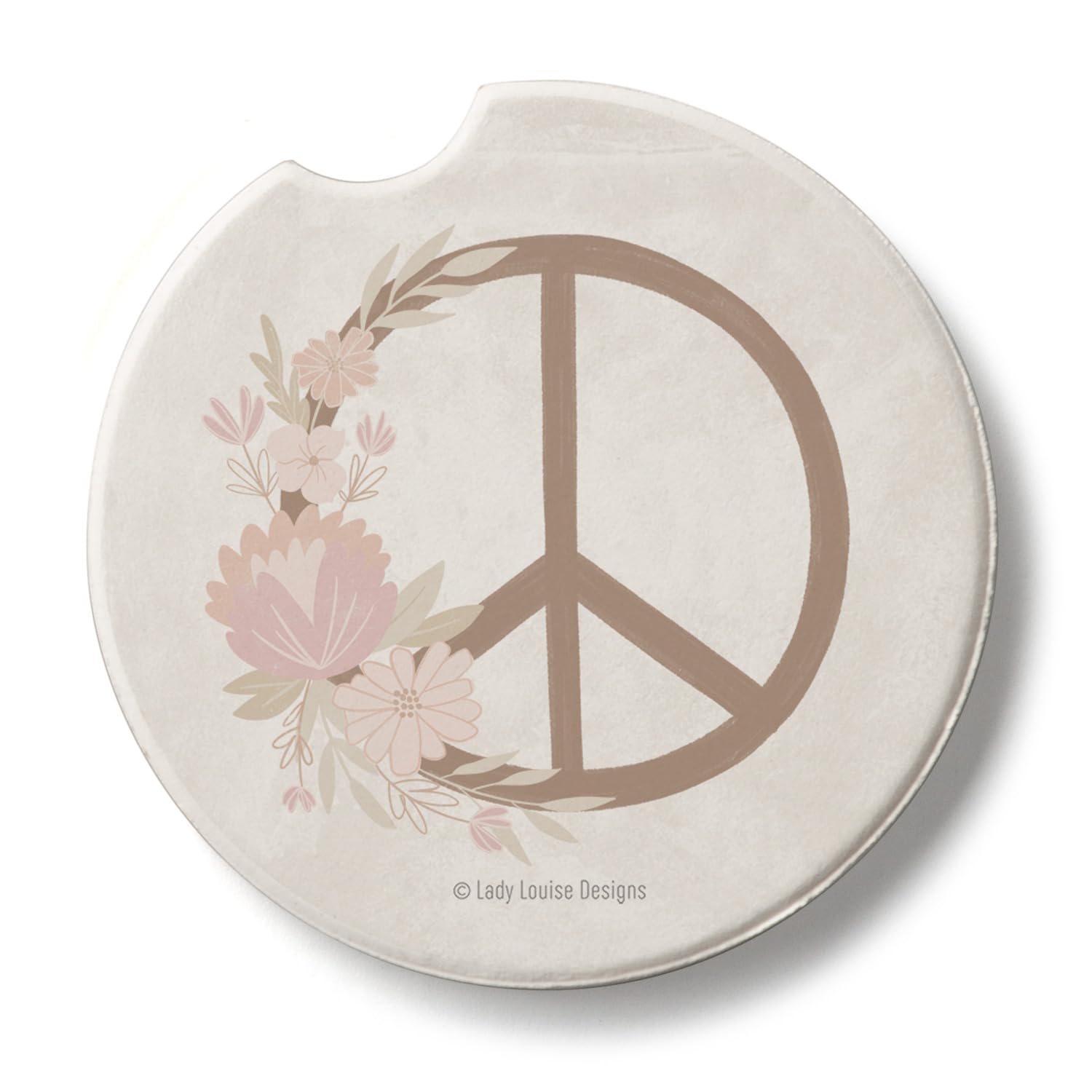 Thirstystone Floral Peace Single Absorbent Stone Car Coaster 2.6” Diameter Manufactured in the USA