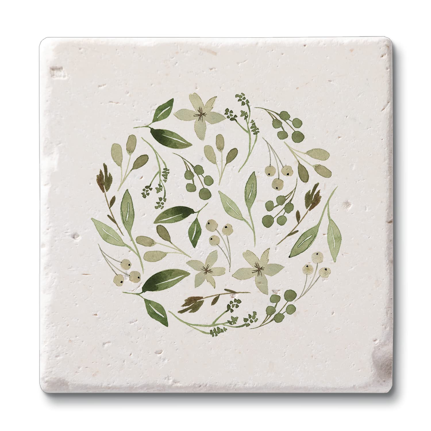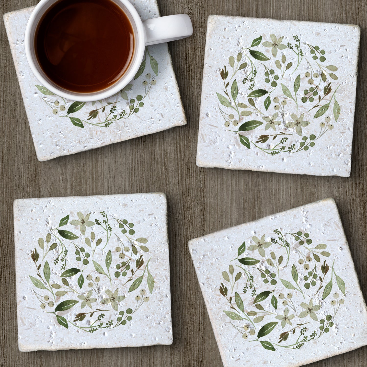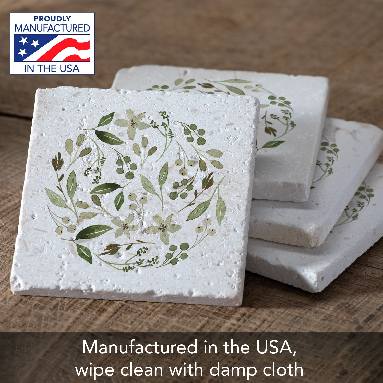 Thirstystone Floral Tumble 4 Pack Natural Shell Stone Absorbent Coasters Manufactured in the USA