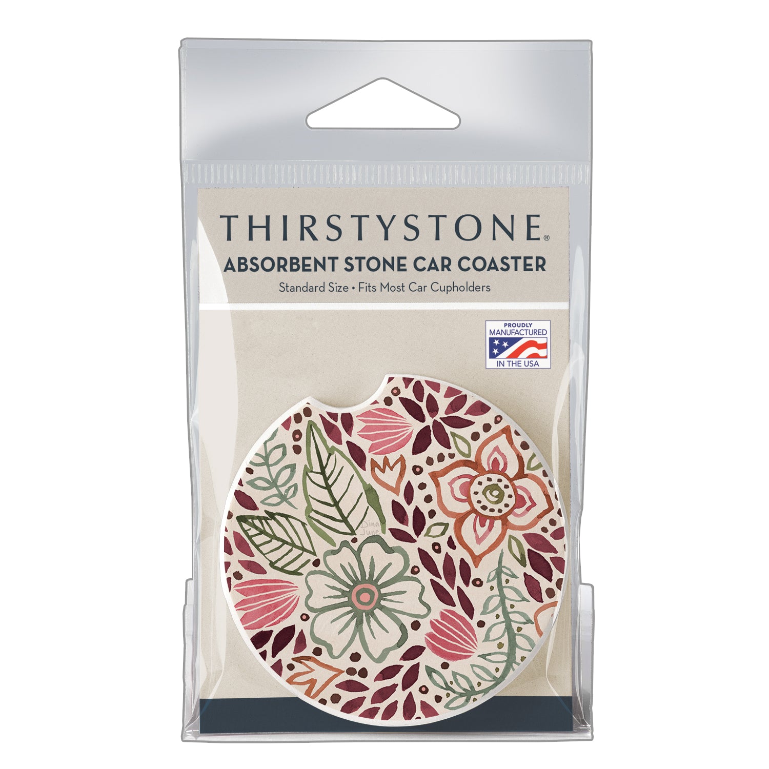 Thirstystone Floralscape Single Absorbent Stone Coaster for Vehicle Cup Holder 2.6” Diameter Manufactured in The USA