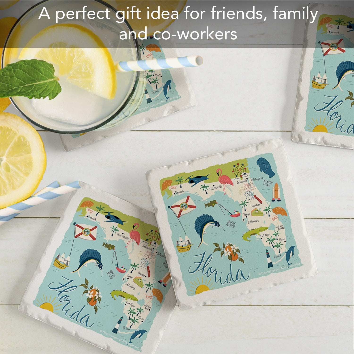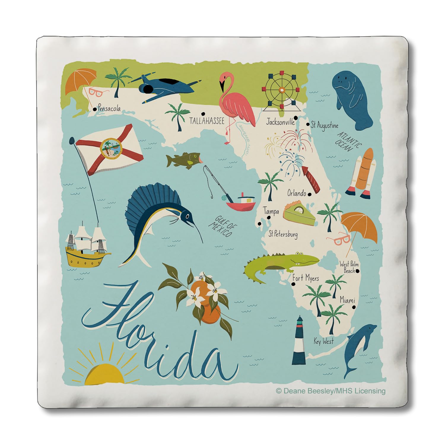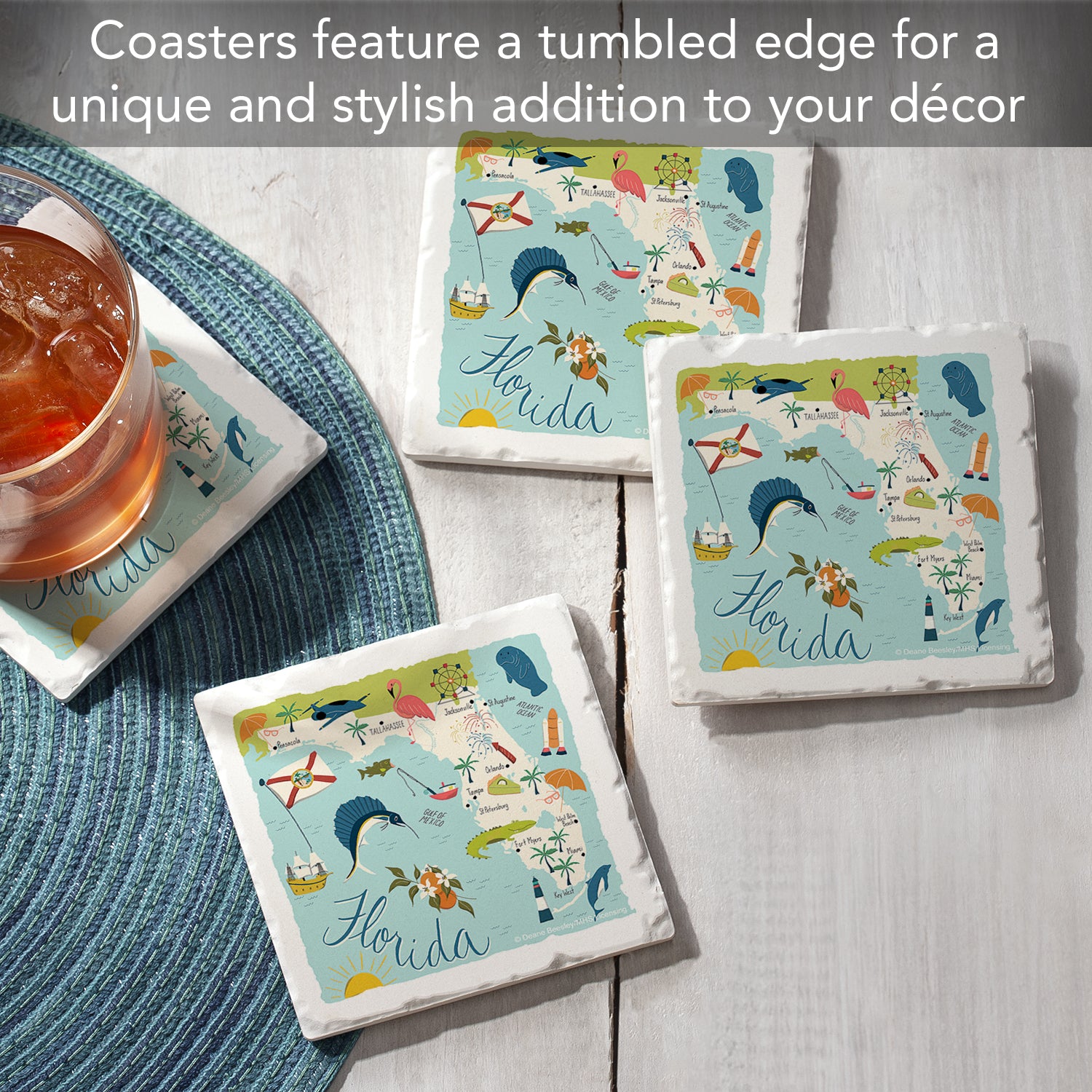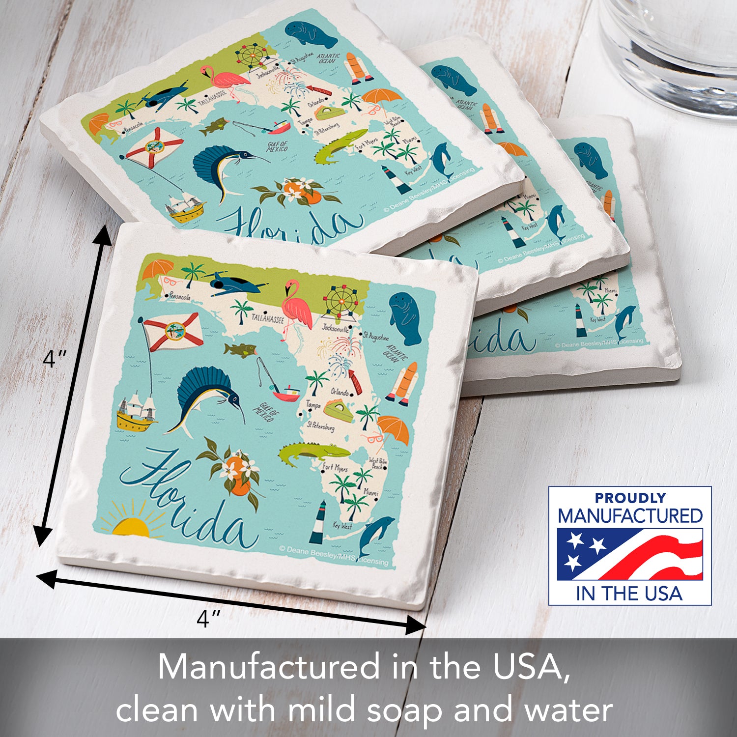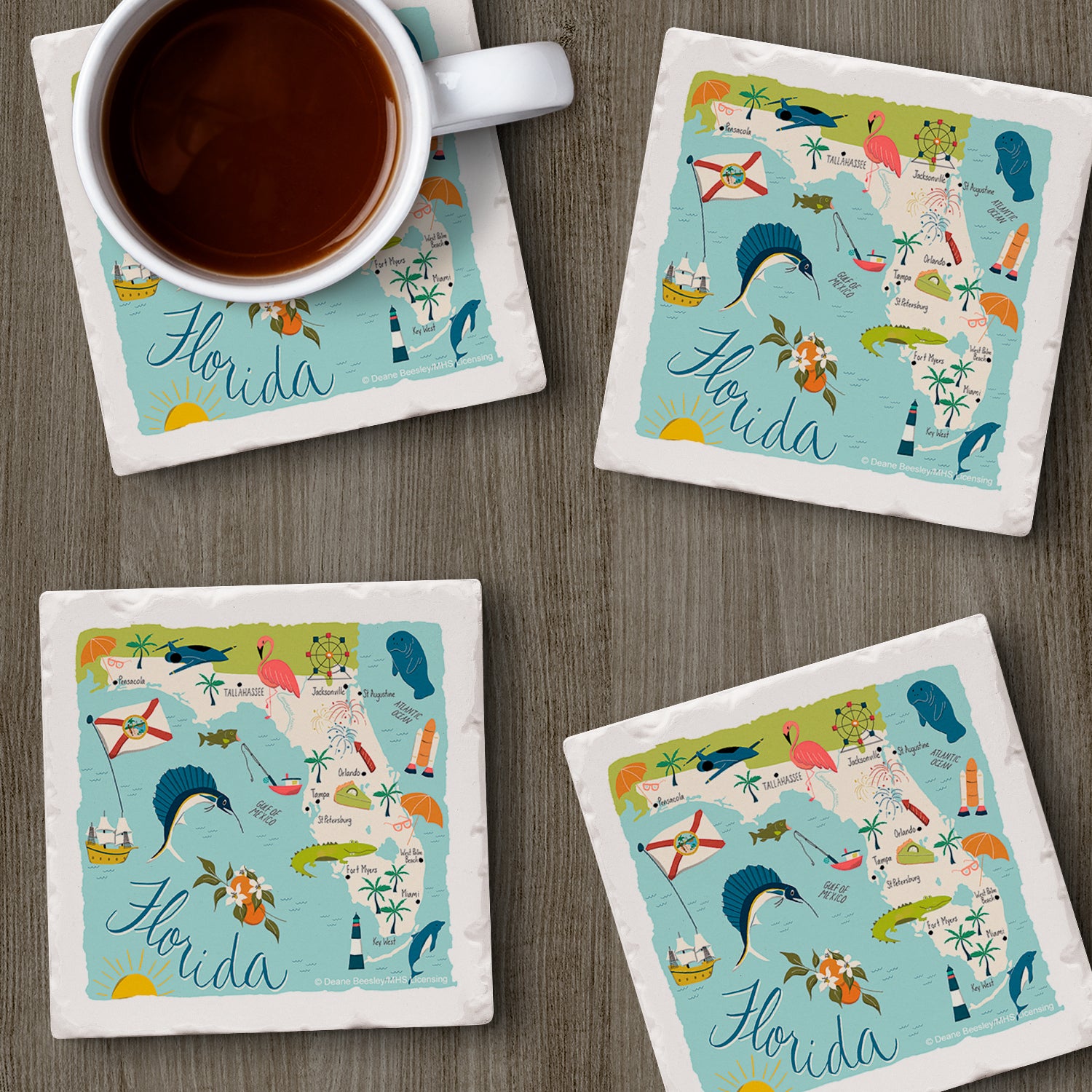 Thirstystone Florida Home State 4 Pack Tumbled Tile Stone Coasters 4" Square Manufactured in the USA