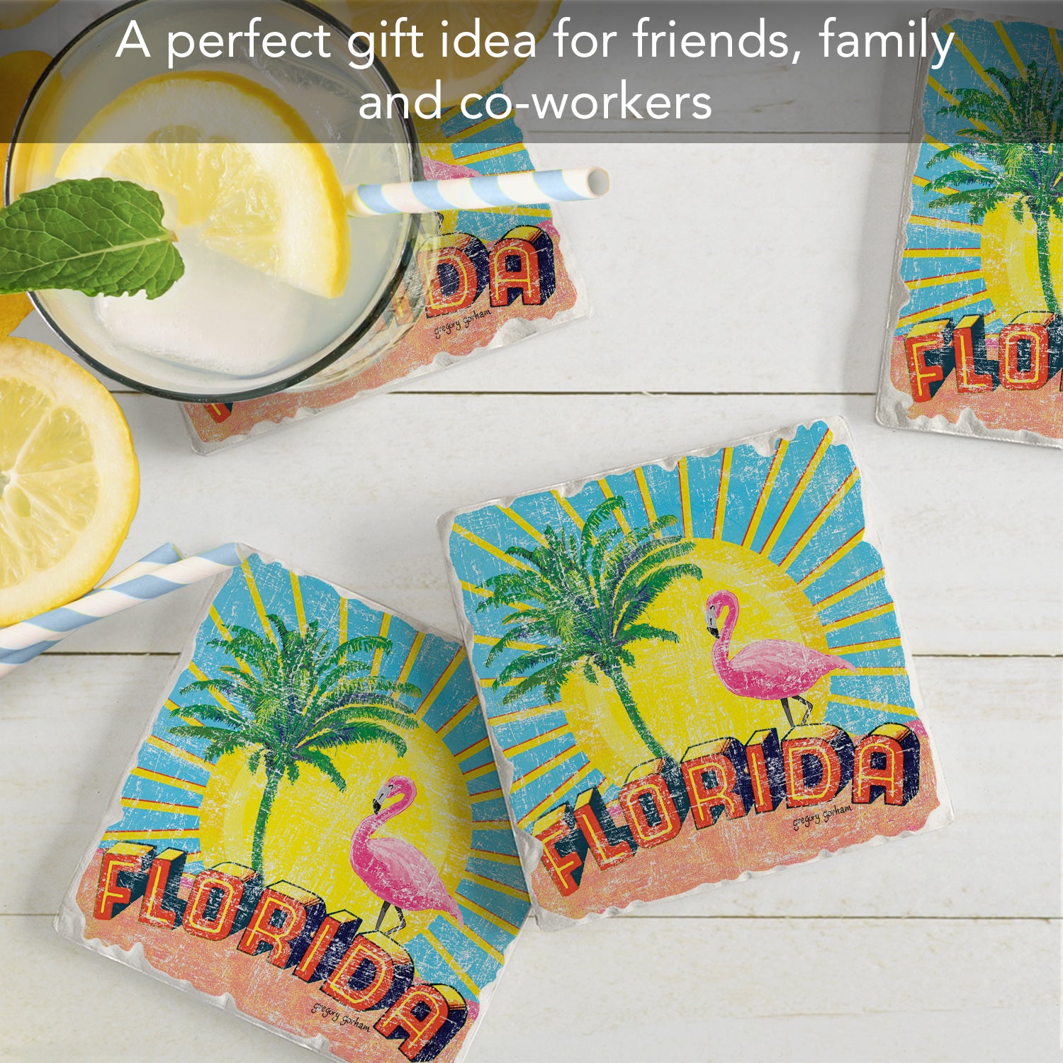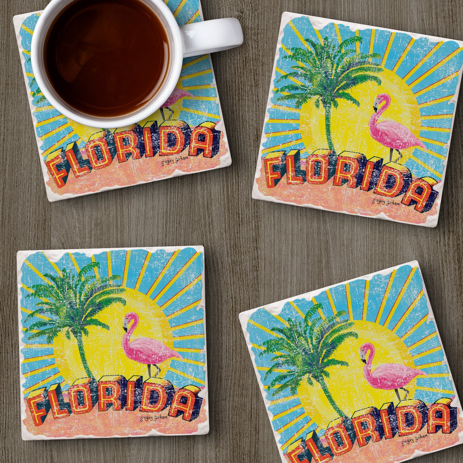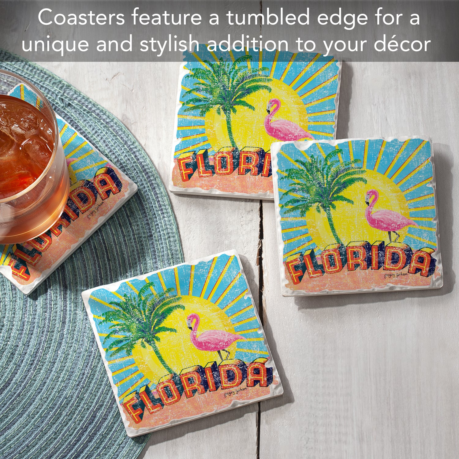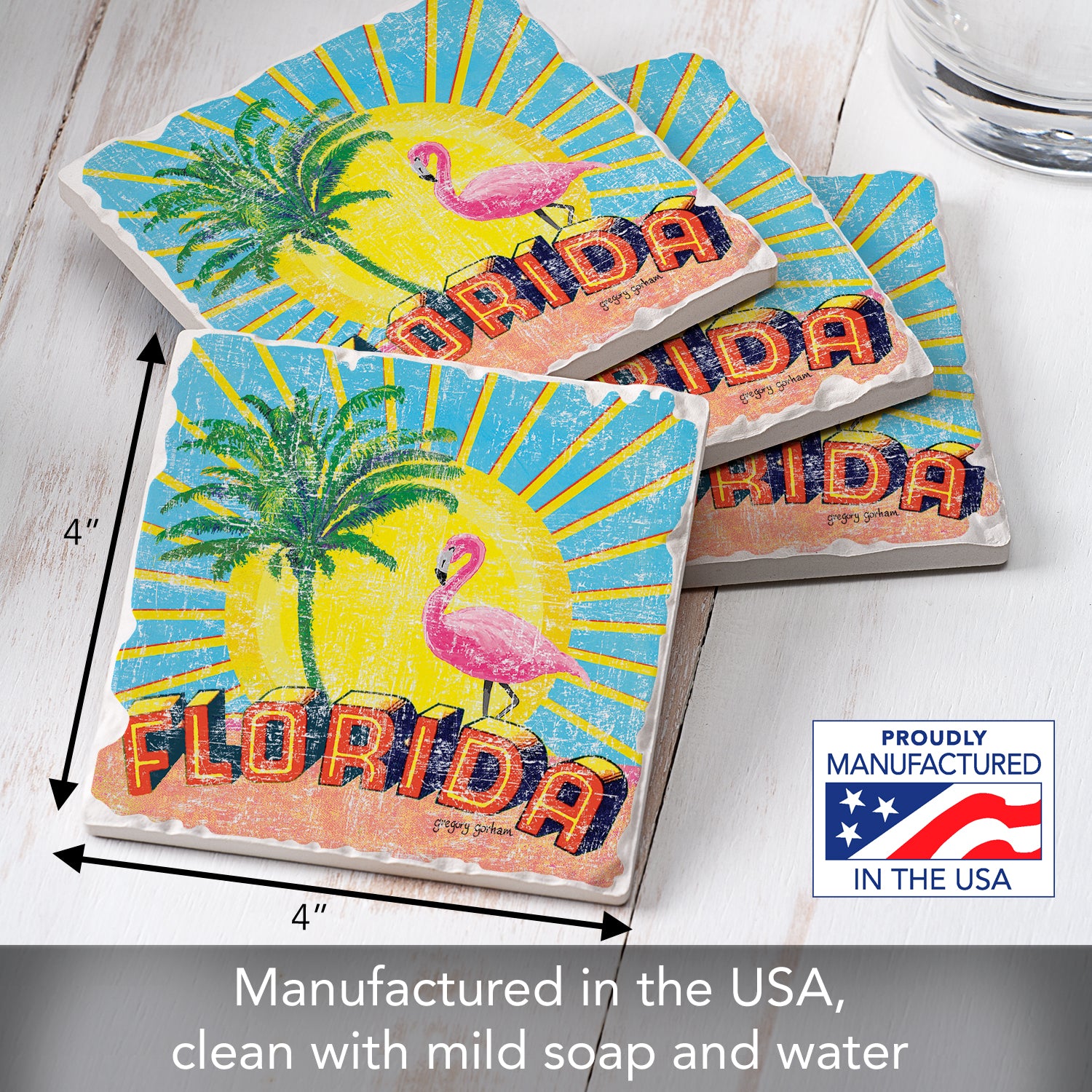 Thirstystone Florida Retro 4 Pack Tumbled Tile Stone Coasters 4" Square Manufactured in the USA