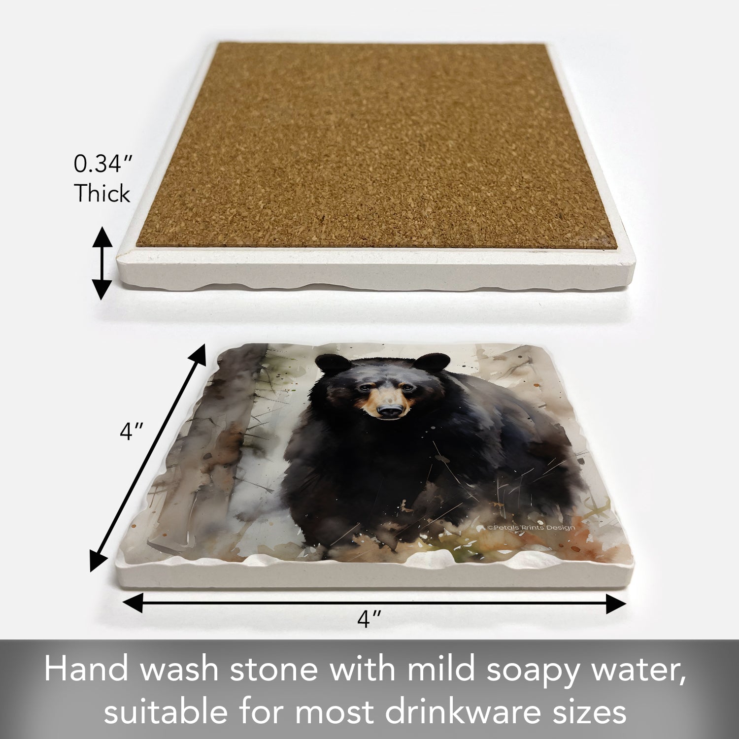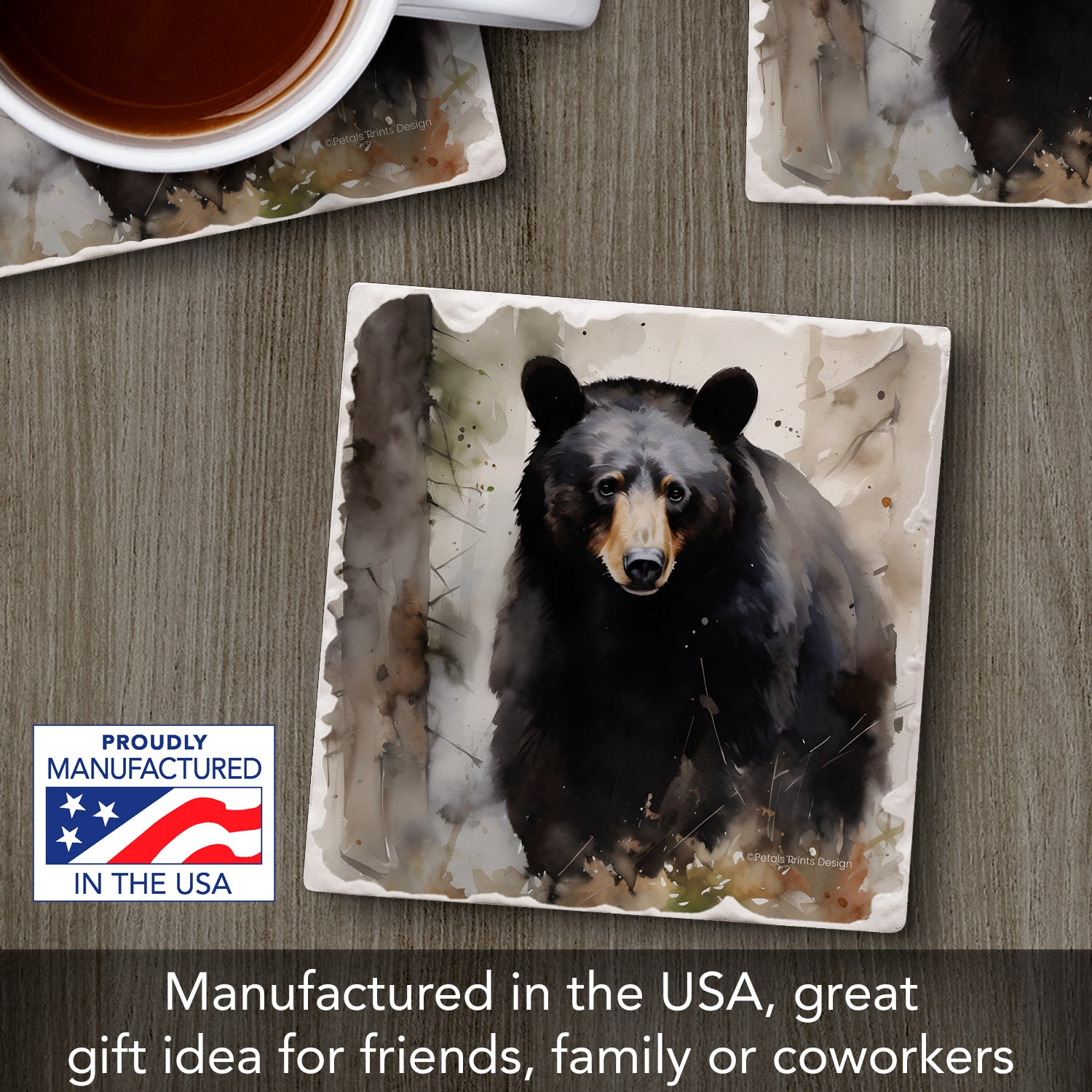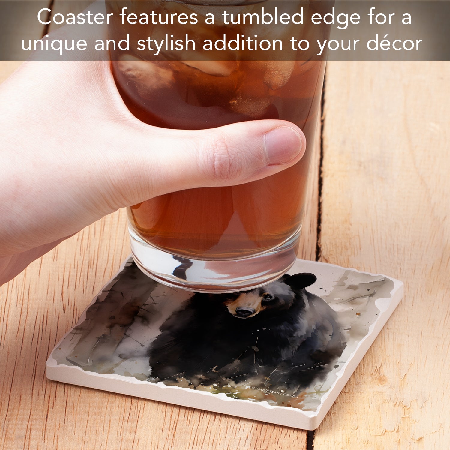 Thirstystone Forest Black Bear Single Tumbled Tile Stone Coaster with Protective Cork Backing Manufactured in The USA 4" Square