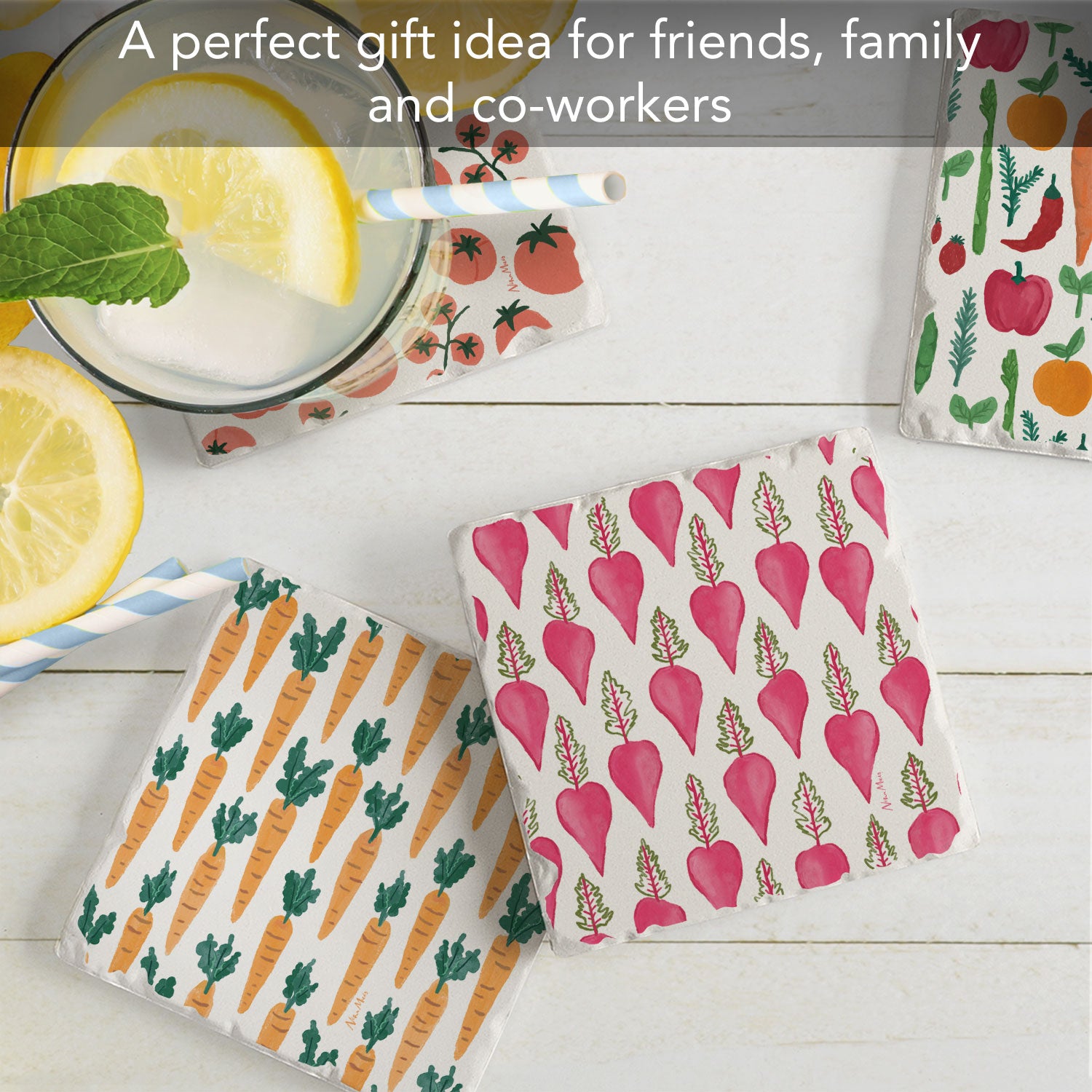 Thirstystone Fresh Veggies 4 Pack Assorted Tumbled Tile Stone Coasters 4" Square