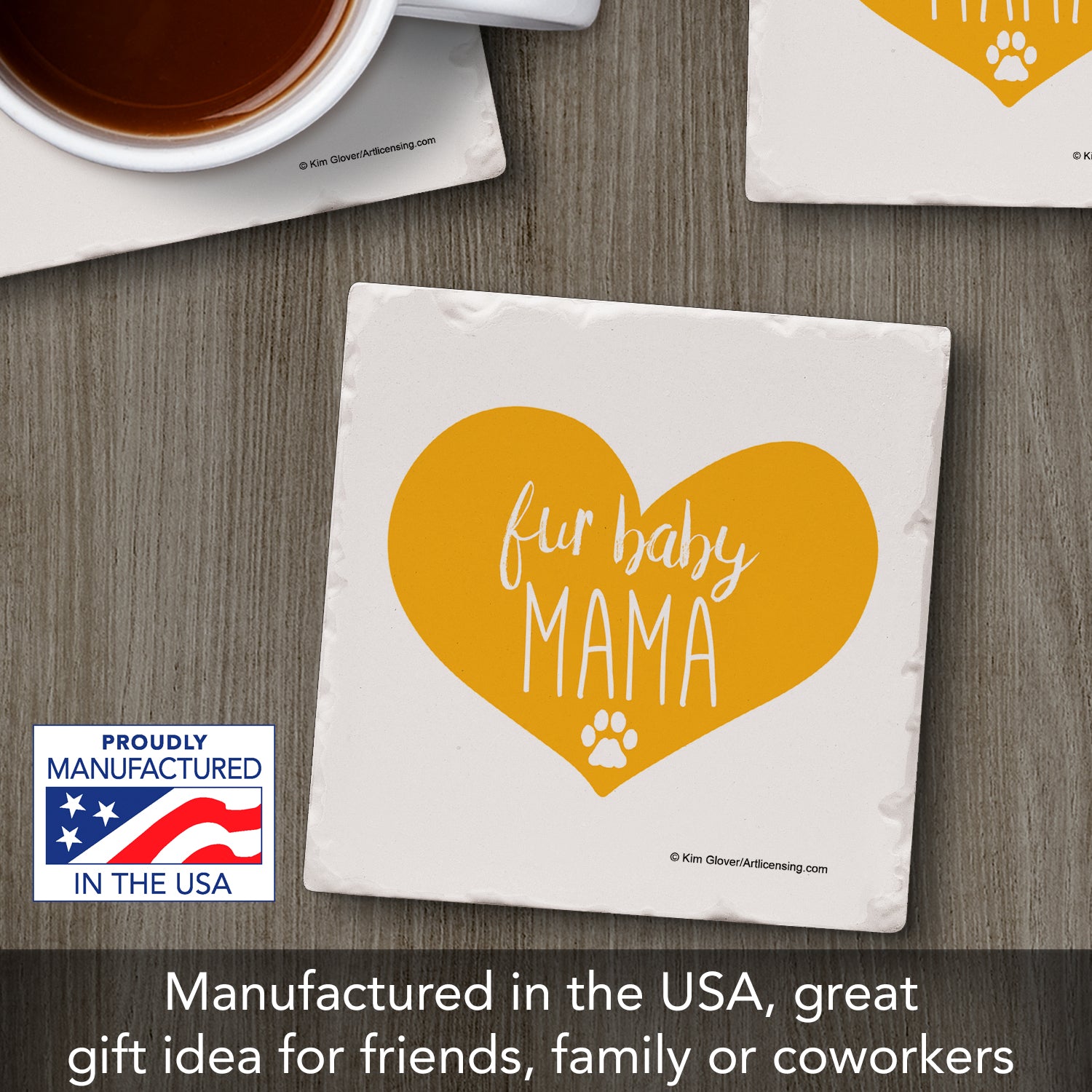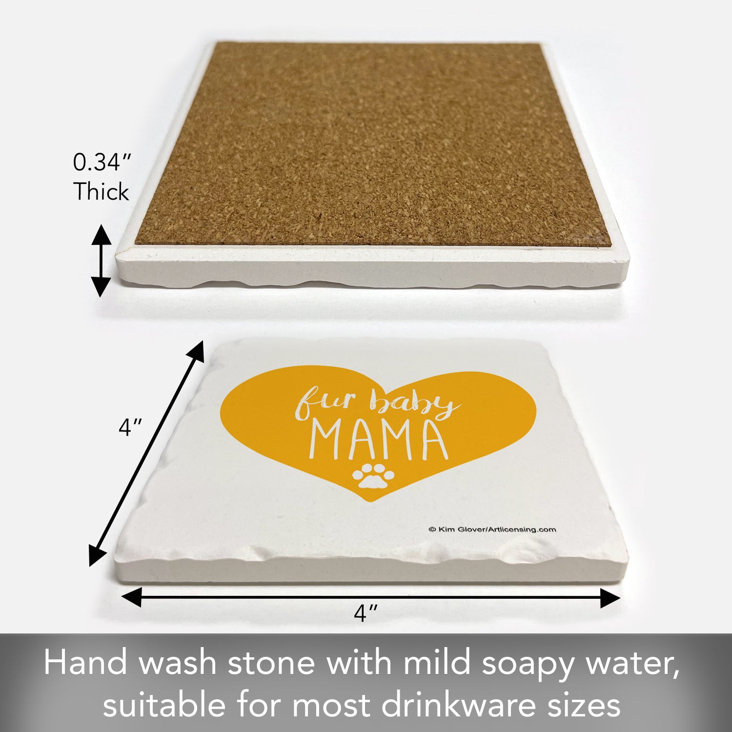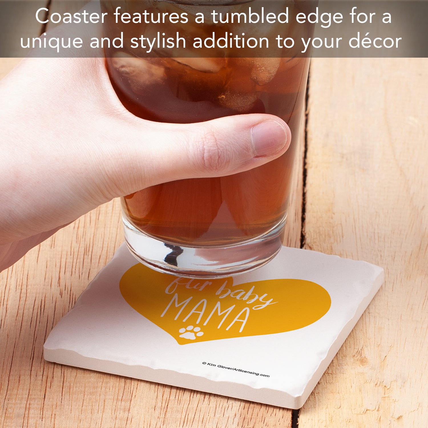 Thirstystone Fur Baby Mama Single Tumbled Tile Stone Coaster with Protective Cork Backing Manufactured in The USA 4" Square, Artistic, Easily Wipes Clean