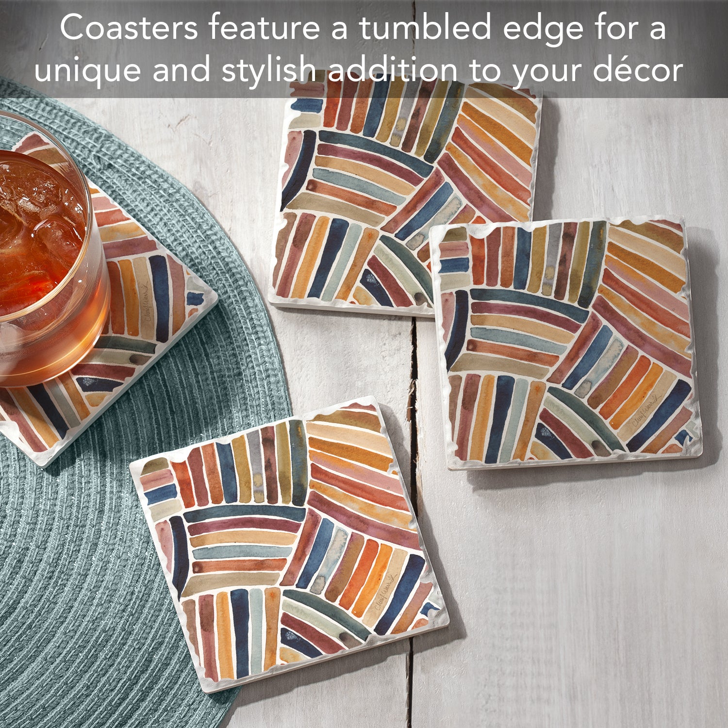 FUNCTIONAL ART-Decorative Coasters are an easy way to change the look of your kitchen, dining room, or outdoor eating area while protecting your surfaces.