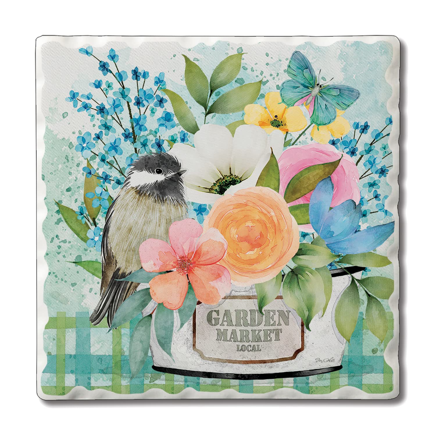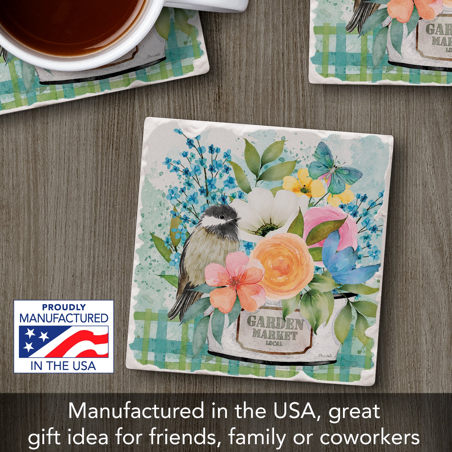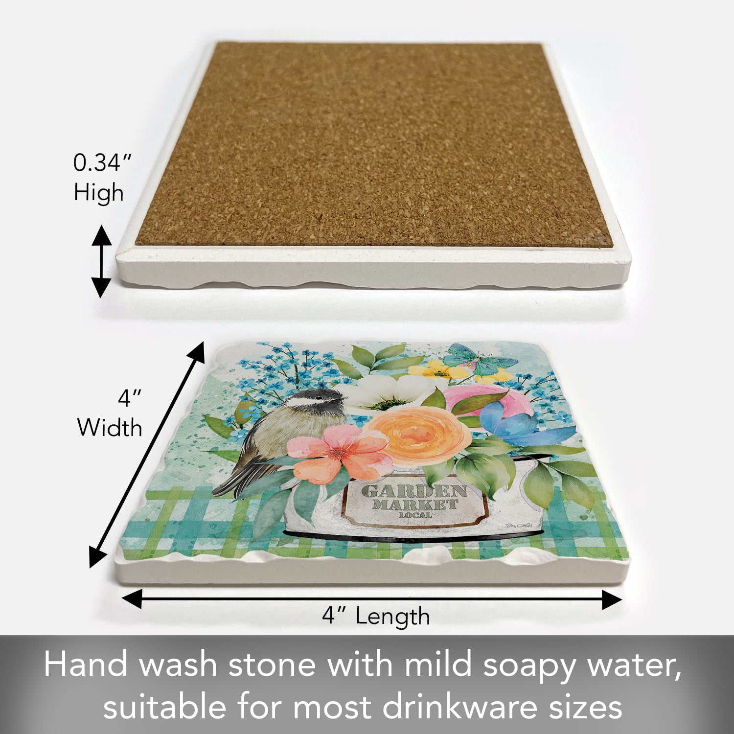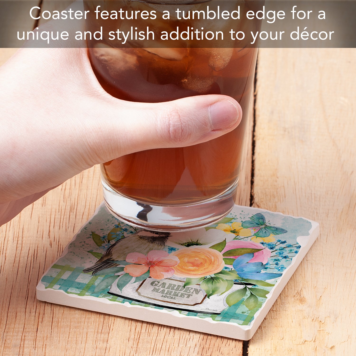 Thirstystone Garden Market Single Tumbled Tile Stone Coaster with Protective Cork Backing Manufactured in The USA 4" Square