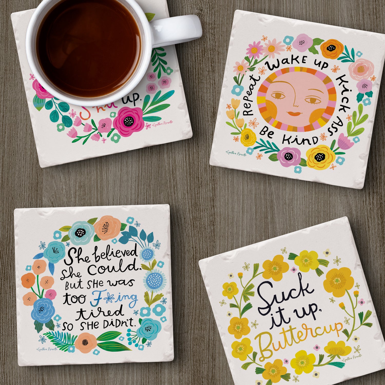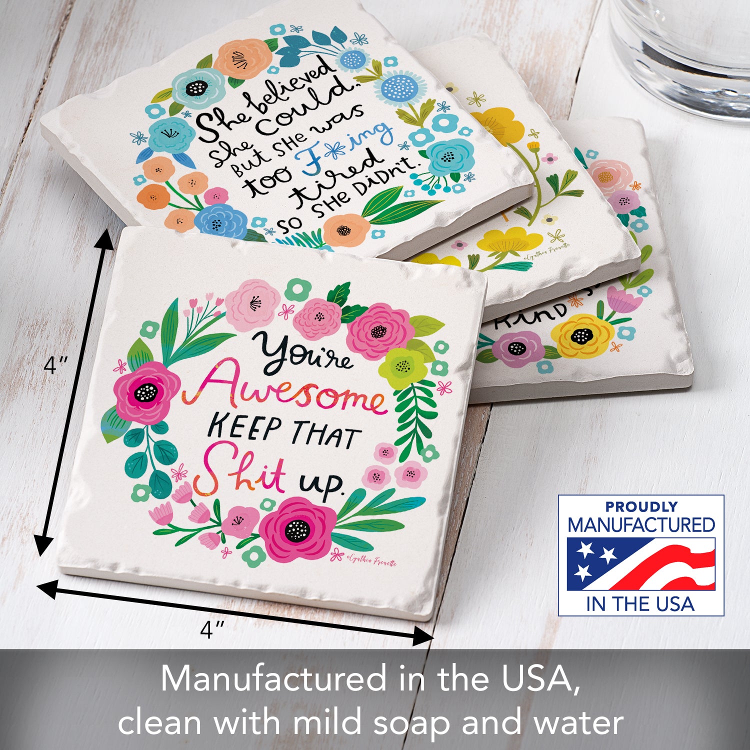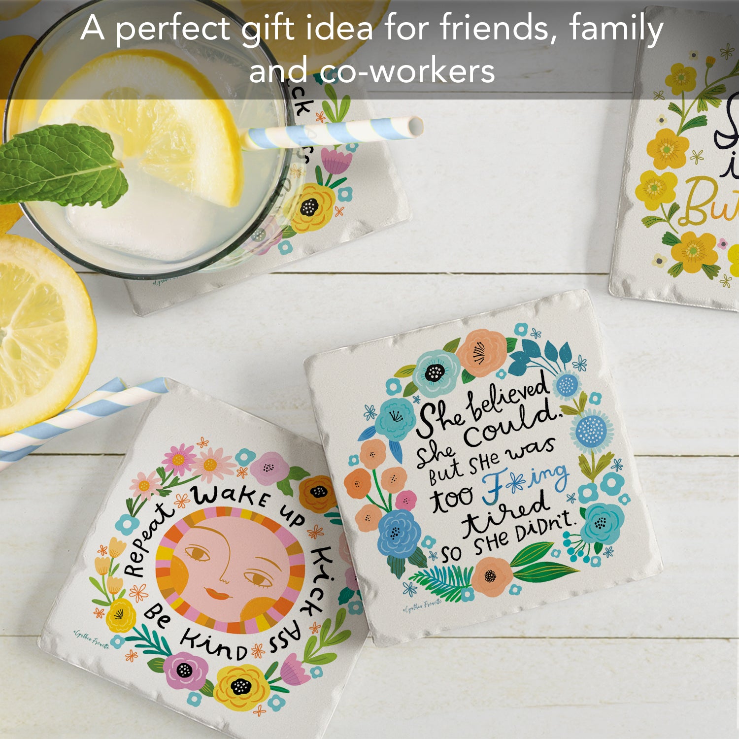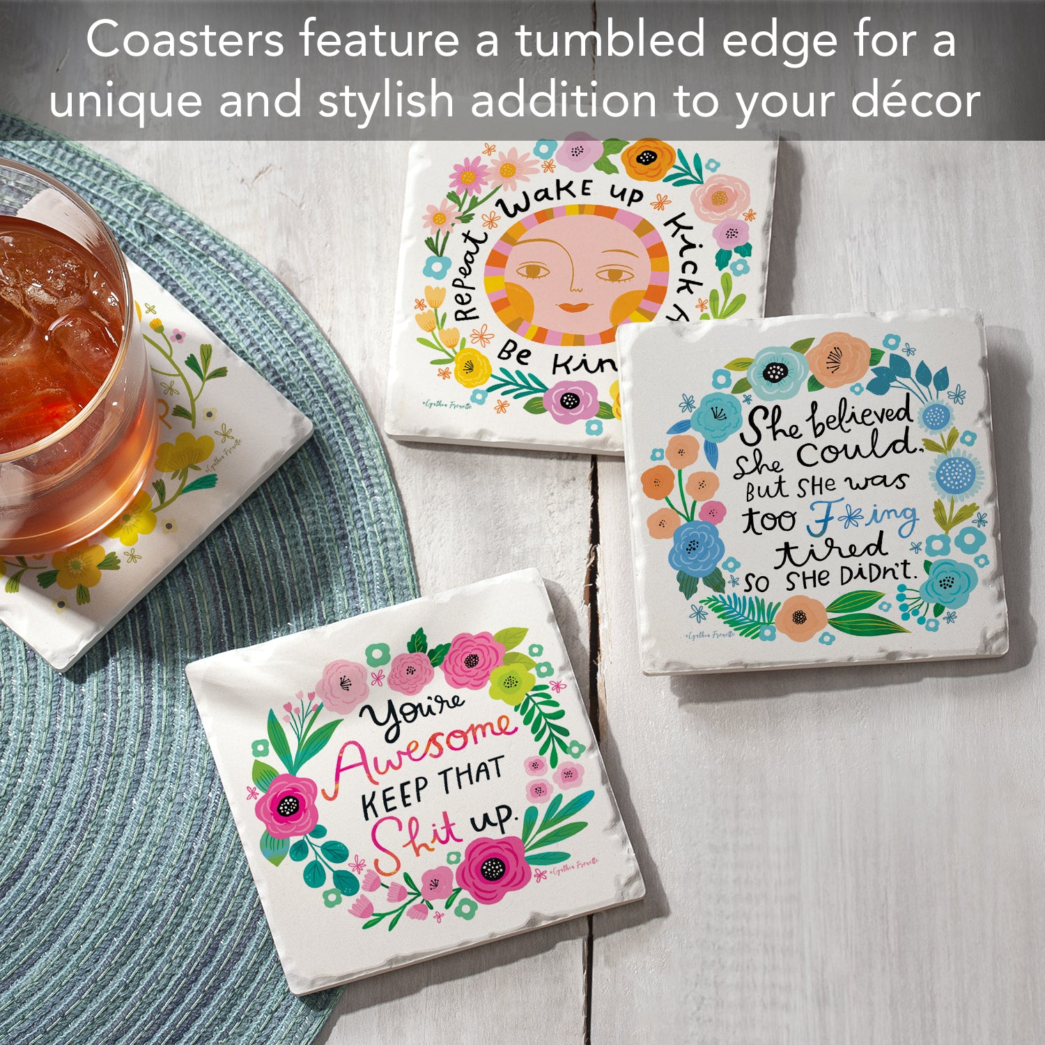 Thirstystone Garden of Sass 4-Pack Tumbled Tile Stone Coasters 4" Square