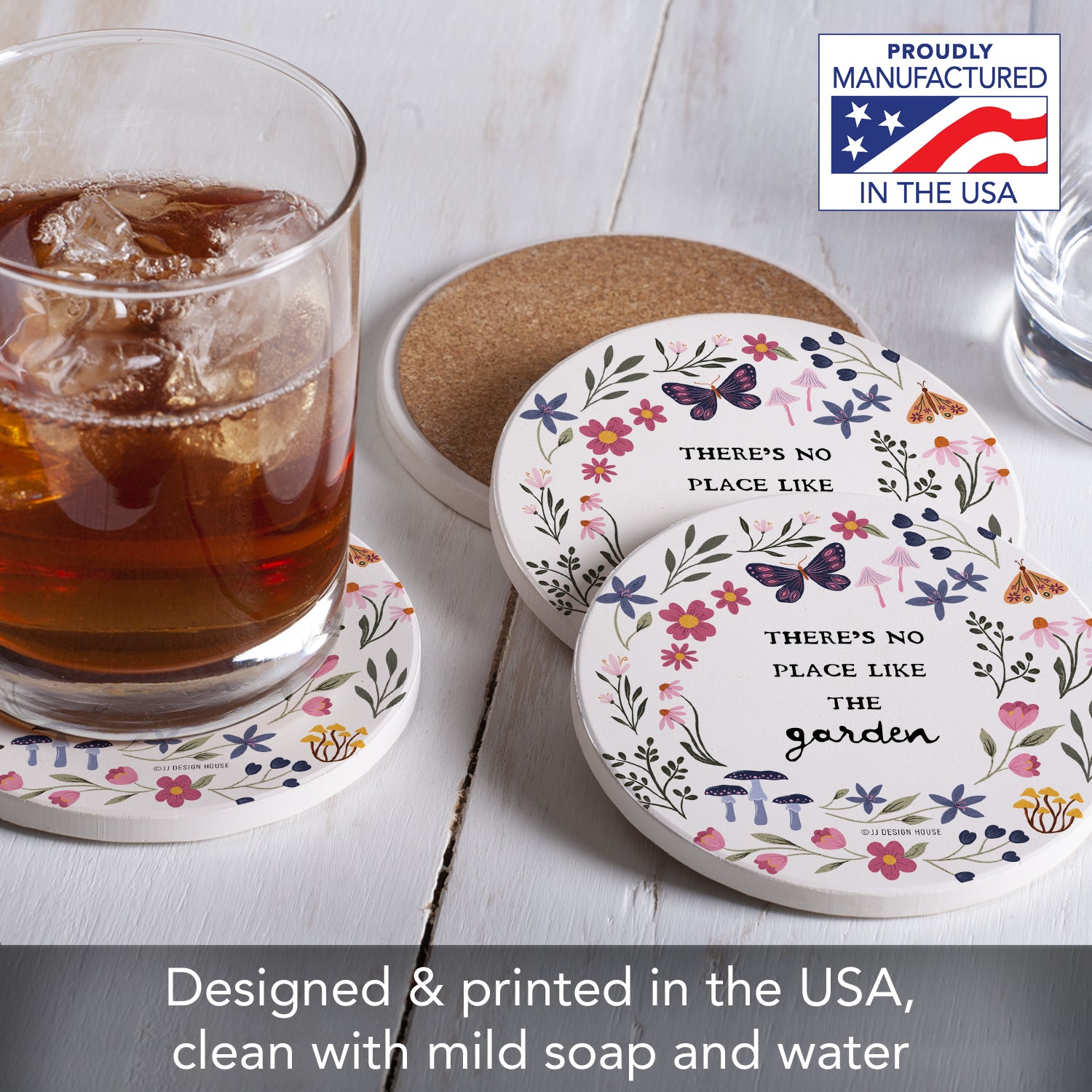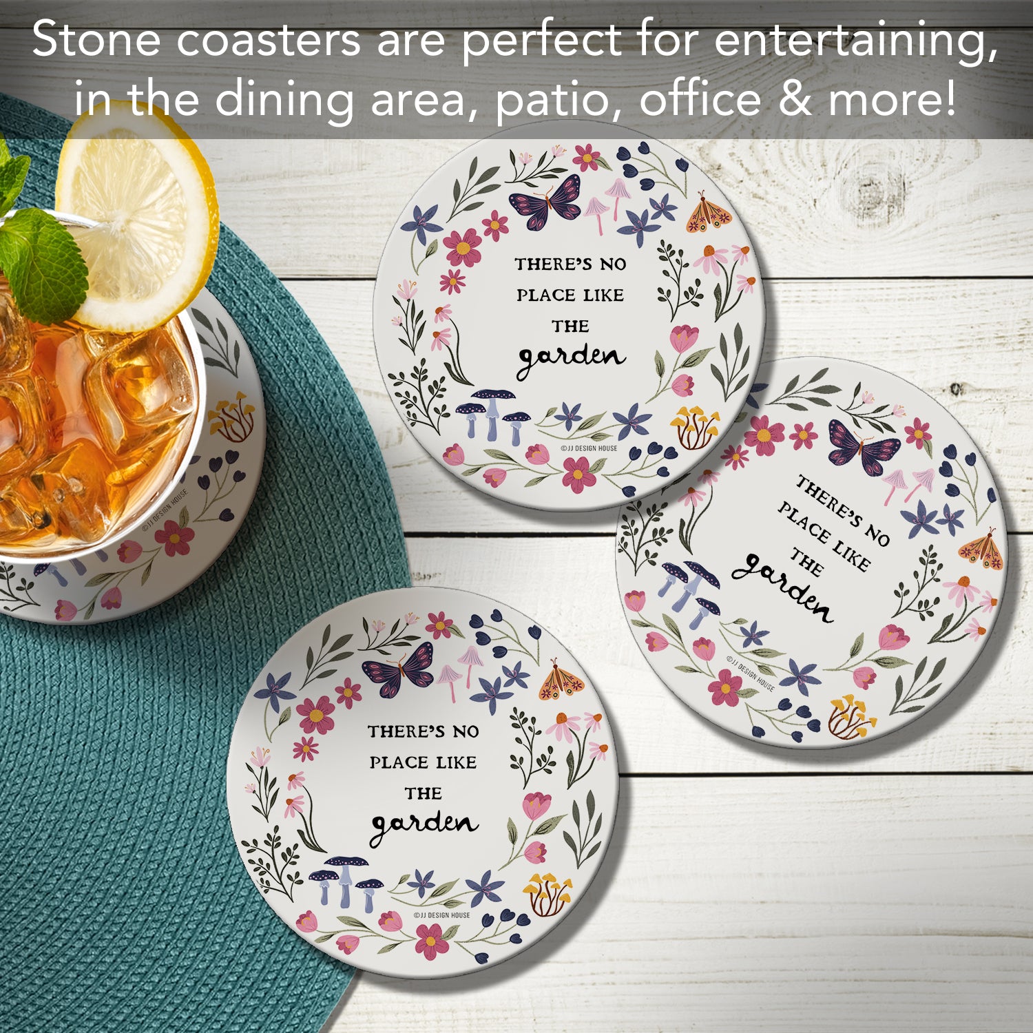 Thirstystone Garden Place 4 Pack Round Absorbent Stone Coasters Manufactured in the USA