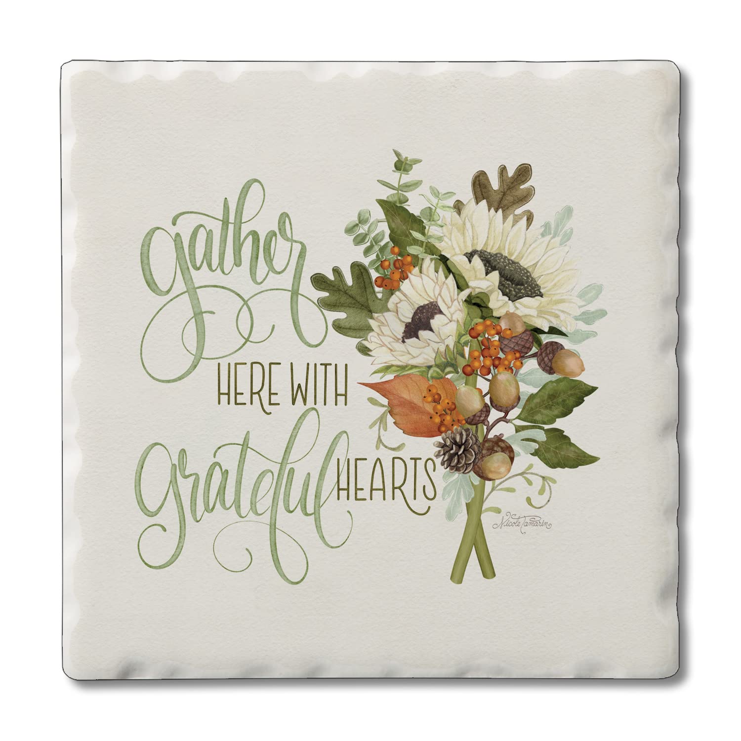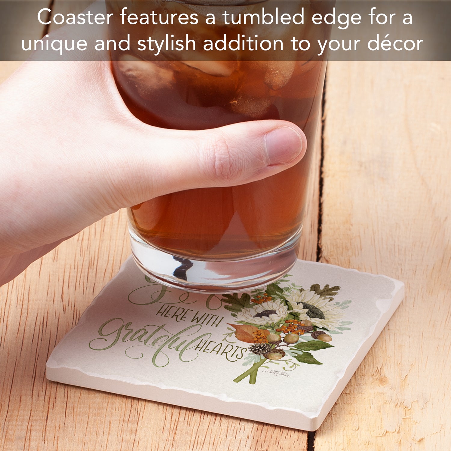 Thirstystone Gather Here Single Tumbled Tile Stone Coaster with Protective Cork Backing Manufactured in The USA 4" Square, Colorful, Artistiic, Easily Wipes Clean