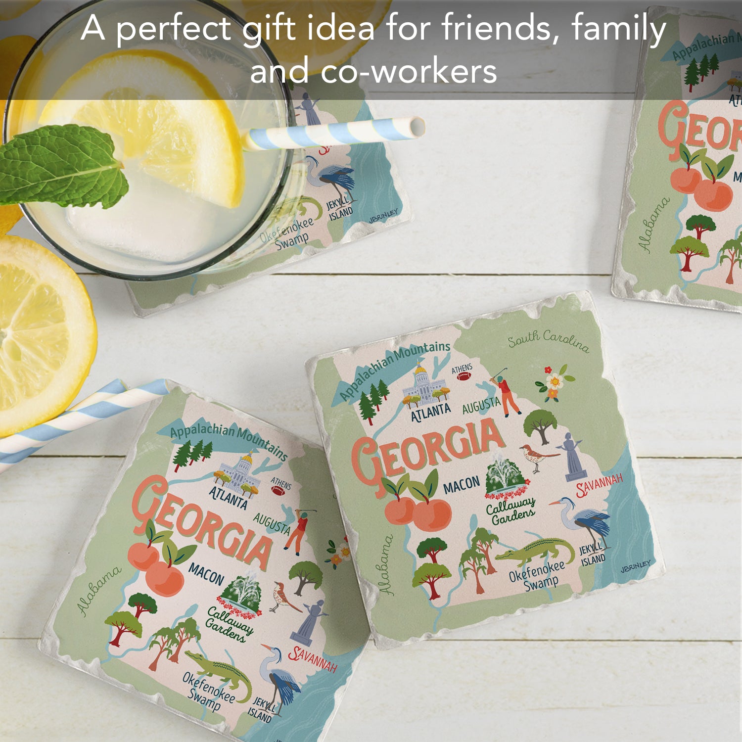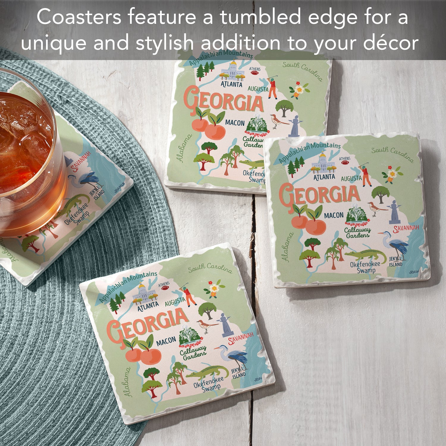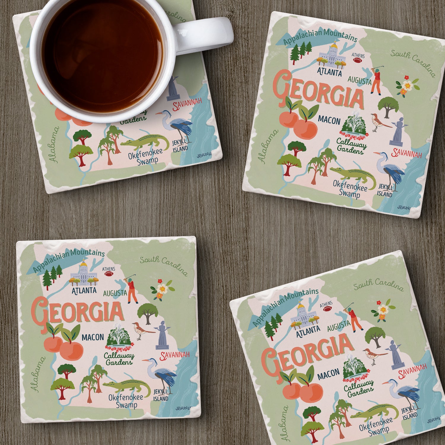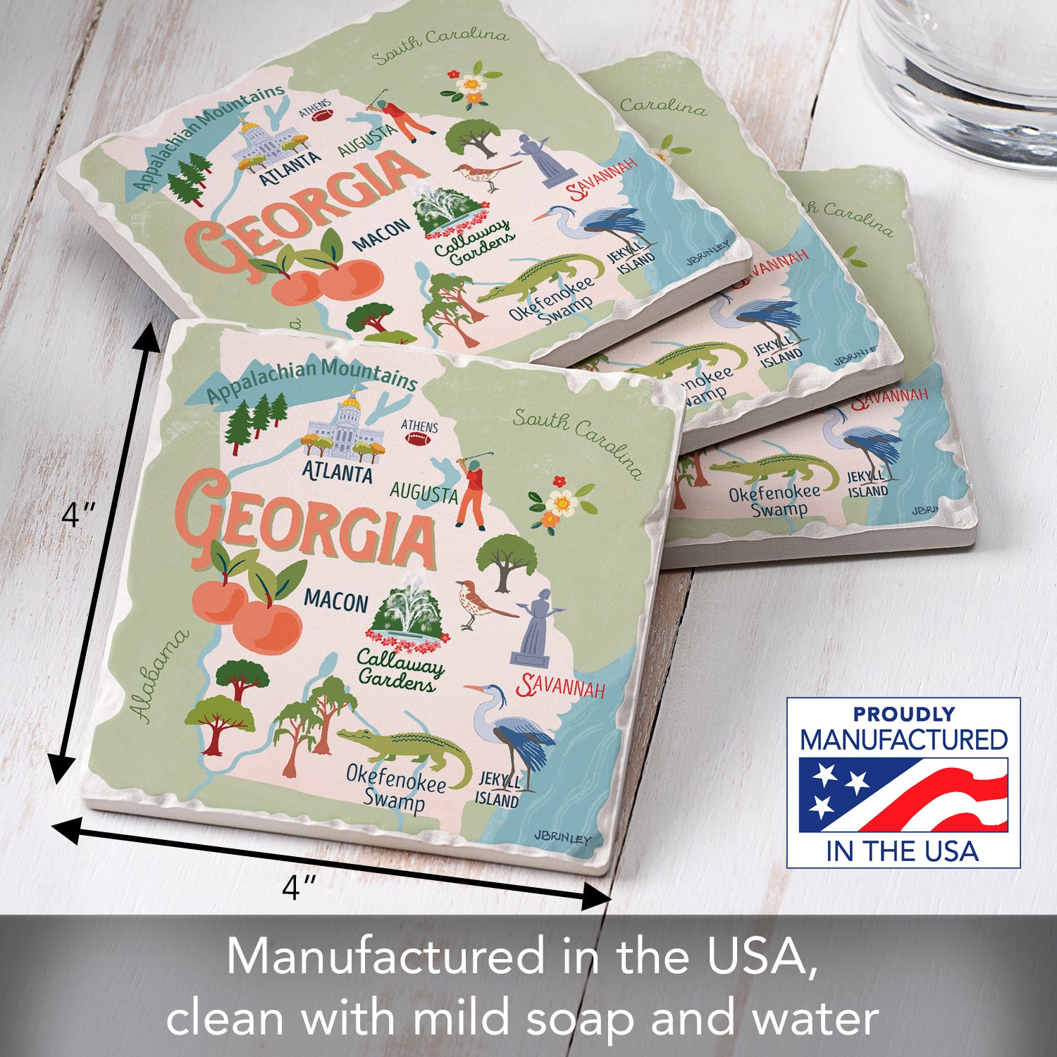 Thirstystone Georgia Attractions 4 Pack Tumbled Tile Stone Coasters 4” Square Manufactured in the USA