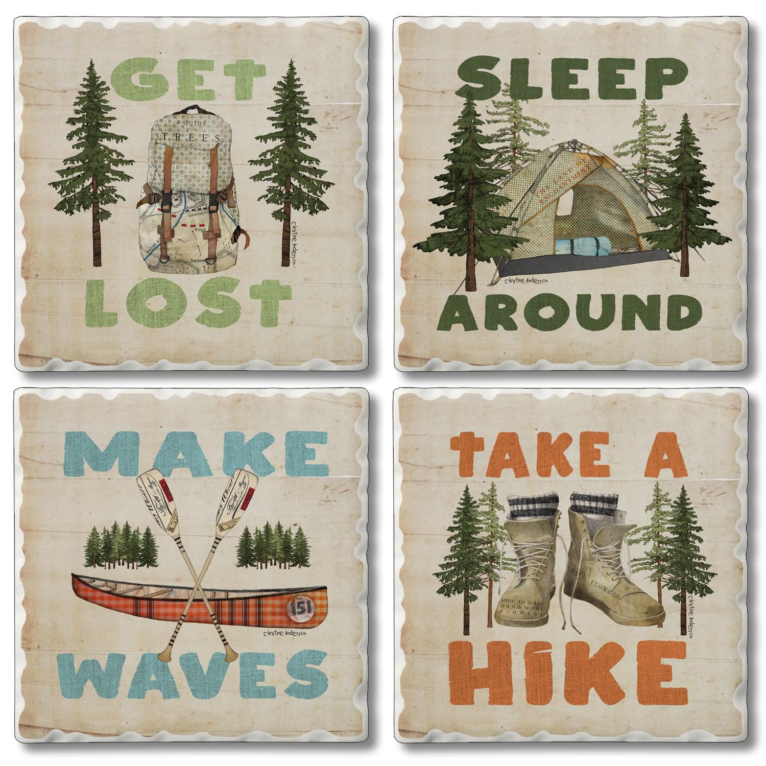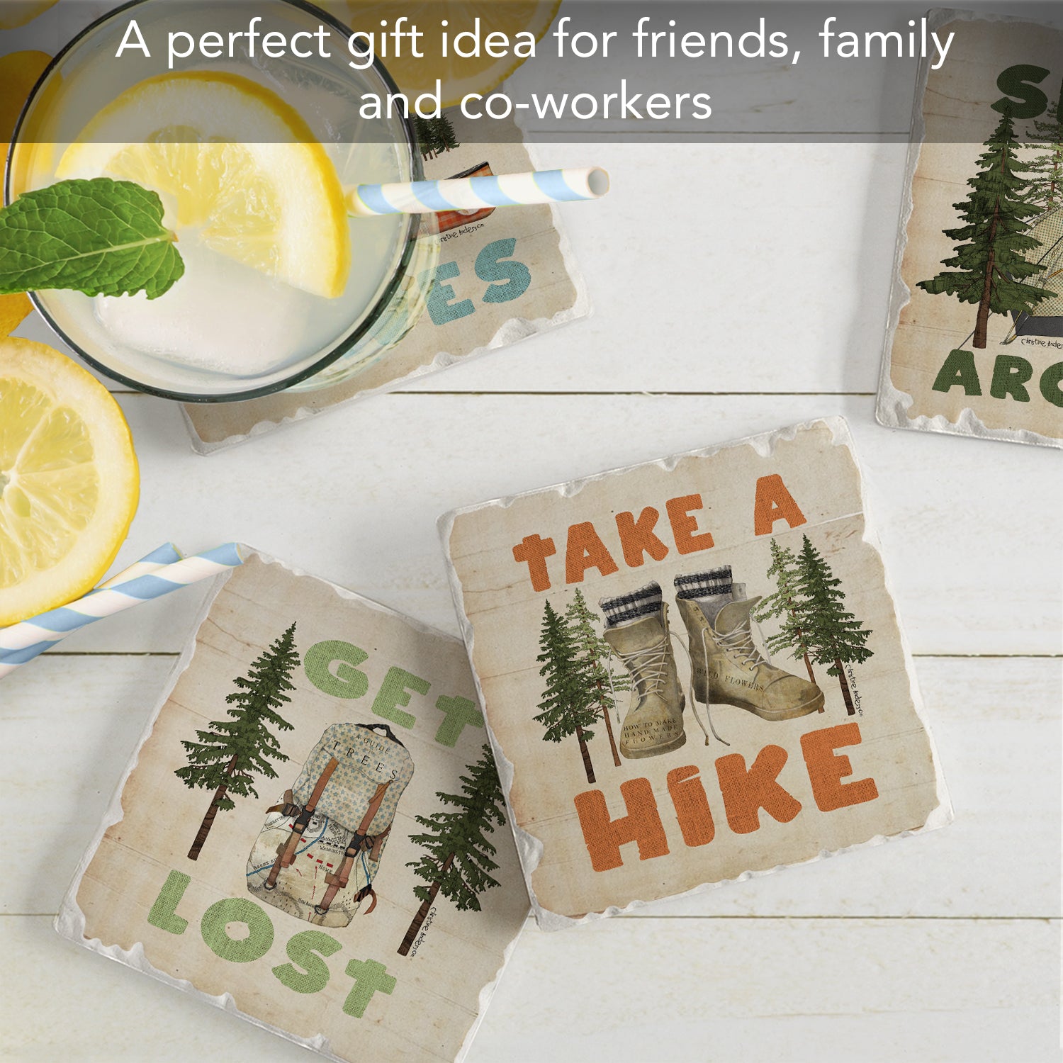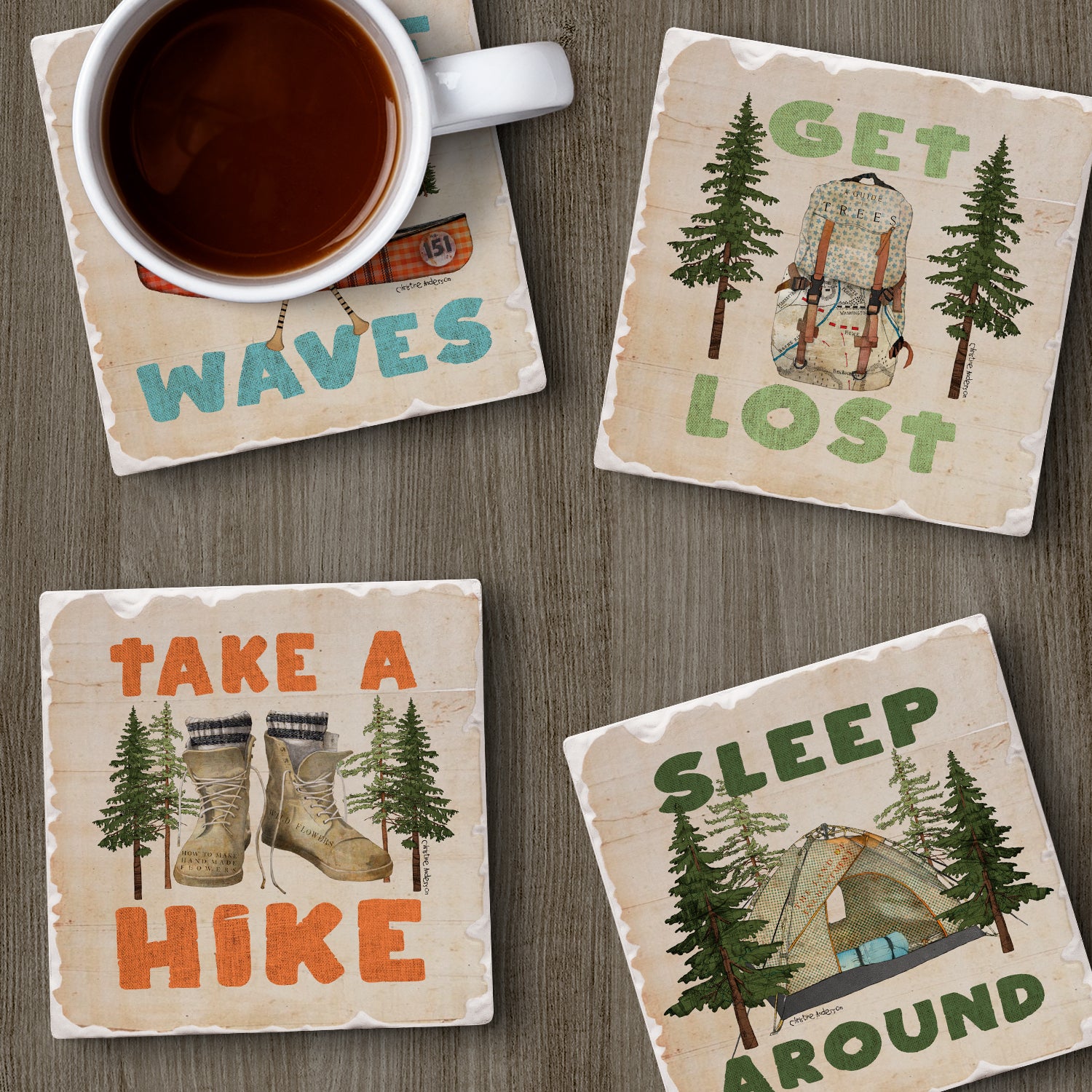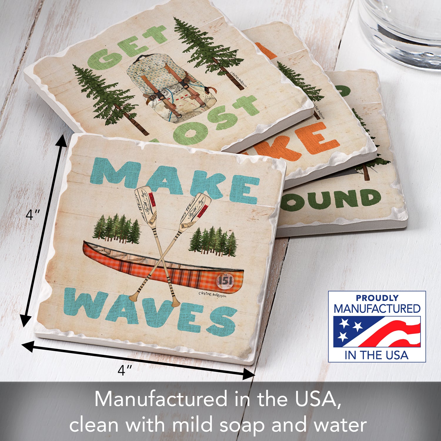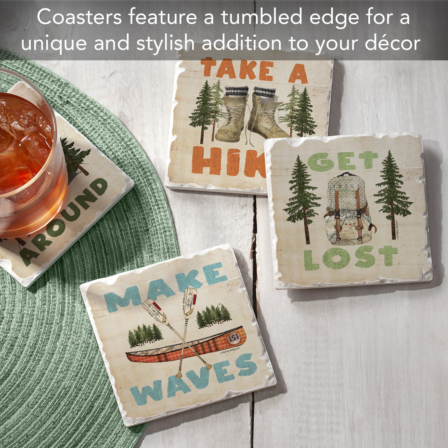 Thirstystone Get Lost 4-Pack Assorted Stone Tumbled Tile Coasters 4" Square