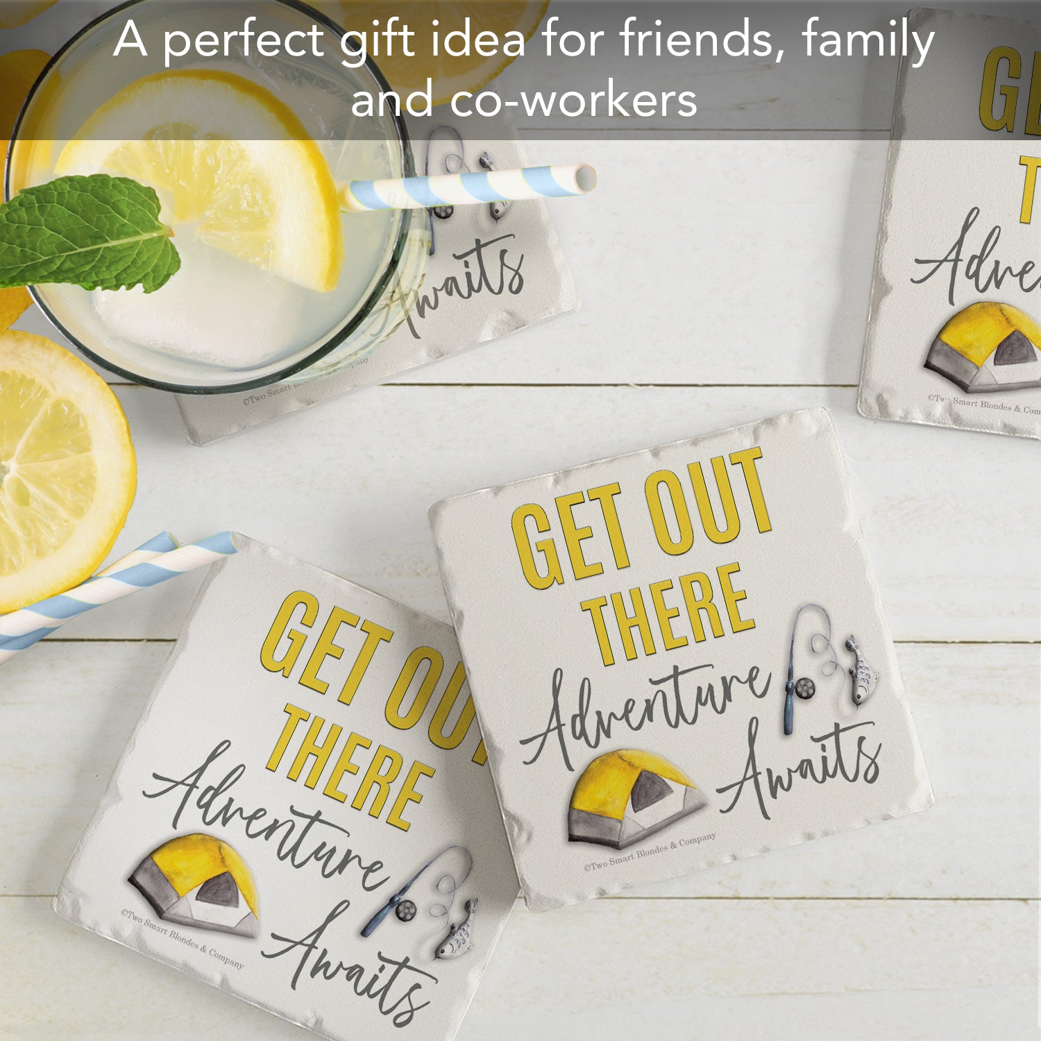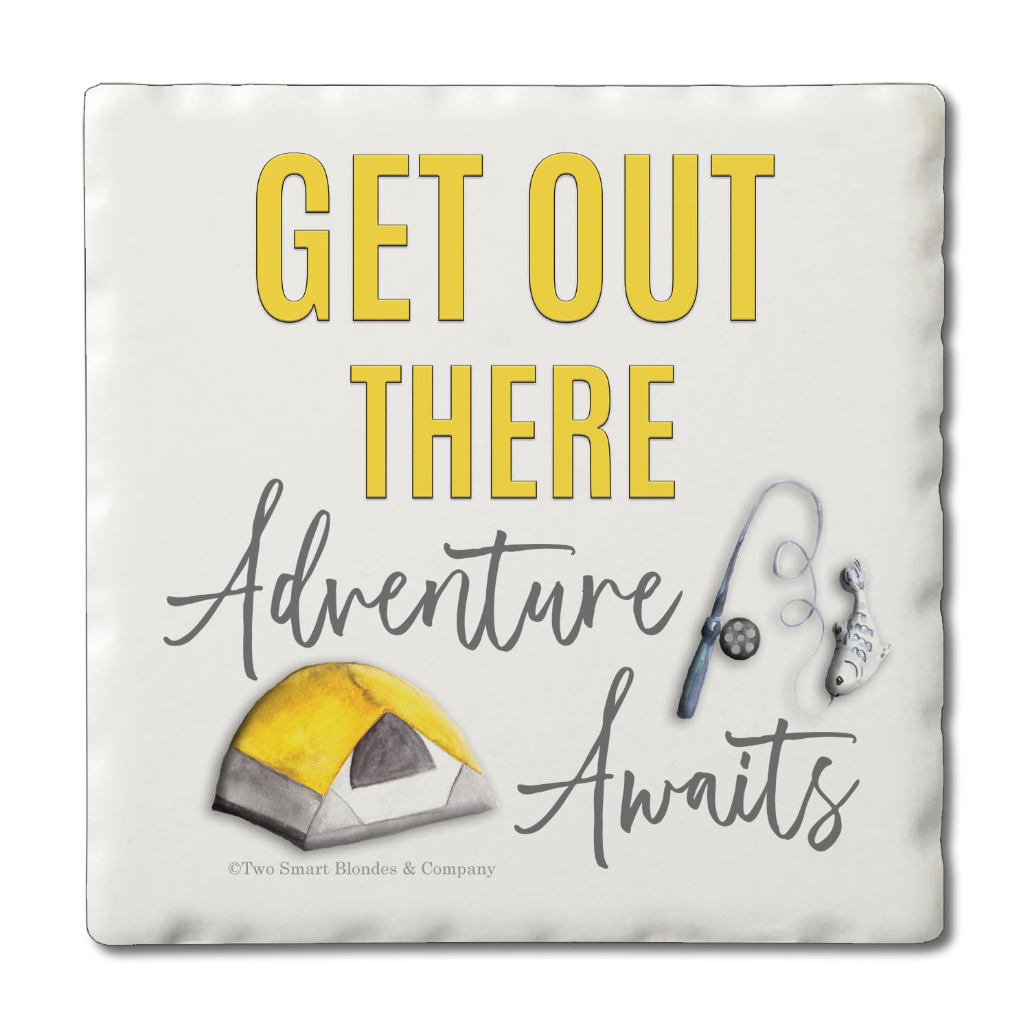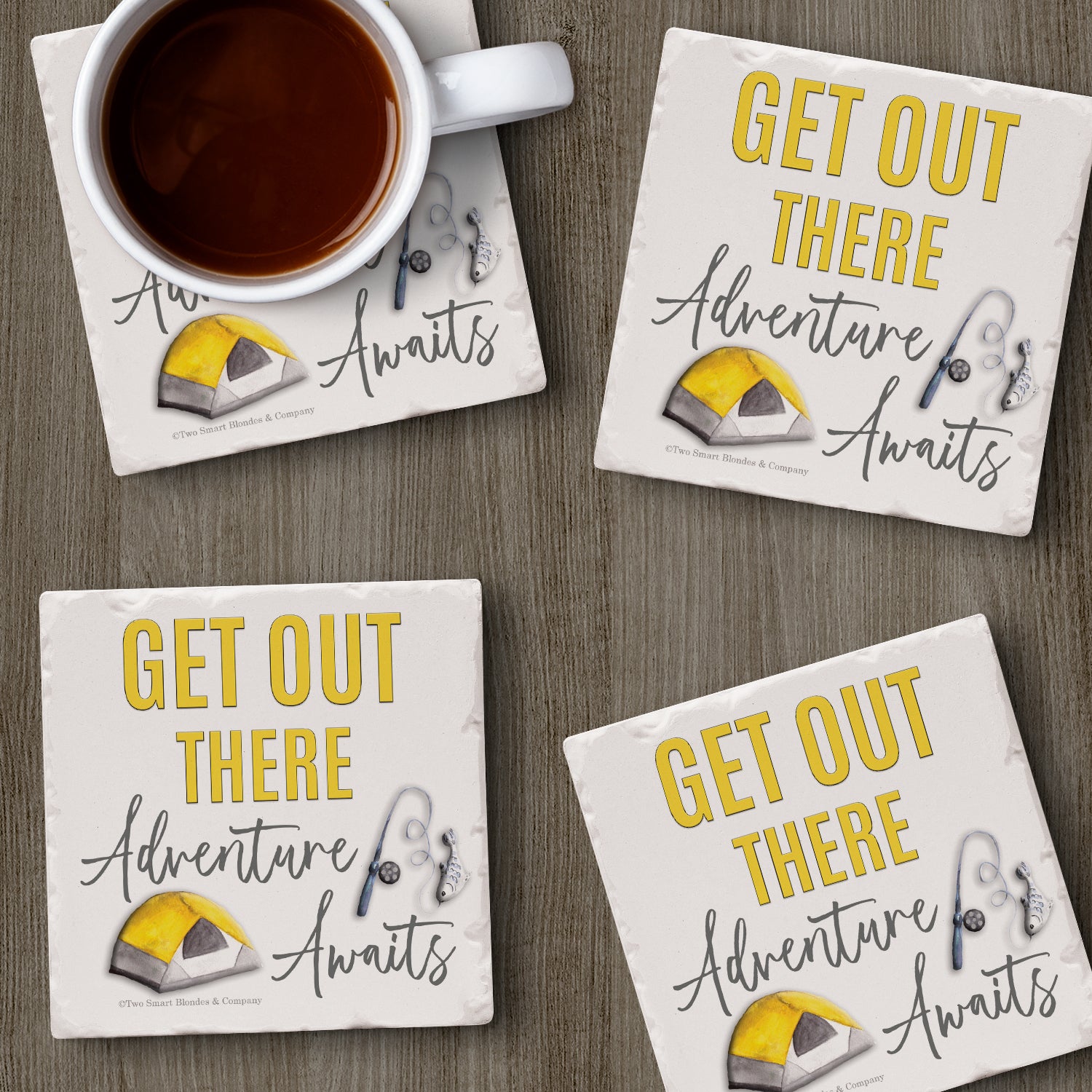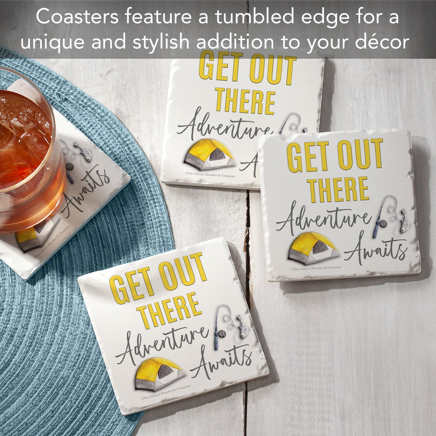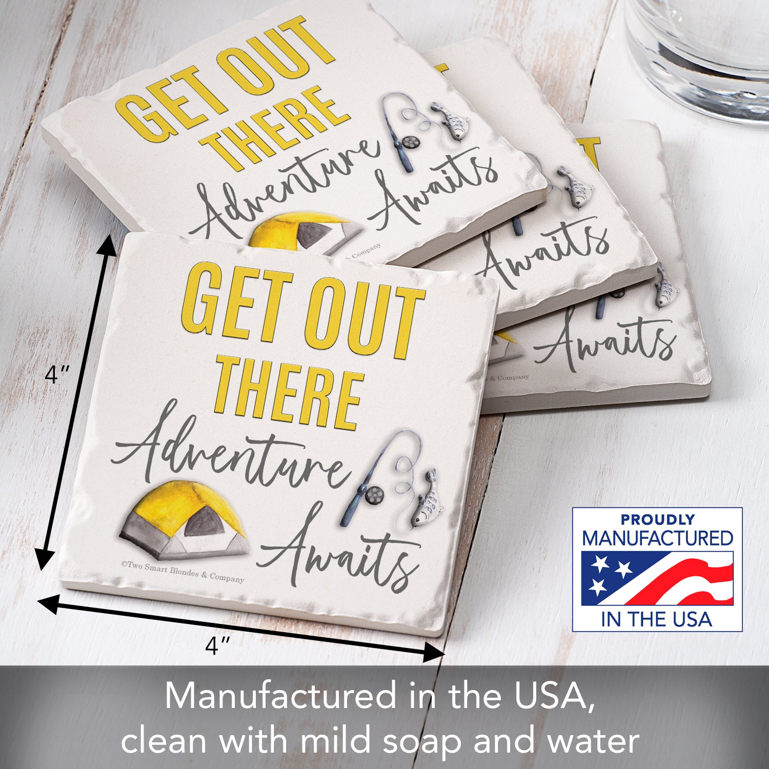 Thirstystone Get Out There 4-Pack Tumbled Tile Stone Coasters 4" Square Manufactured in the USA